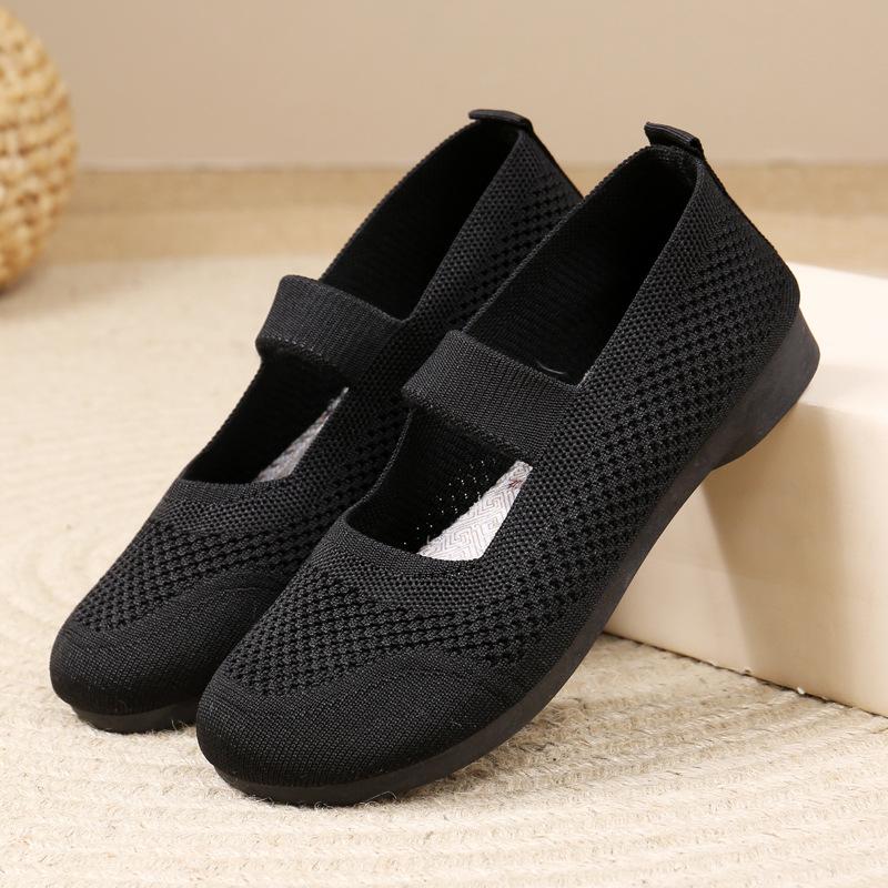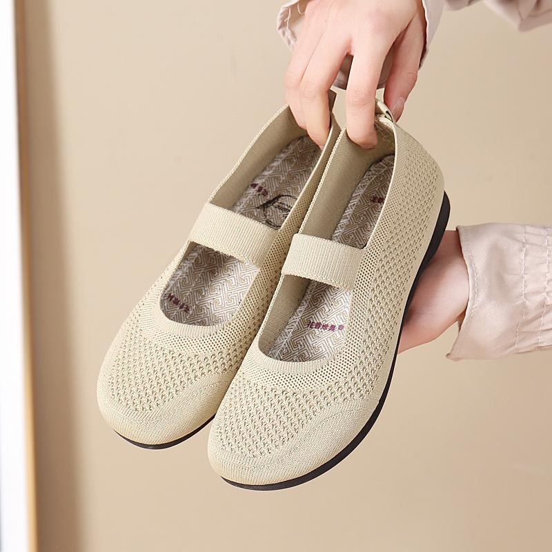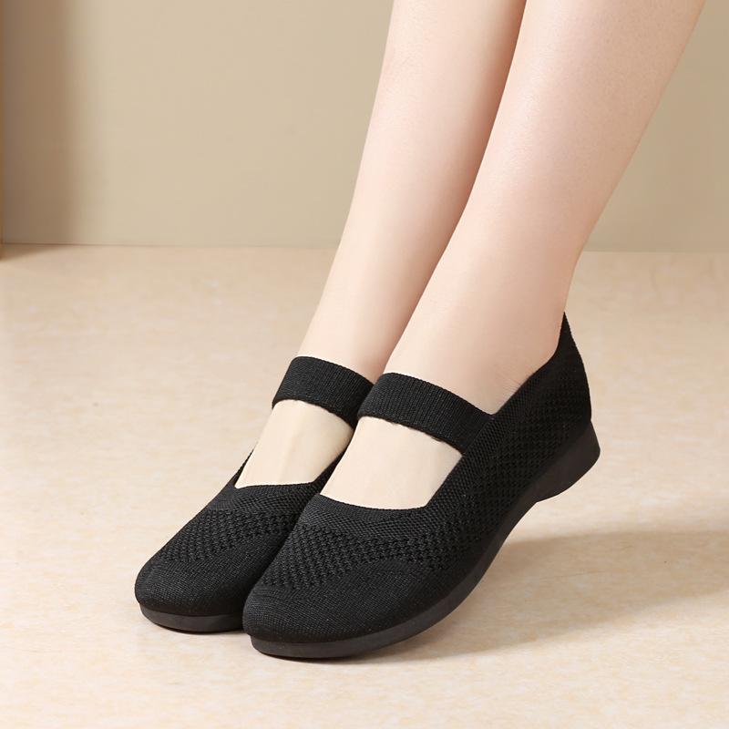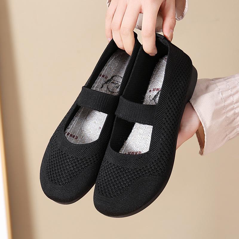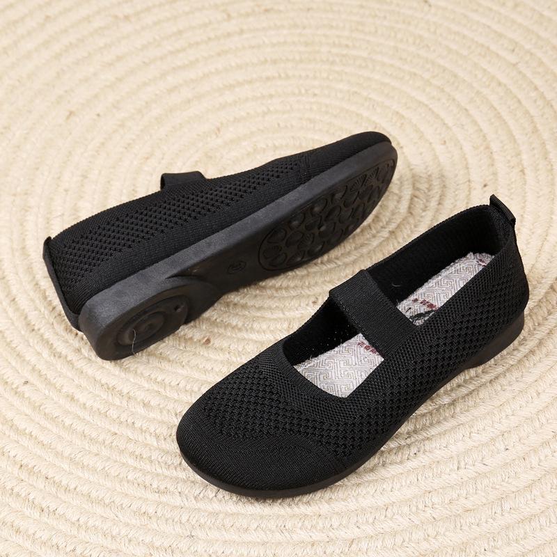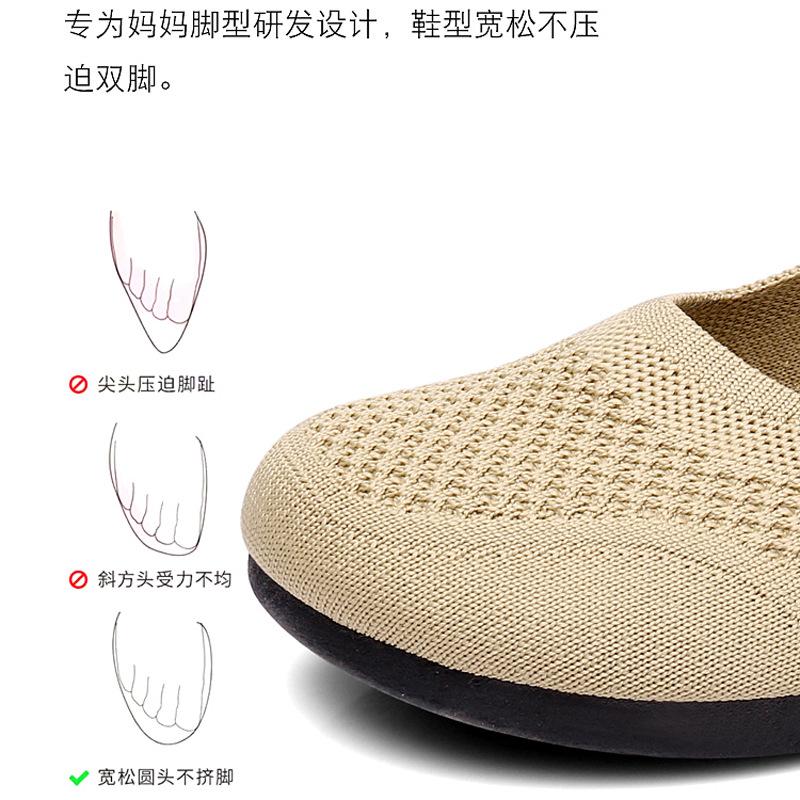 Primavera y verano, nuevos zapatos de tela antiguos de Beijing, zapatos de mujer de una sola capa, zapatos de guisantes de boca baja, zapatos de madre de fondo suave de malla transpirable tejida voladora, zapatos de trabajo