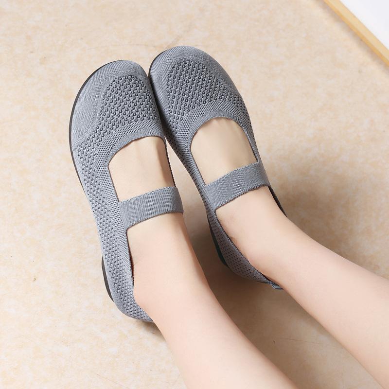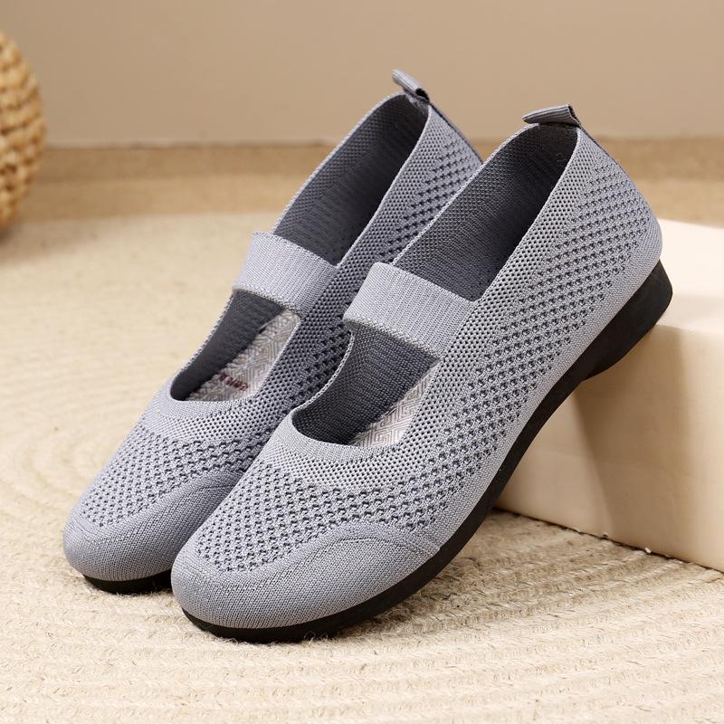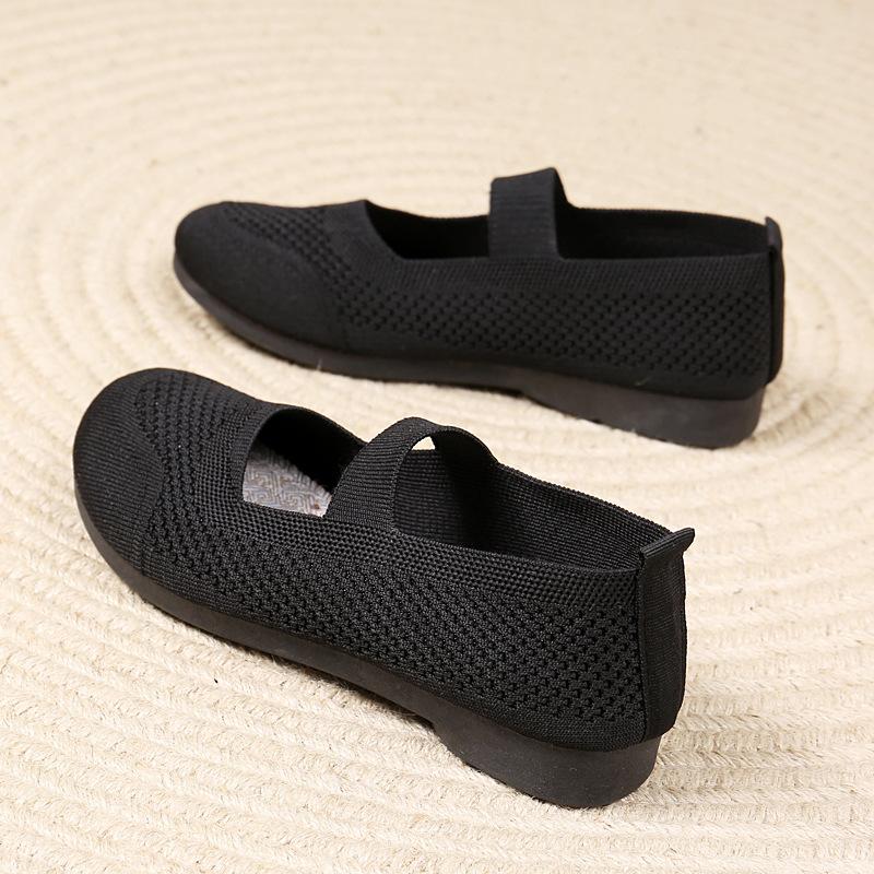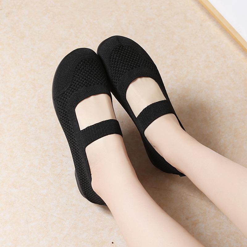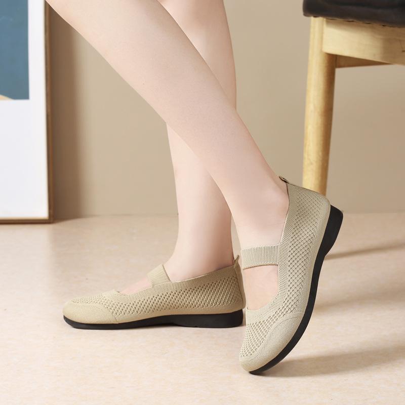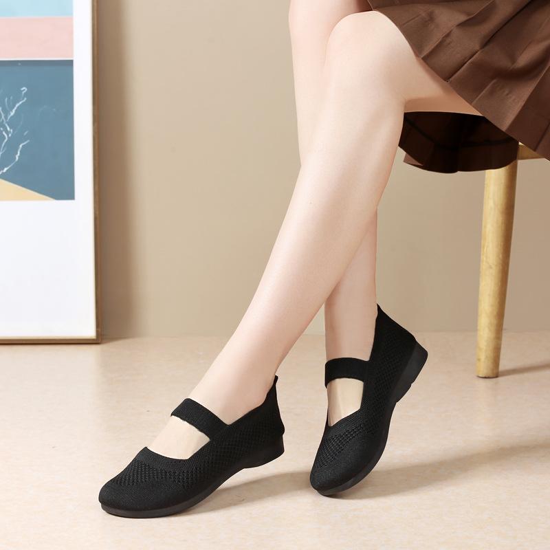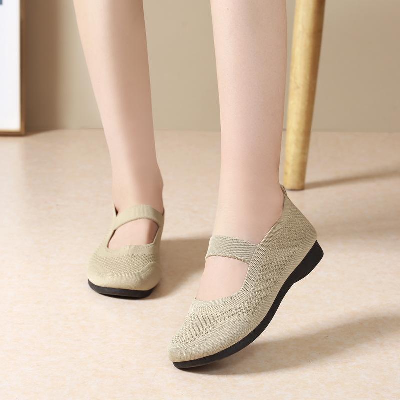 Primavera y verano, nuevos zapatos de tela antiguos de Beijing, zapatos de mujer de una sola capa, zapatos de guisantes de boca baja, zapatos de madre de fondo suave de malla transpirable tejida voladora, zapatos de trabajo