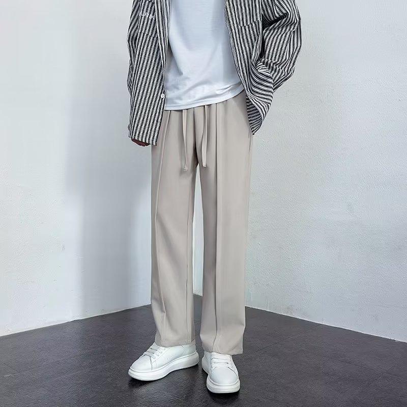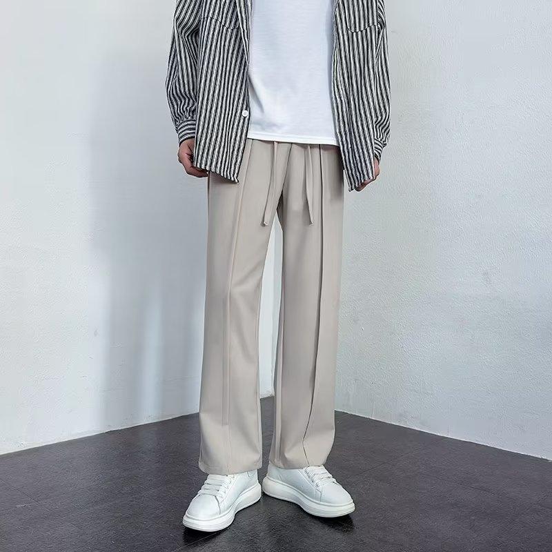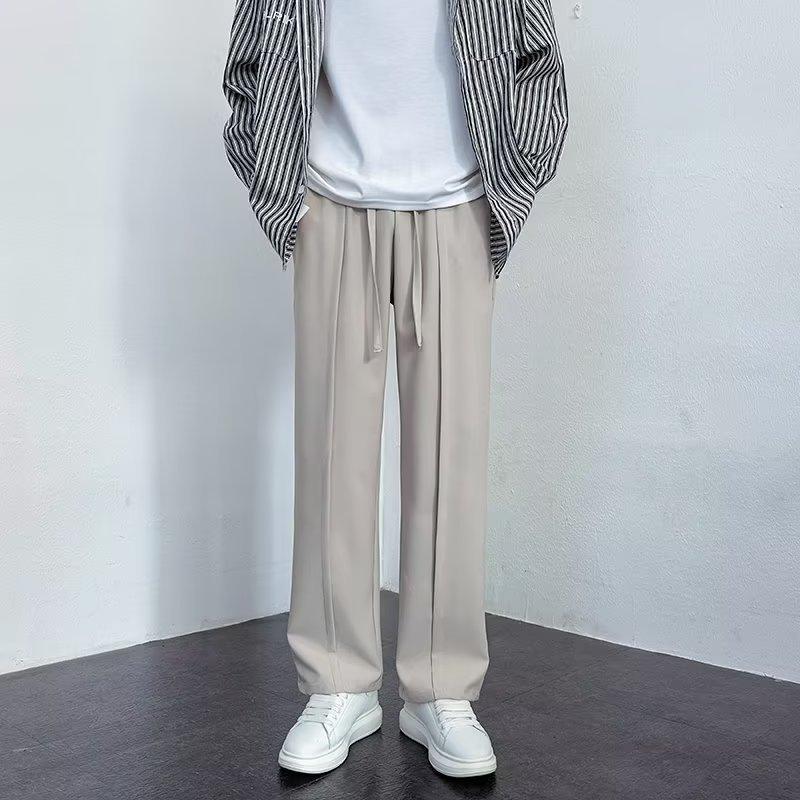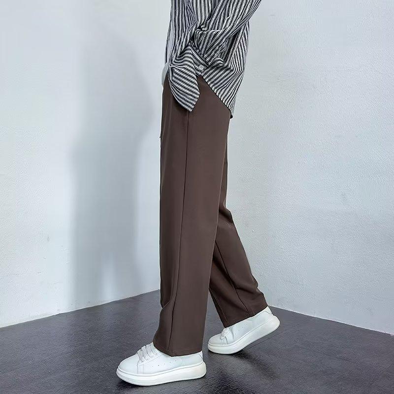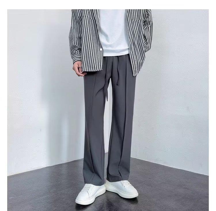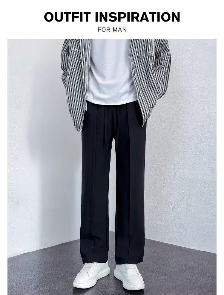 Pantalones deportivos negros finos de verano para hombre, de pierna ancha, holgados y combinables, pantalones largos informales rectos para hombre