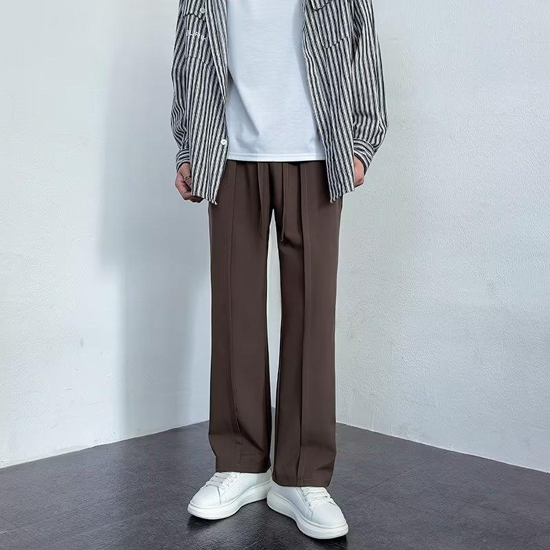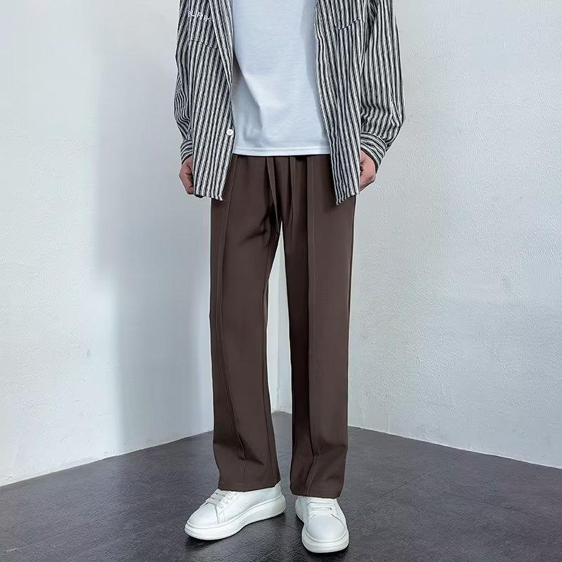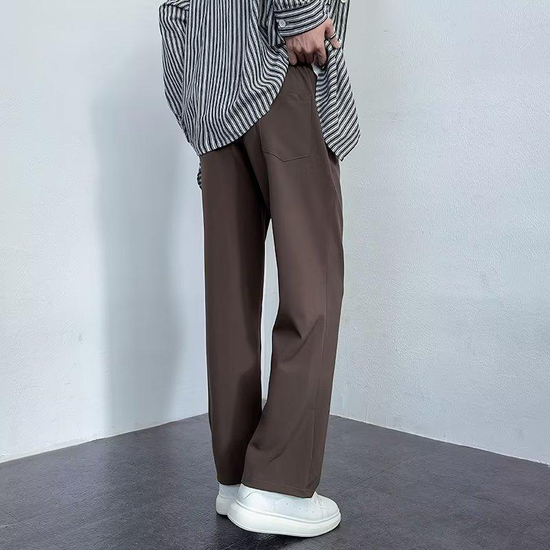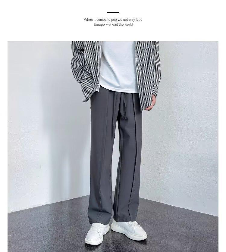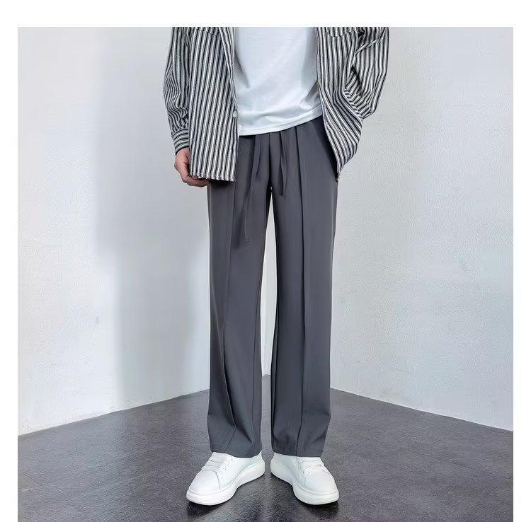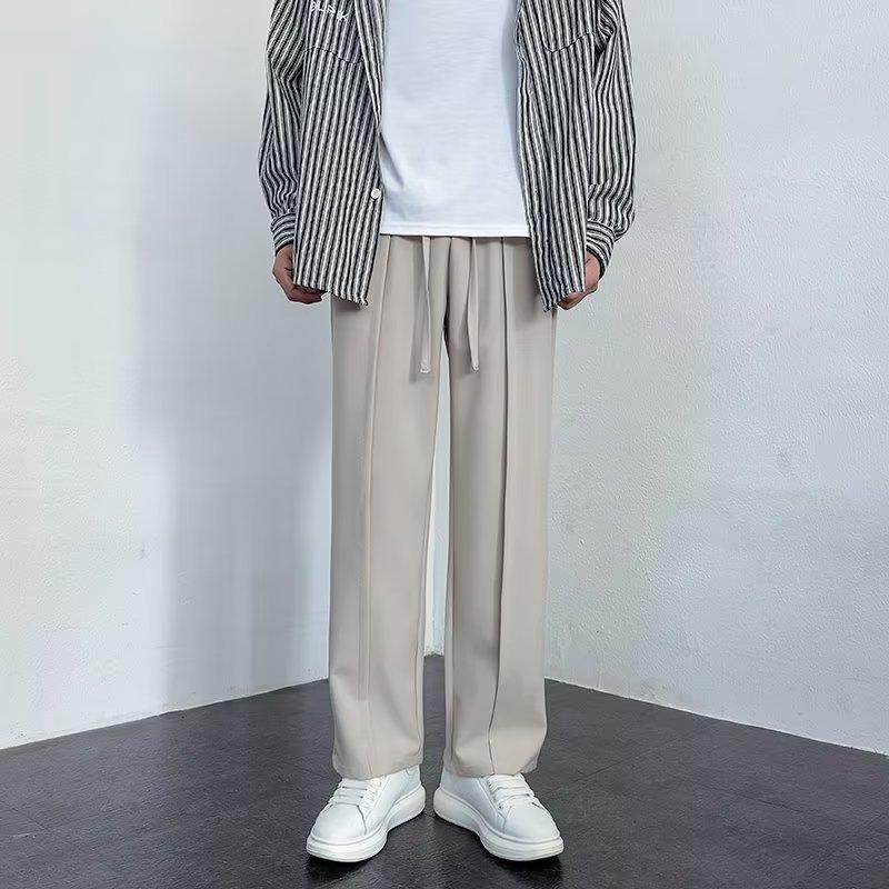 Pantalones deportivos negros finos de verano para hombre, de pierna ancha, holgados y combinables, pantalones largos informales rectos para hombre