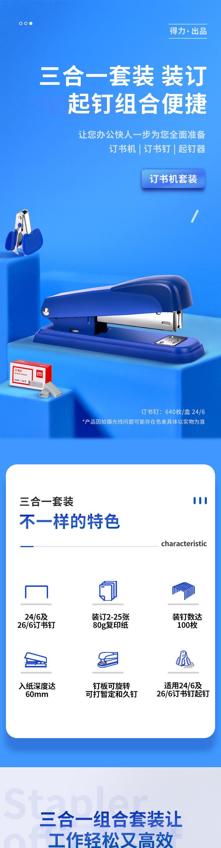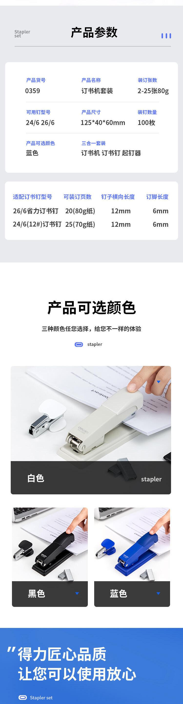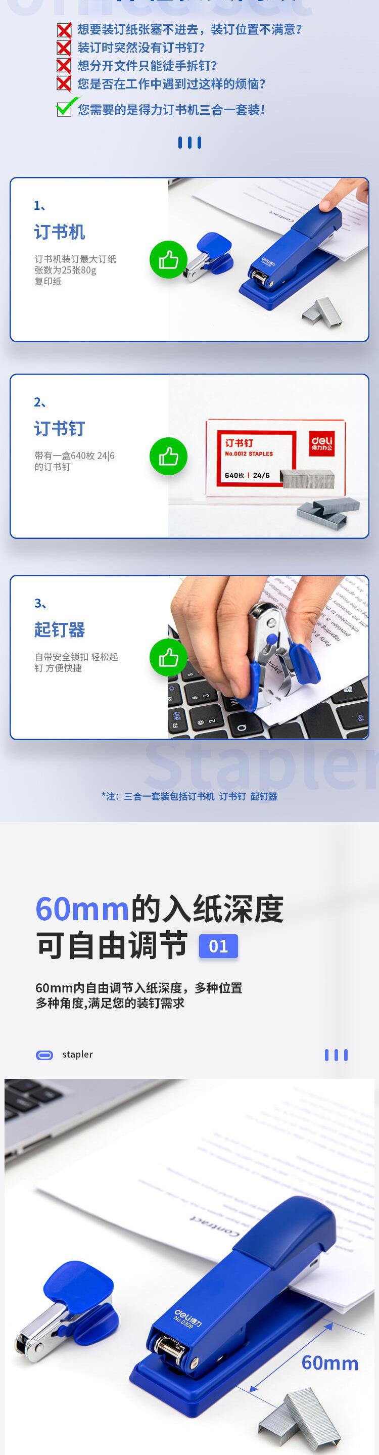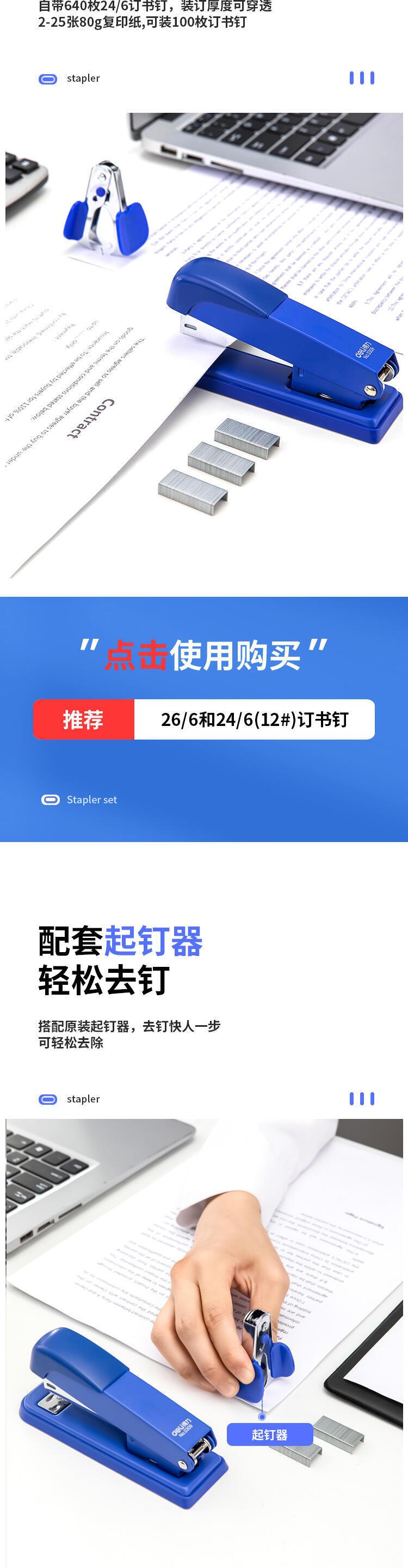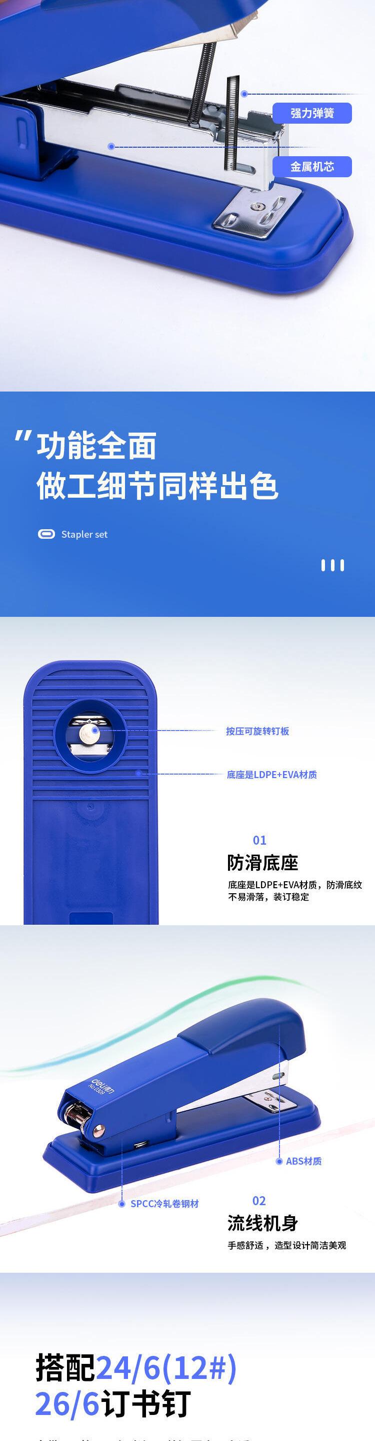 Grapadora Deli 12, modelo 0359, para uso en oficina, con agujas 0012.