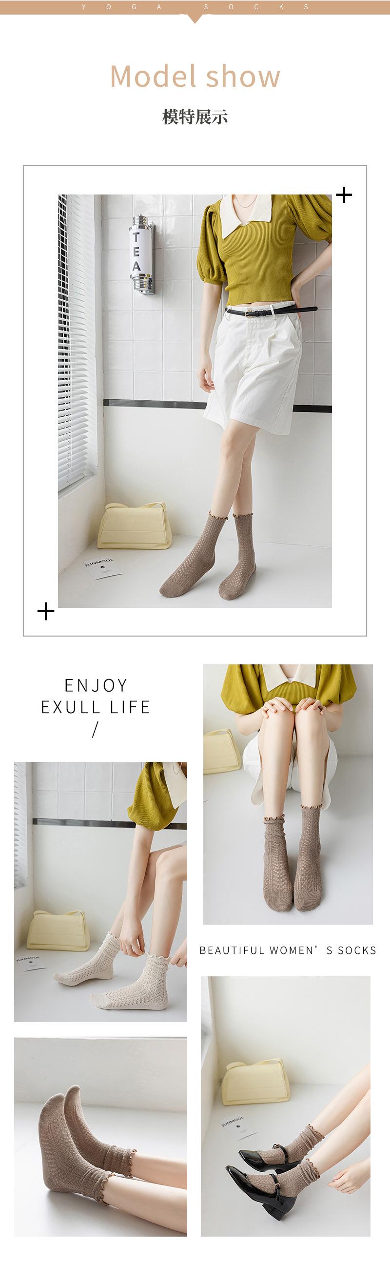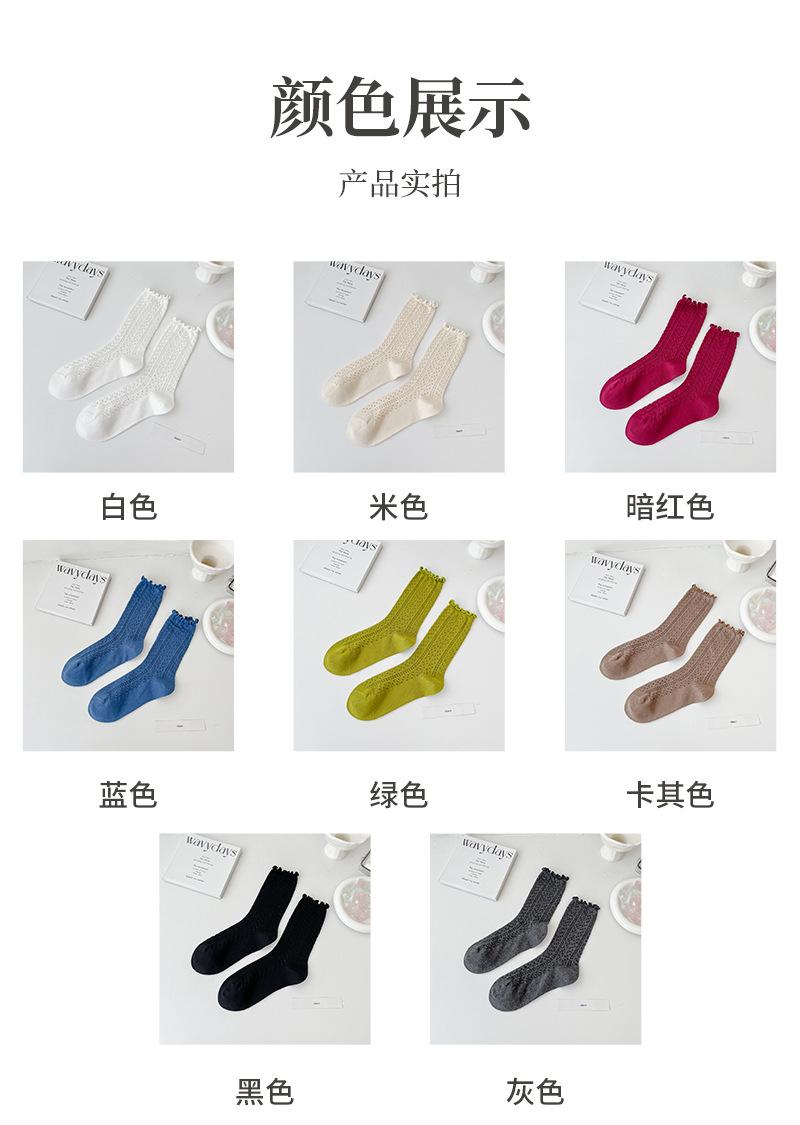 Compra Calcetines de media pantorrilla ahuecados de estilo coreano nuevos de otoño e invierno con orejas de madera, calcetines de pelo para mujer, calcetines de algodón de color sólido transpirables de malla, calcetines de pelo al por mayor en Joom.pro