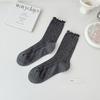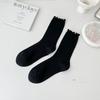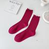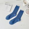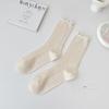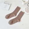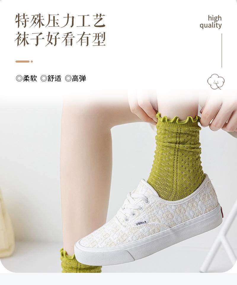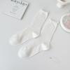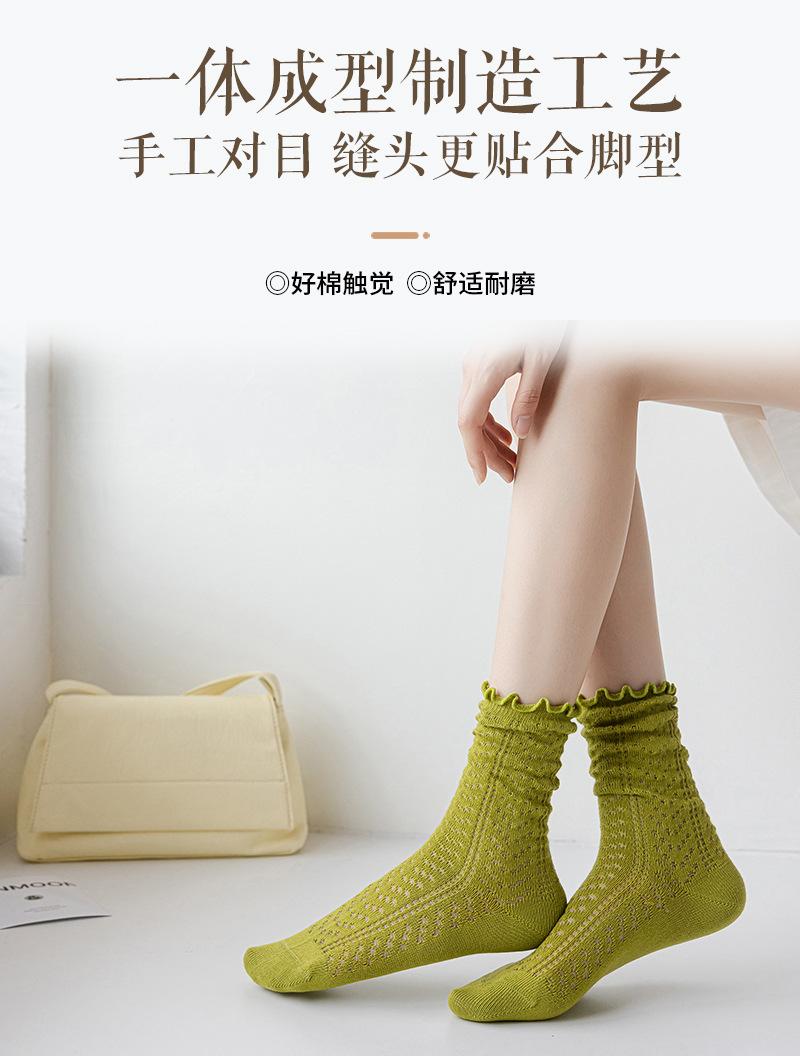 Calcetines de media pantorrilla ahuecados de estilo coreano nuevos de otoño e invierno con orejas de madera, calcetines de pelo para mujer, calcetines de algodón de color sólido transpirables de malla, calcetines de pelo