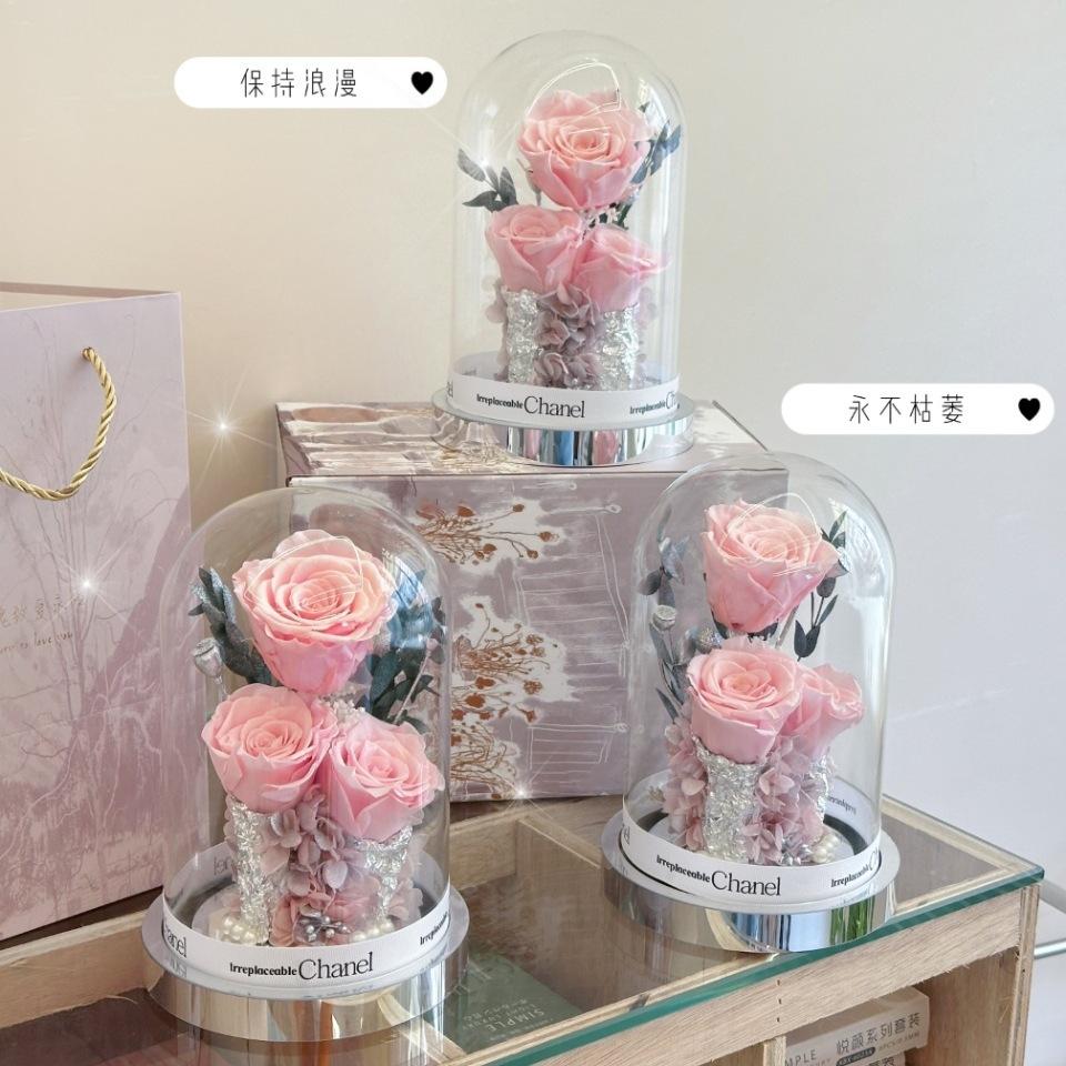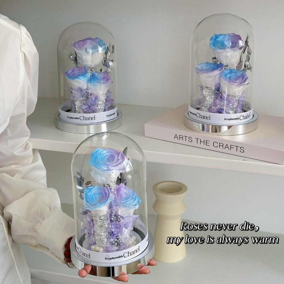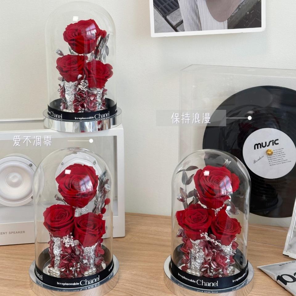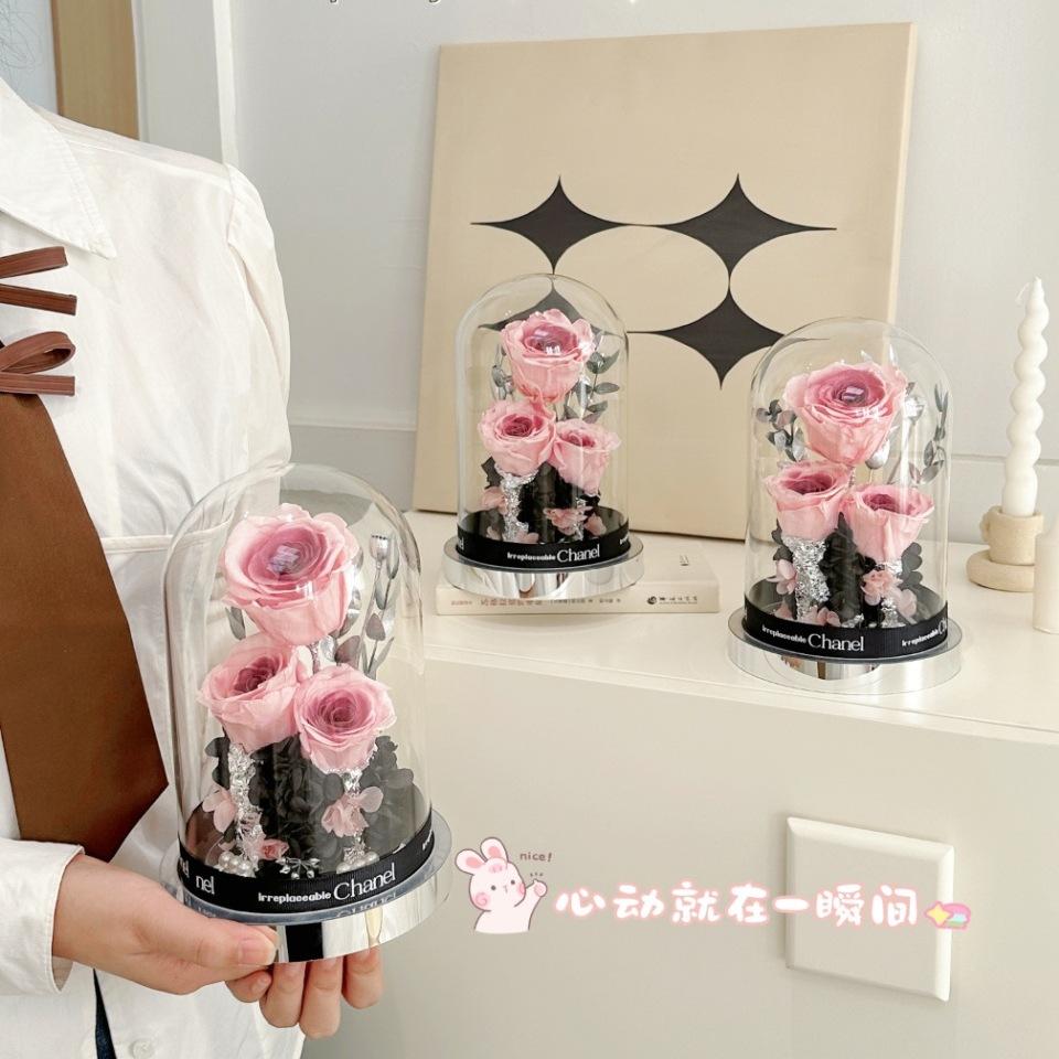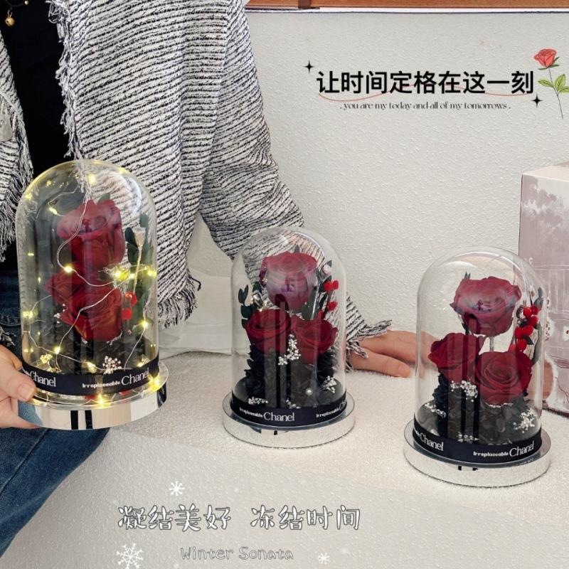 Caja de regalo con luz nocturna y espejo de cristal, con flores secas, para el Día de San Valentín, con rosas eternas y tres vidas III.