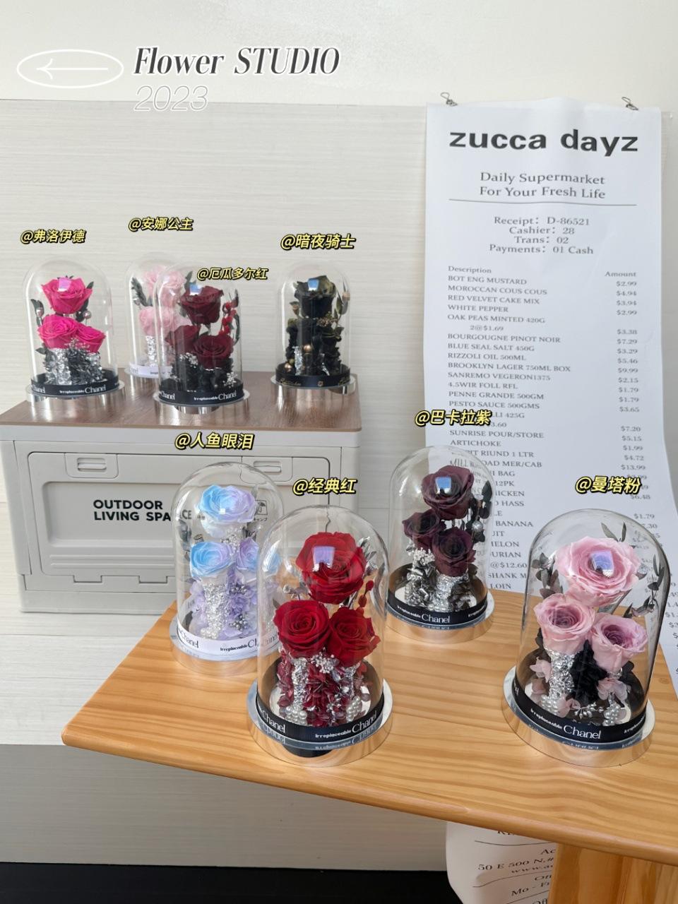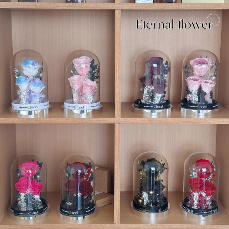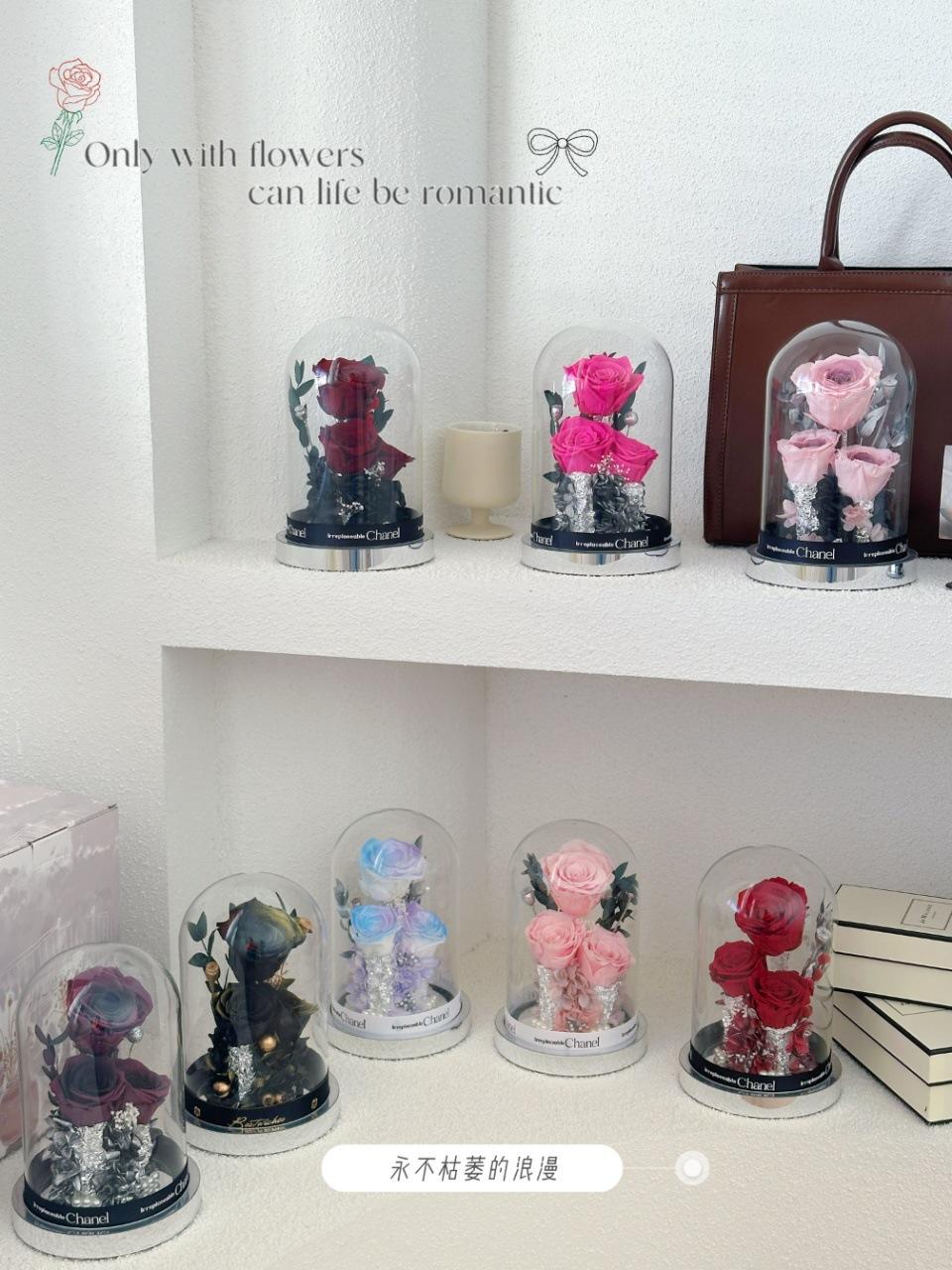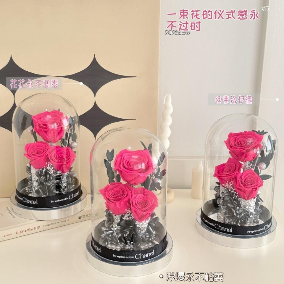 Caja de regalo con luz nocturna y espejo de cristal, con flores secas, para el Día de San Valentín, con rosas eternas y tres vidas III.