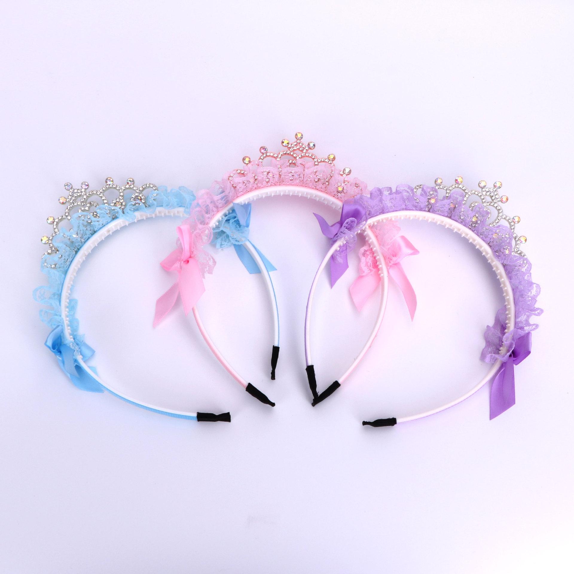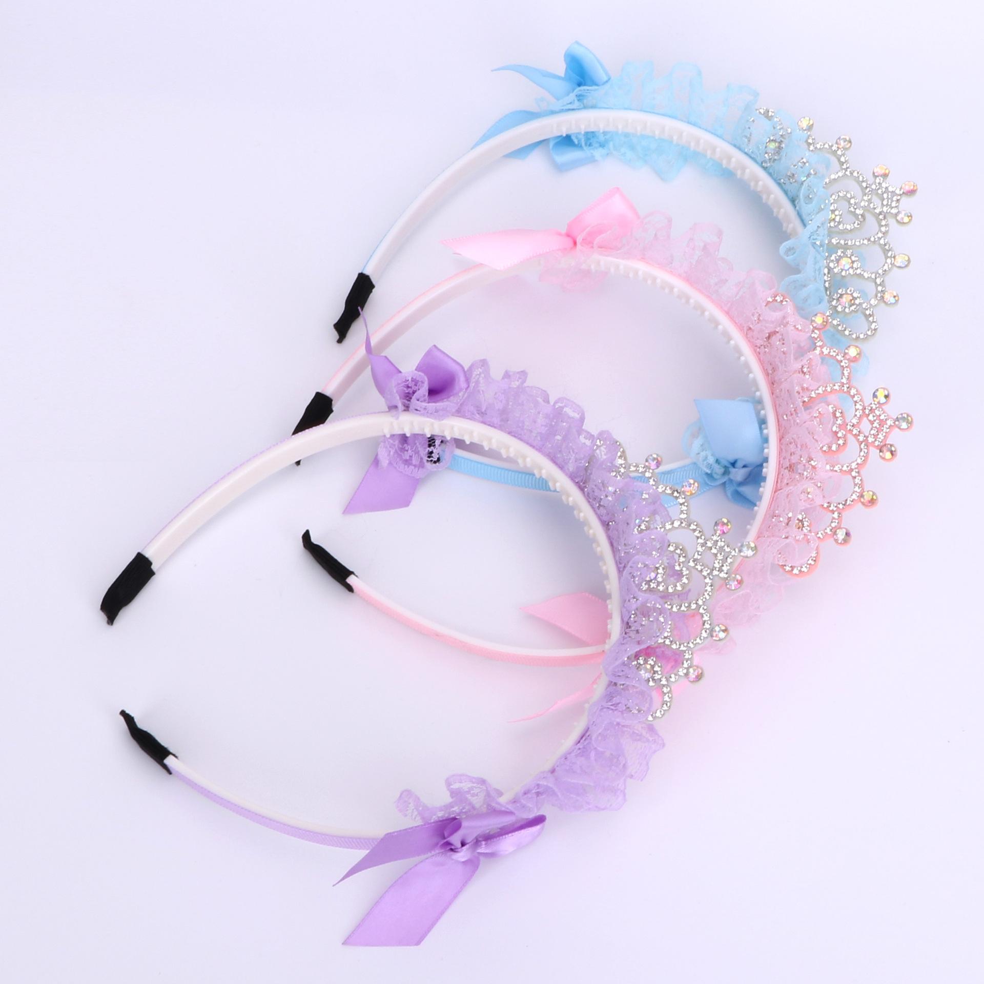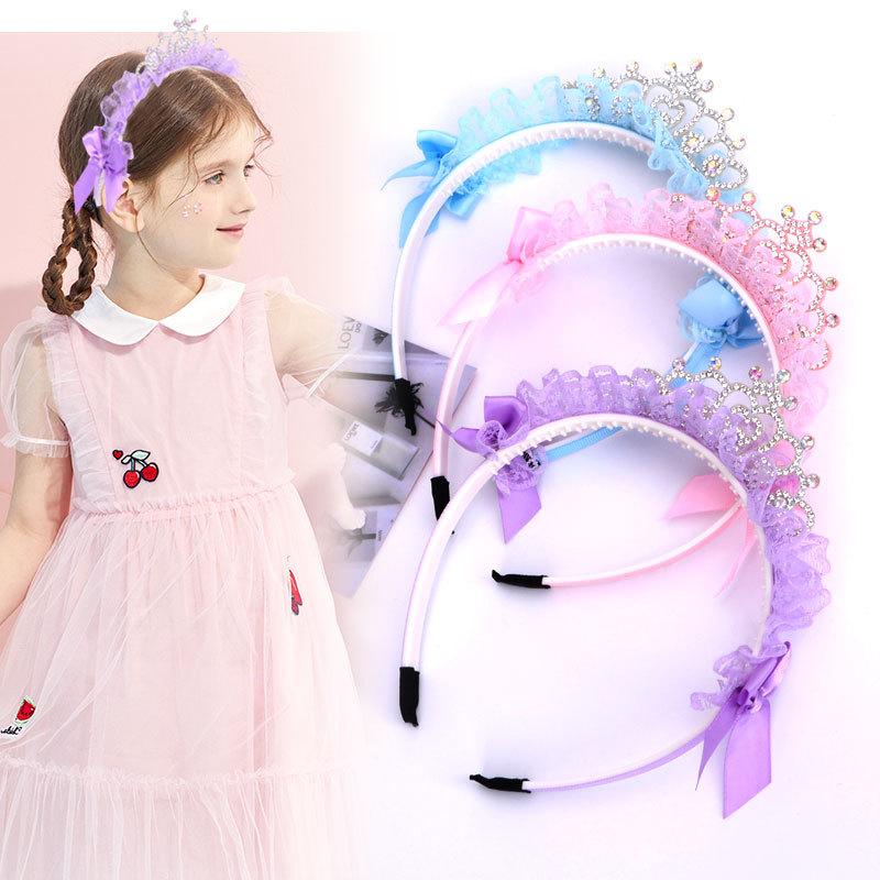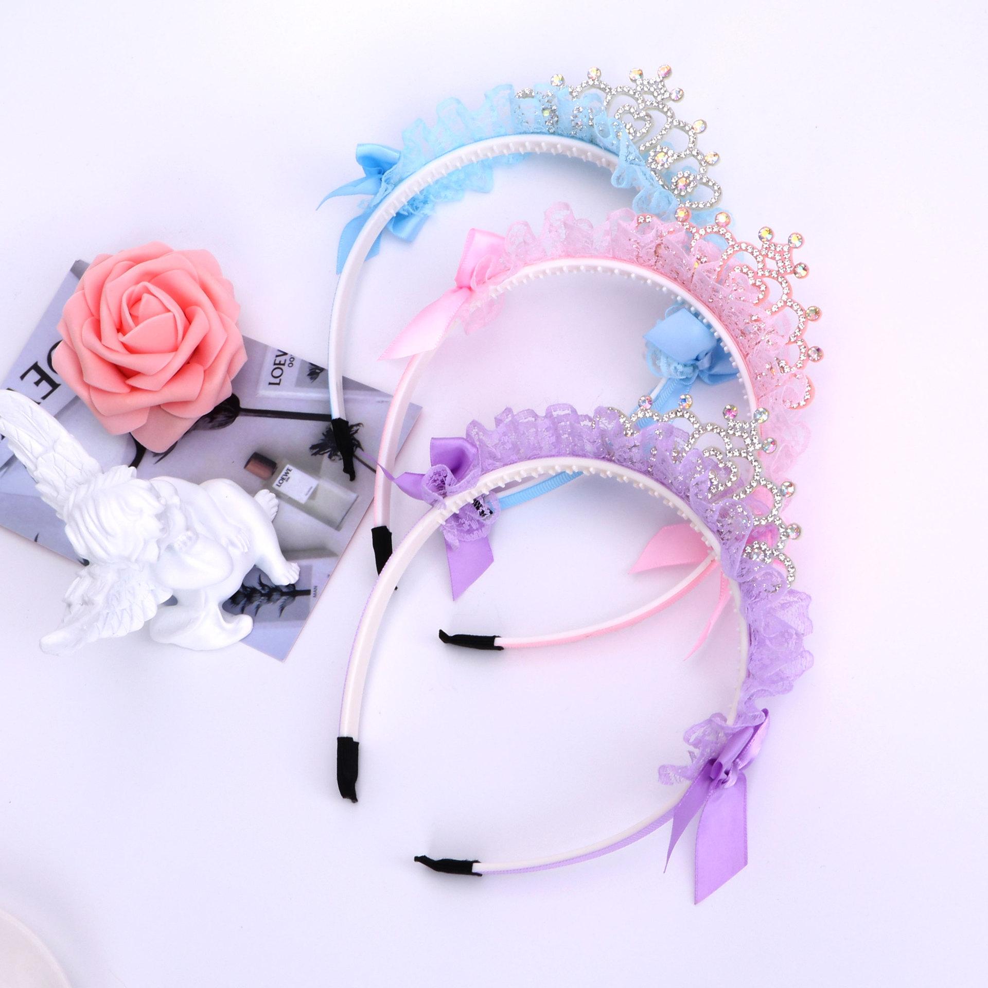 Adecuado para niños de 2 a 6 años, la diadema de la corona no se puede doblar y los diamantes no se caerán, cristales de encaje y diamantes, lazos en ambos lados, muy dulce para que los bebés los usen, accesorios para el cabello con diadema de horquilla de princesa