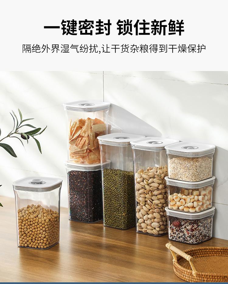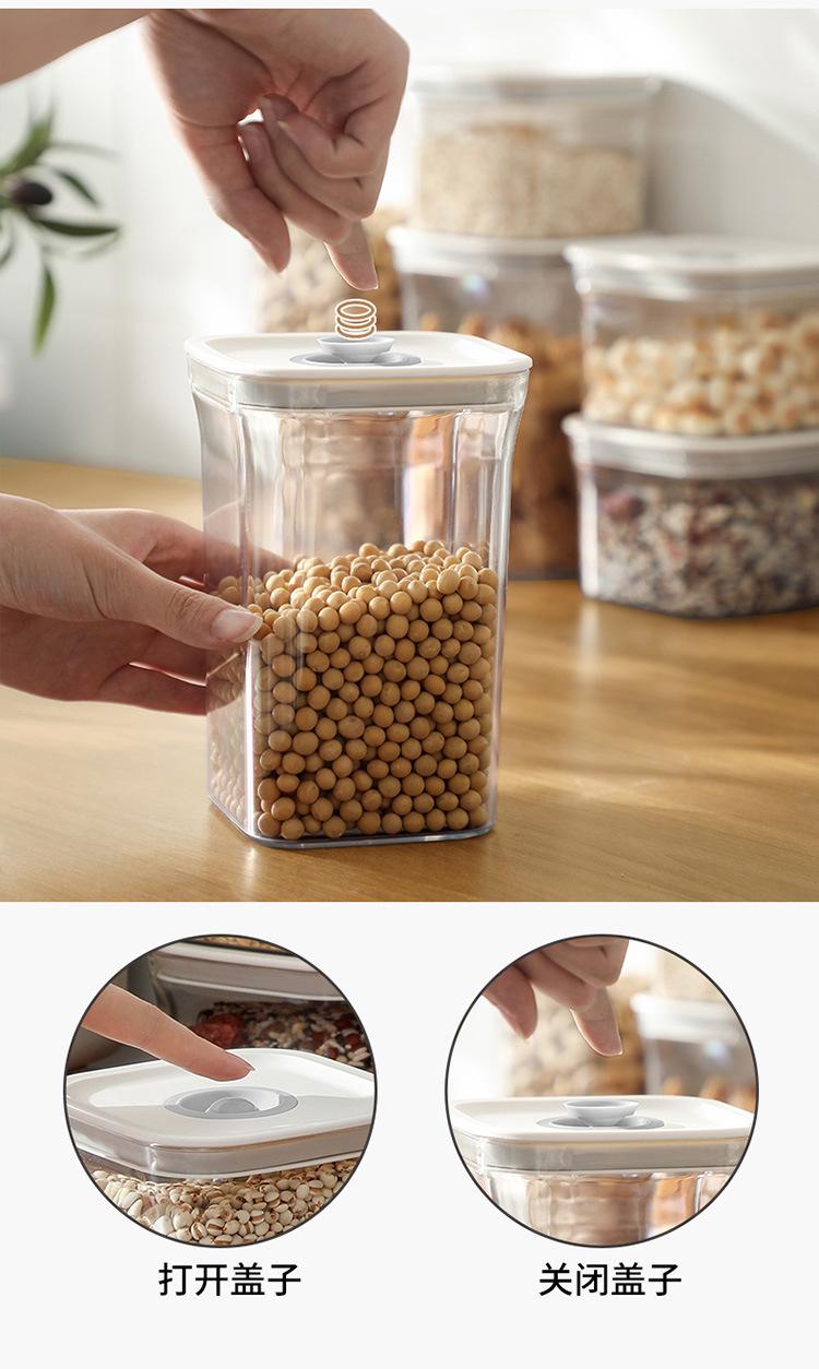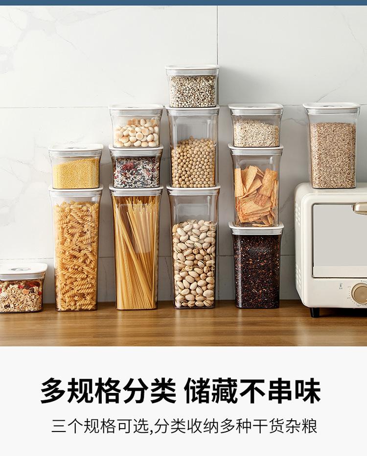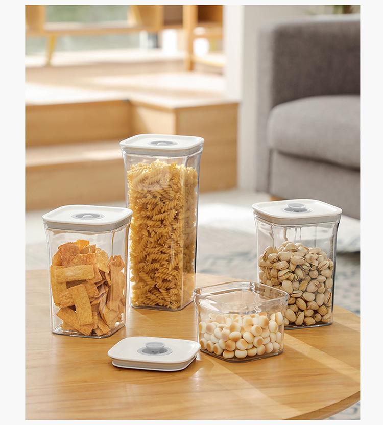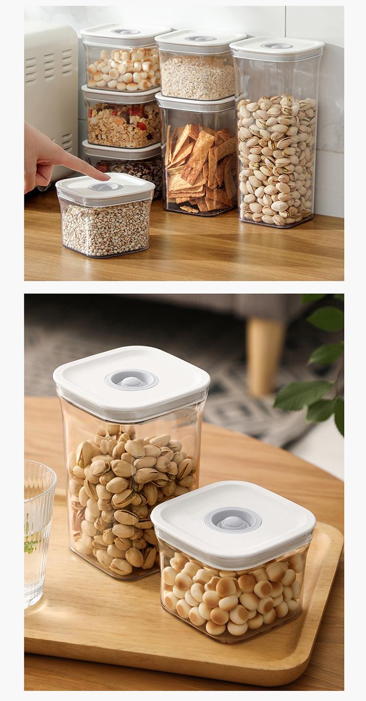Tarro de grano para cocina doméstica, transparente, para almacenar frutos secos, aperitivos, té, prensa cuadrada, para pasta, sellado
