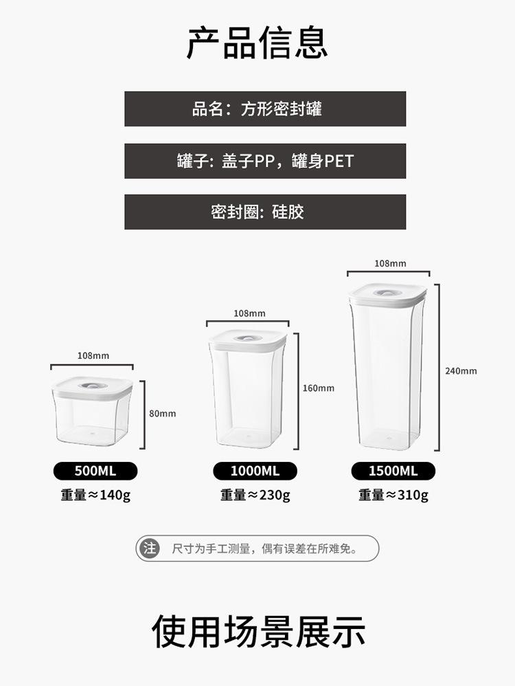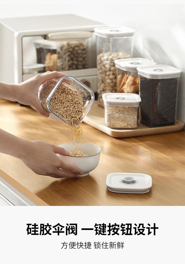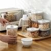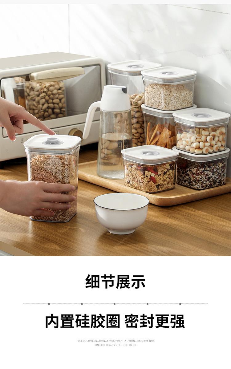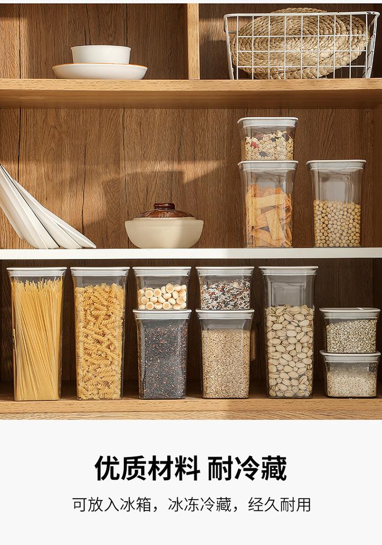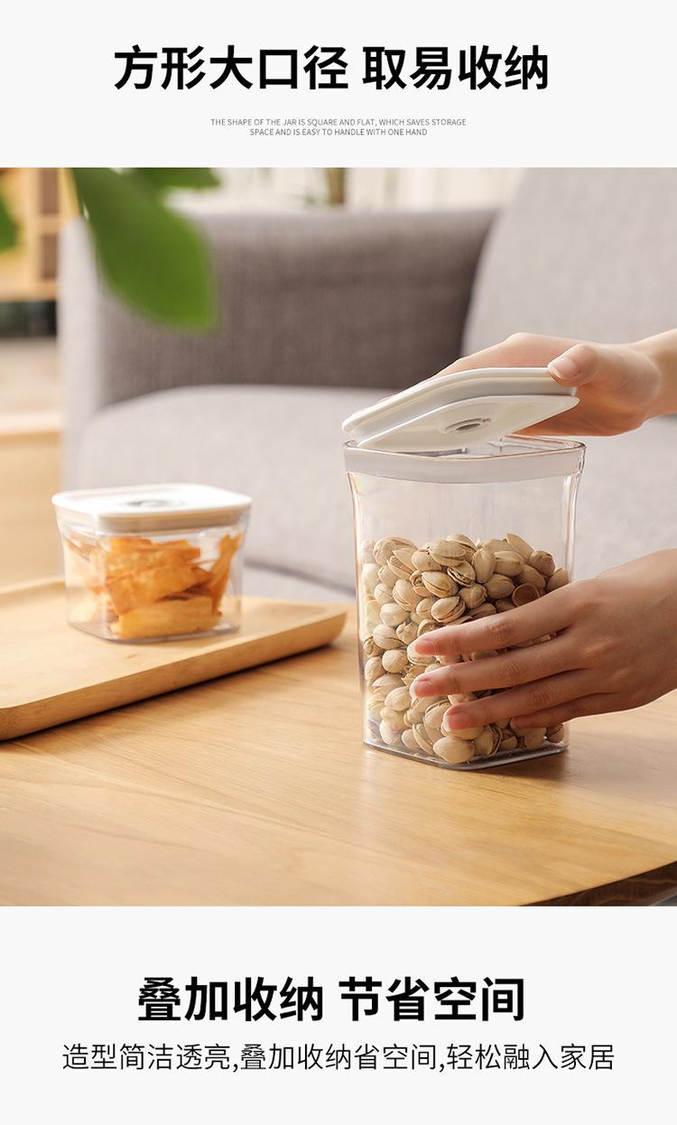 Tarro de grano para cocina doméstica, transparente, para almacenar frutos secos, aperitivos, té, prensa cuadrada, para pasta, sellado