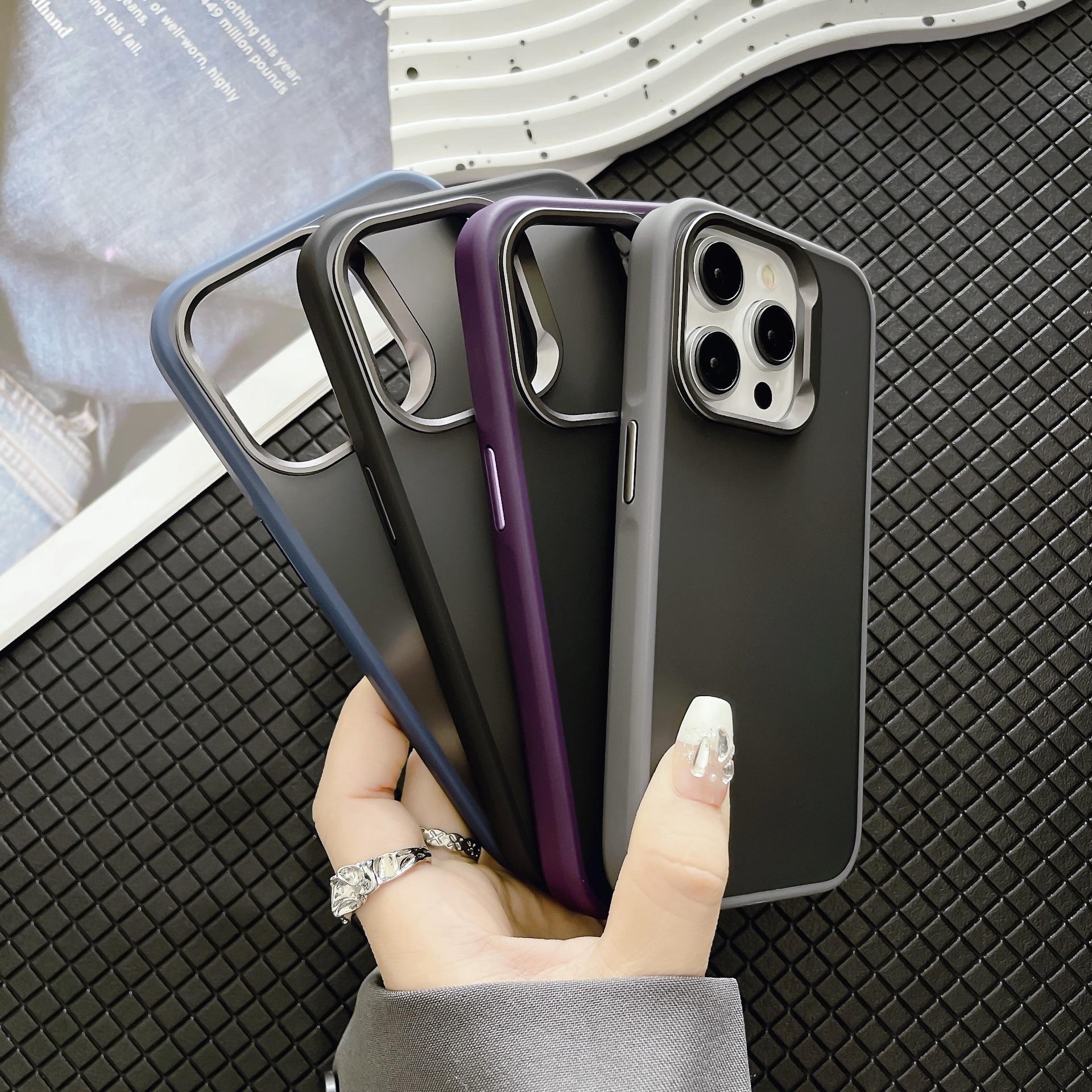 Adecuado para iPhone14ProMax lente soporte invisible funda para teléfono móvil Apple 13 gafas de PC esmerilado 12 funda protectora