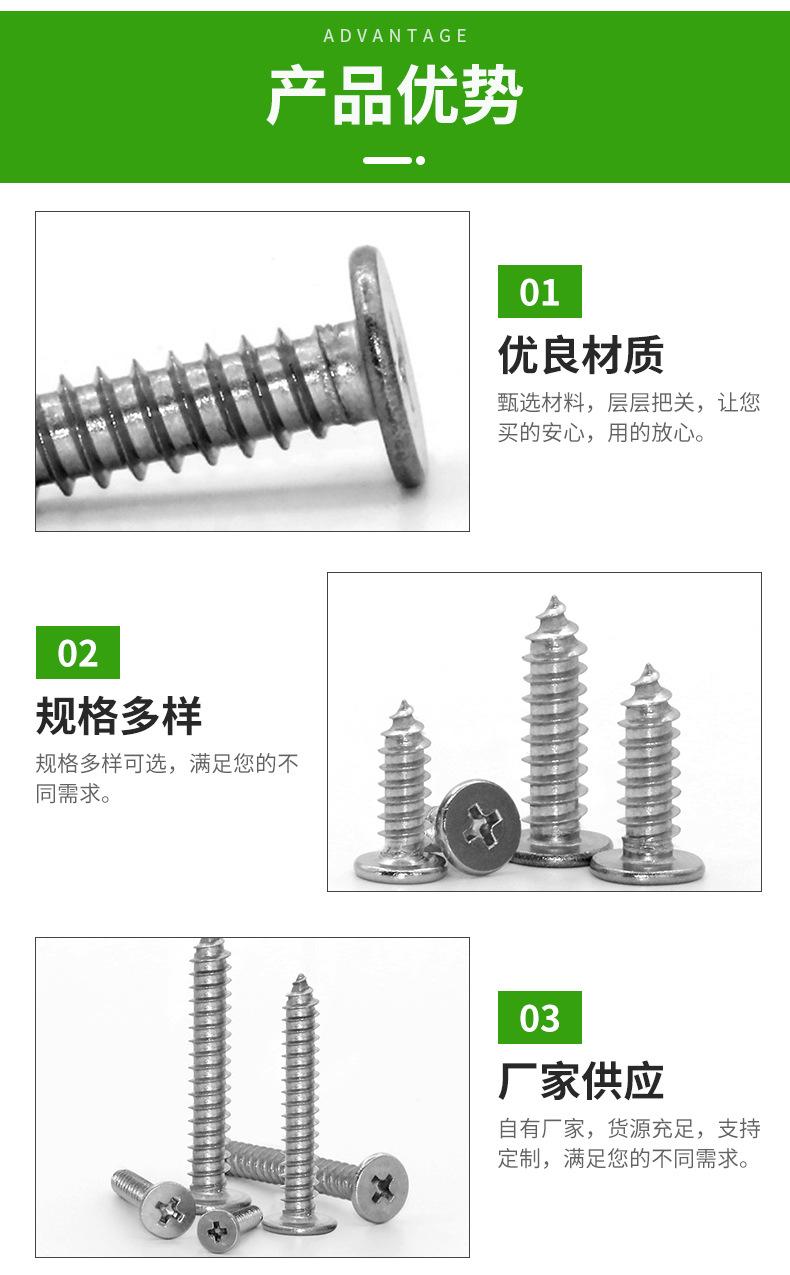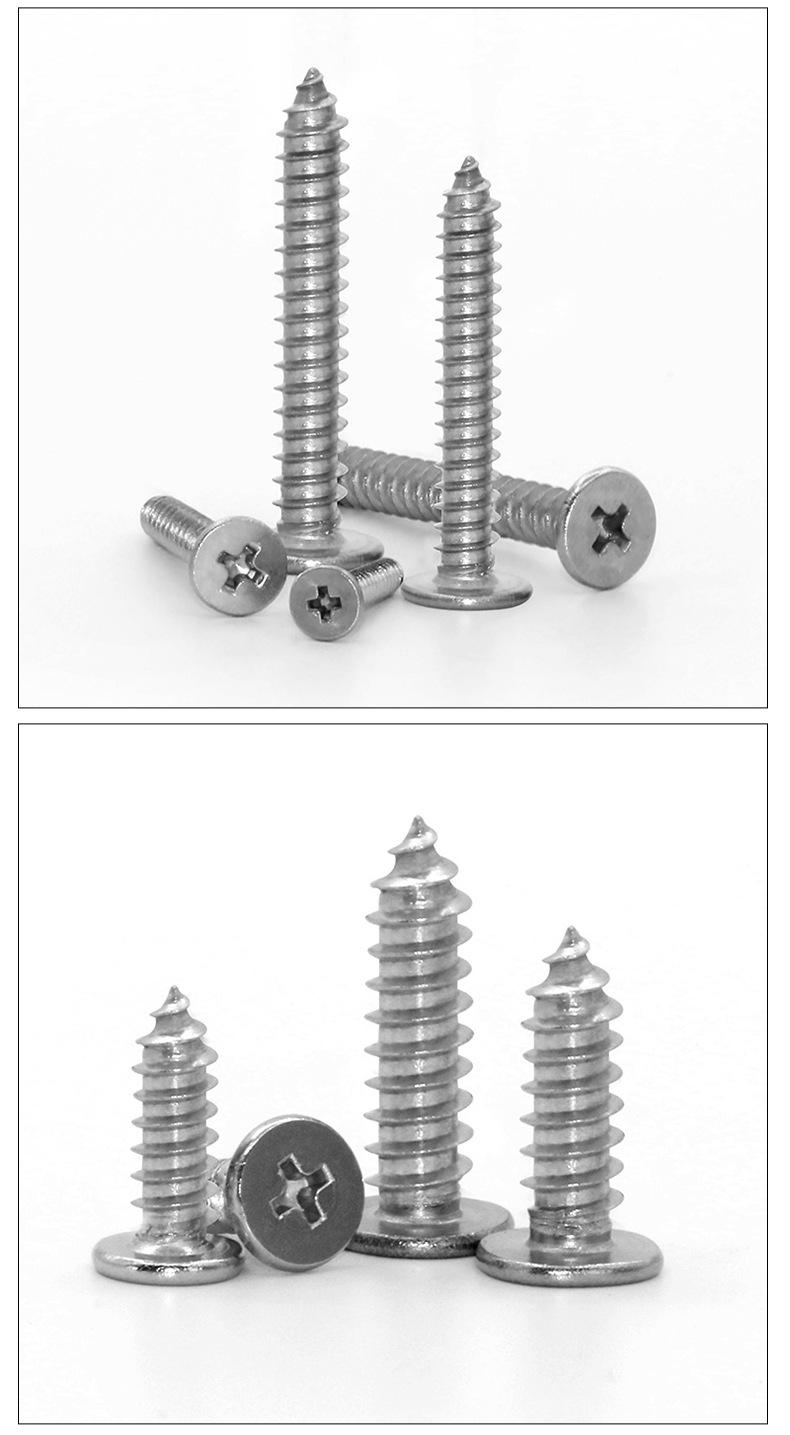 Tornillos Autoperforantes de Acero Inoxidable 304 de Cabeza Plana Cruz Ca Tornillos Autoperforantes de Cabeza Plana Grande Cruz de Cabeza Plana Fina