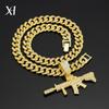 Nuevo collar transfronterizo con pistola M4, joyería de diamantes con personalidad, colgante creativo, estilo hip-hop, ametralladora que combina con todo.
