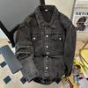 Abrigo vaquero vintage teñido anudado para hombre, estilo urbano, marca de moda, chaqueta lavada americana holgada, ropa de trabajo informal