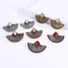 Nuevos Aretes de Piedras Preciosas en Forma de Abanico Estilo Palacio Retro Aretes de Diamantes de Cristal Bohemio Aretes de Lujo Ligero Transfronterizos