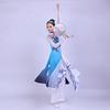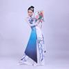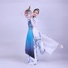 Traje de danza clásica para mujer, elegante traje de danza con abanico, de porcelana azul y blanca, estilo chino, traje de danza étnica, traje de actuación de Jiangnan.