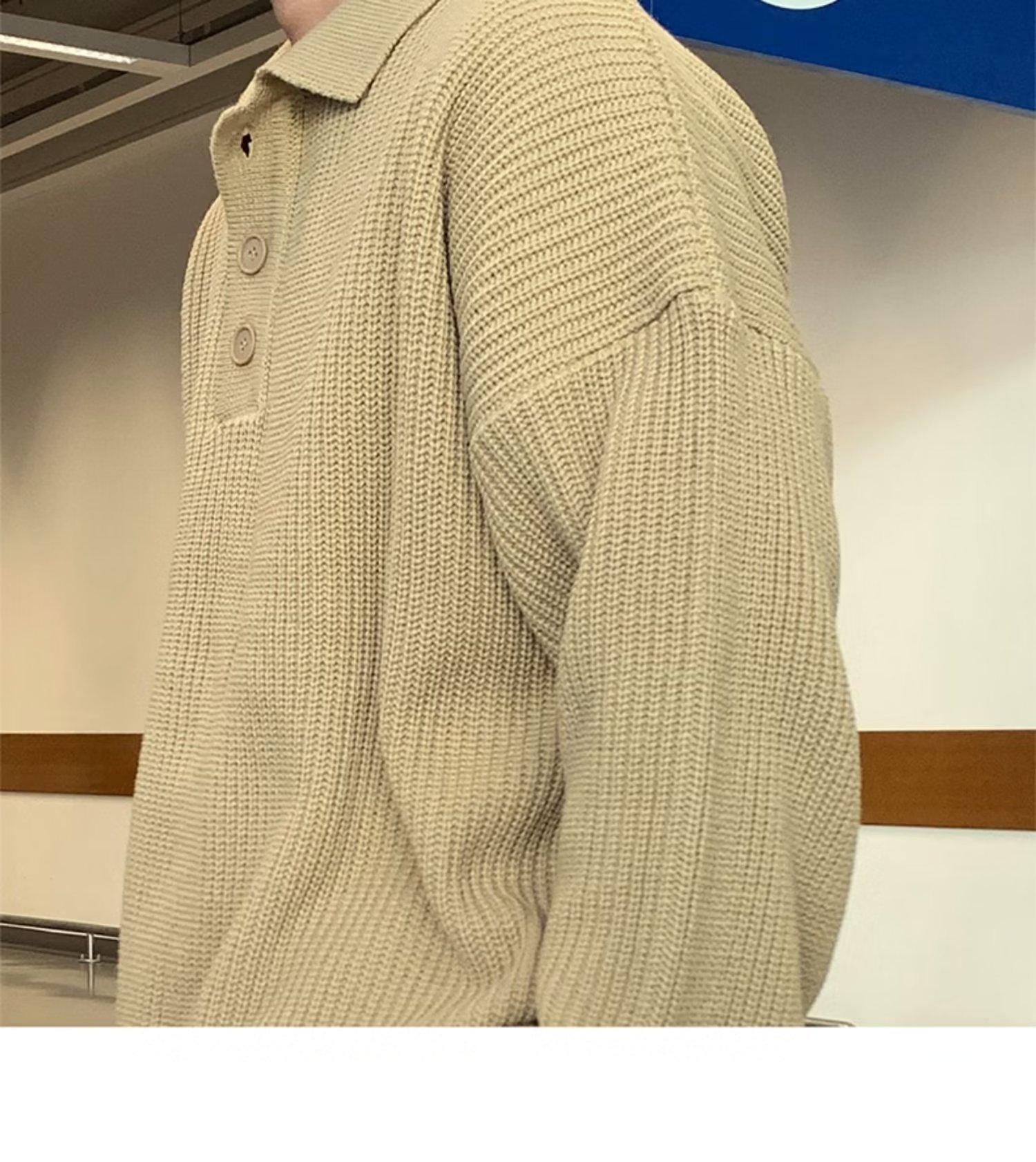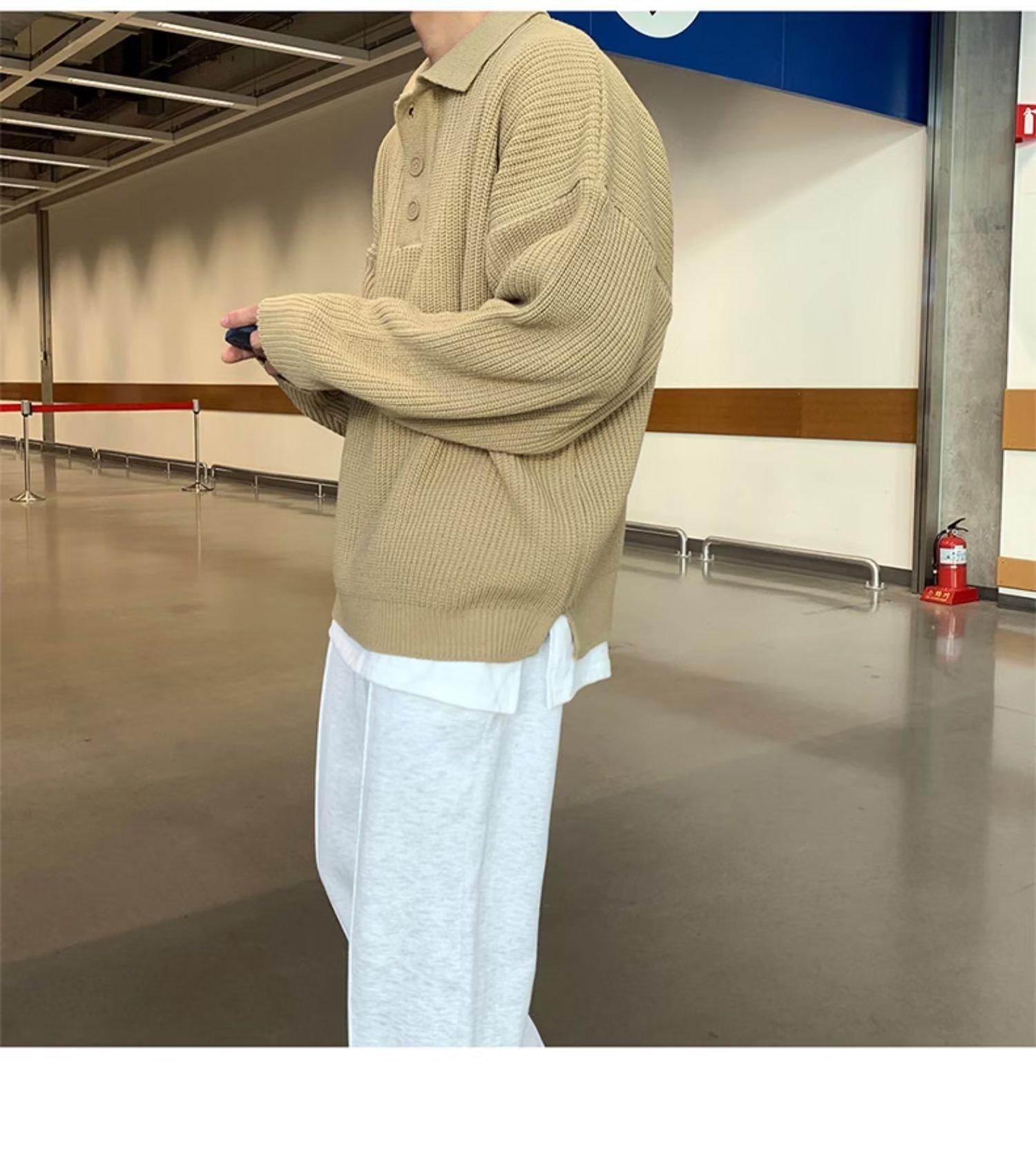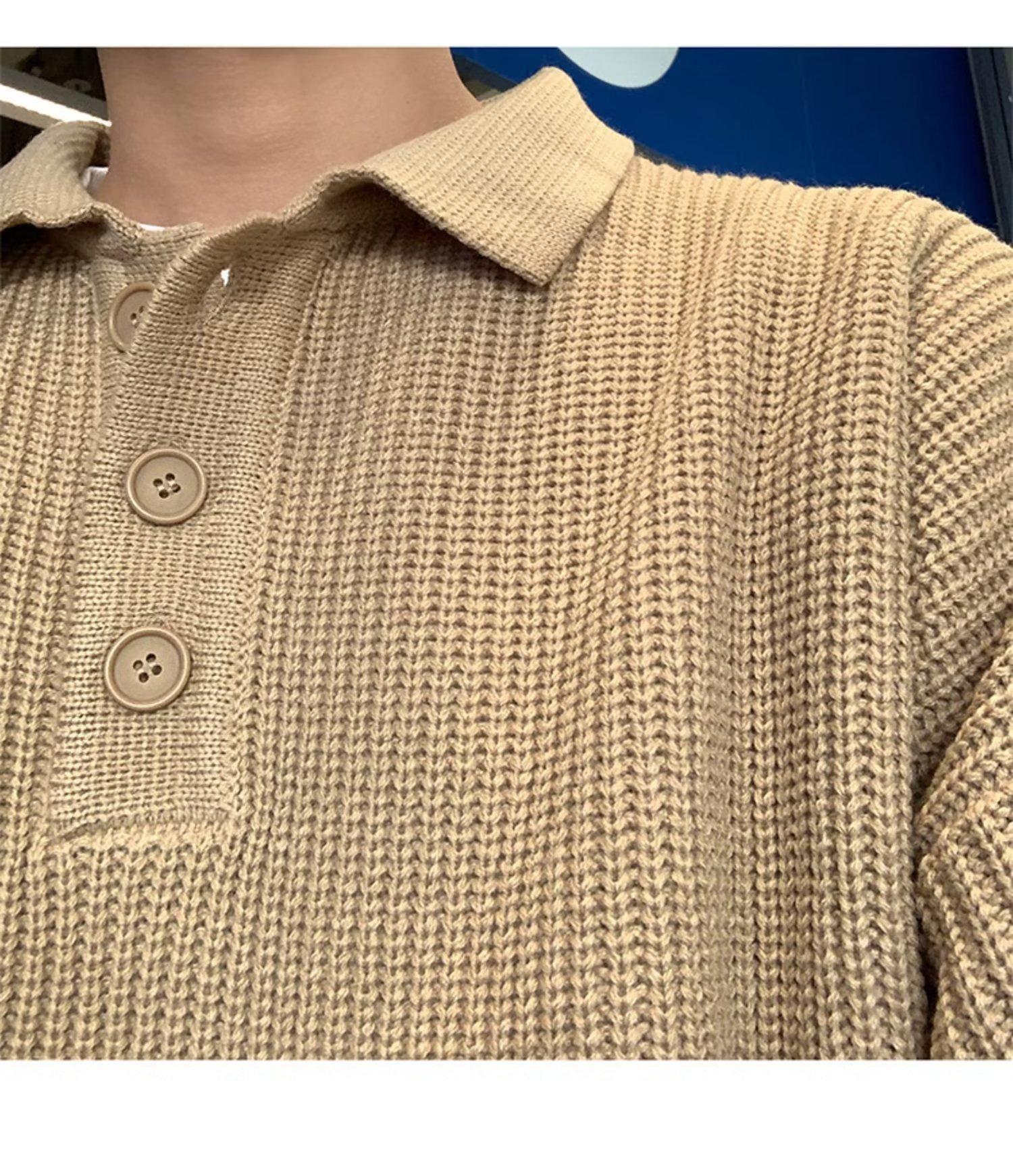 Suéter de color sólido de otoño e invierno para hombre, marca de moda, POLO de manga larga, suéter vintage holgado con solapa que combina con todo, suéter superior para pareja