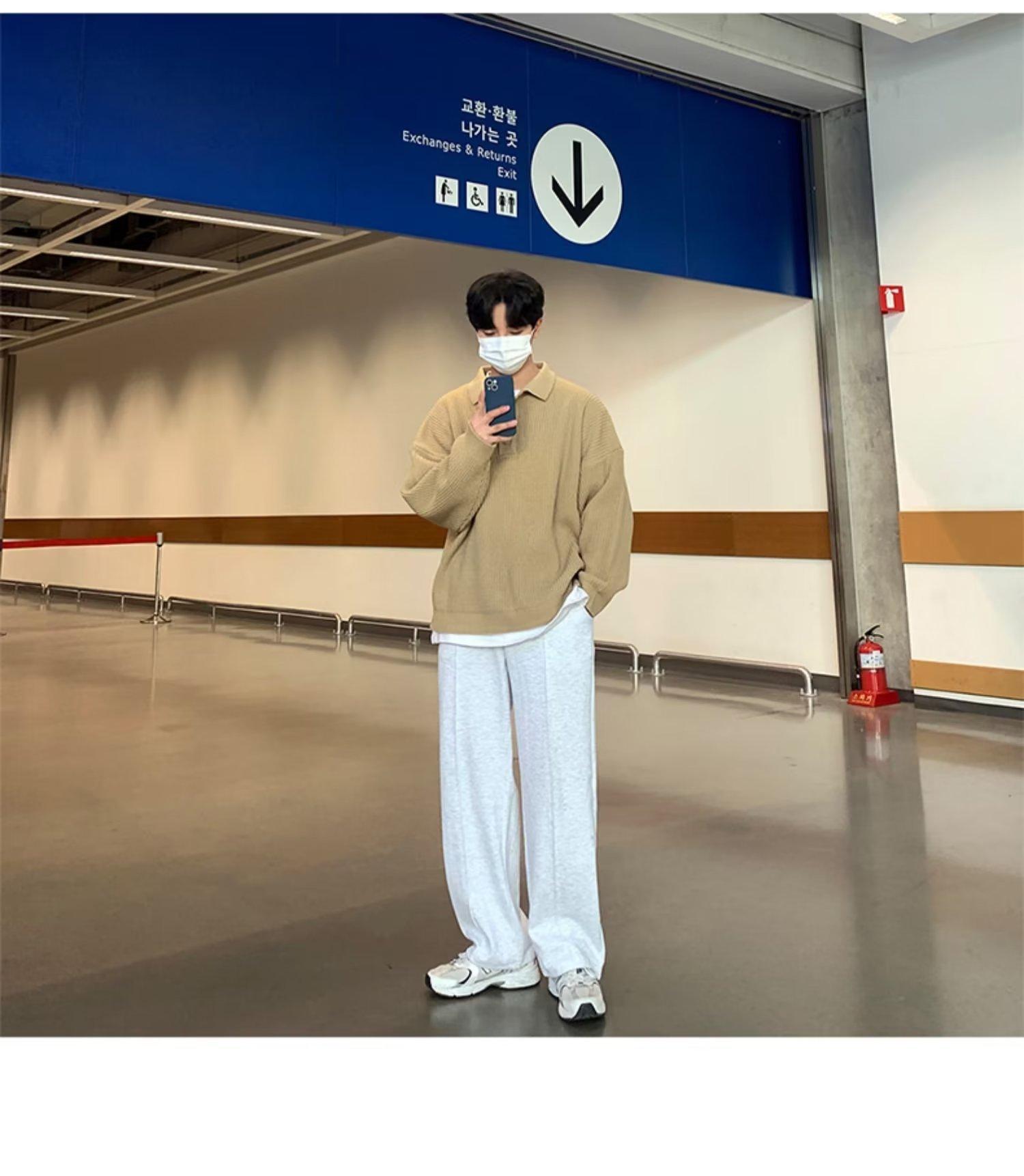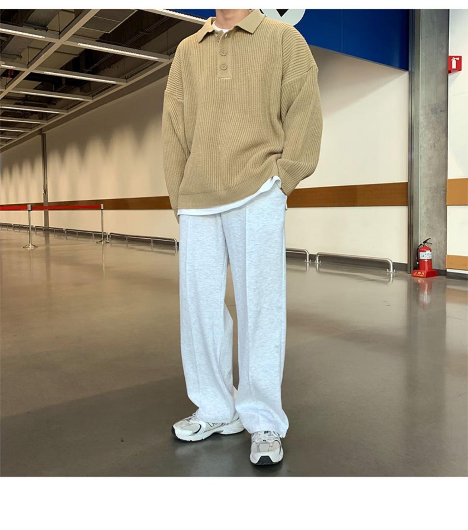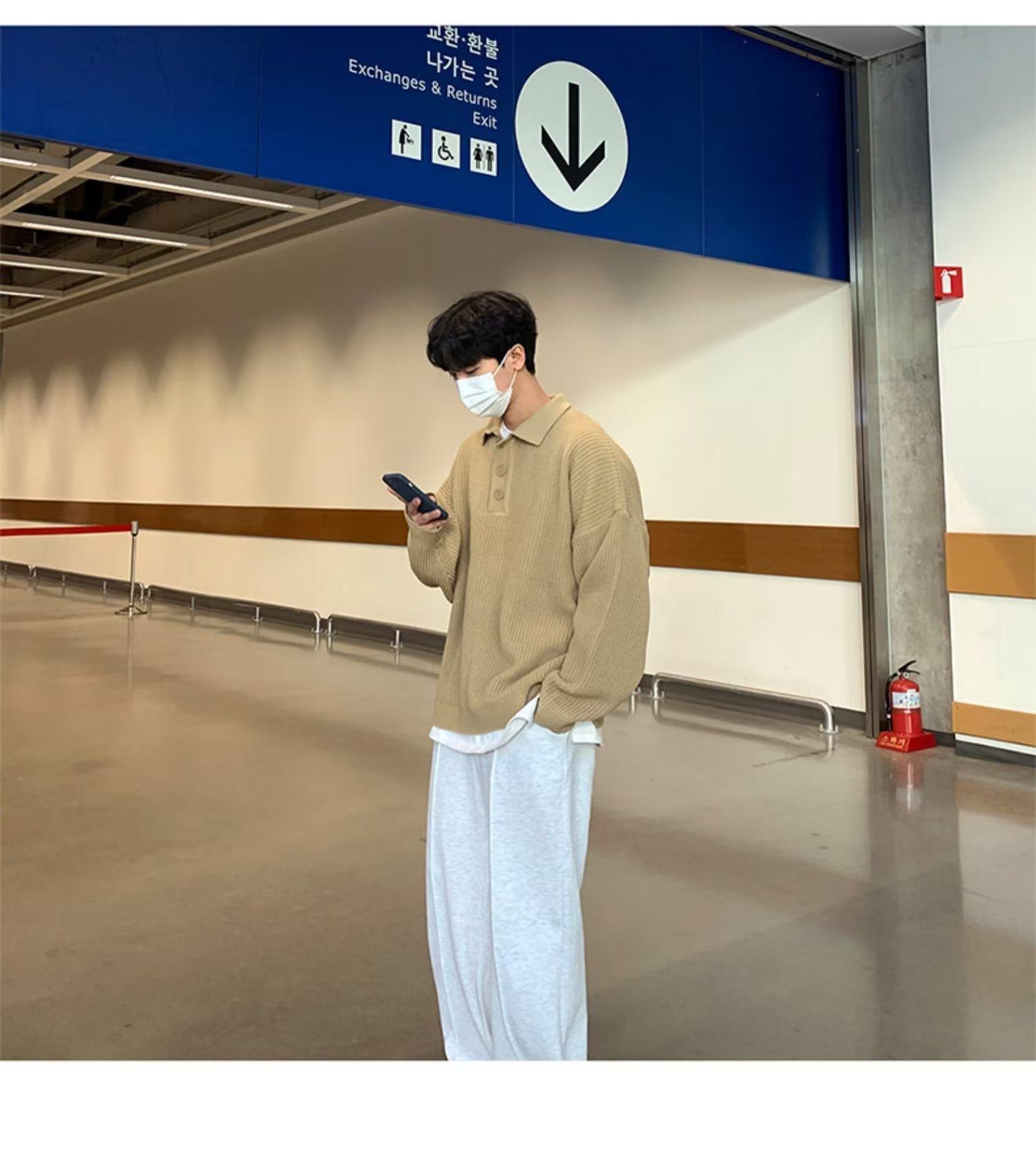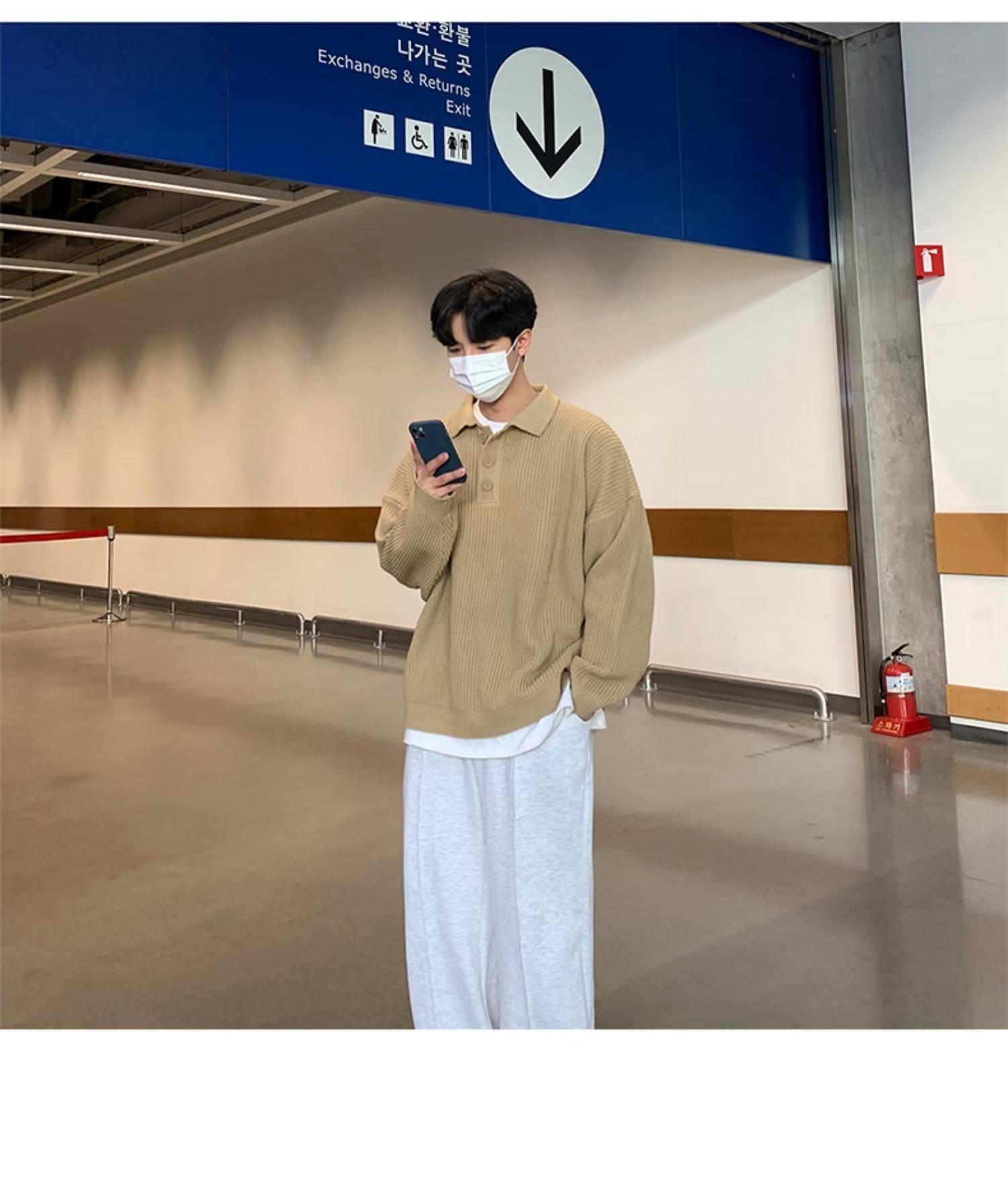 Suéter de color sólido de otoño e invierno para hombre, marca de moda, POLO de manga larga, suéter vintage holgado con solapa que combina con todo, suéter superior para pareja