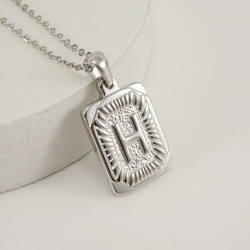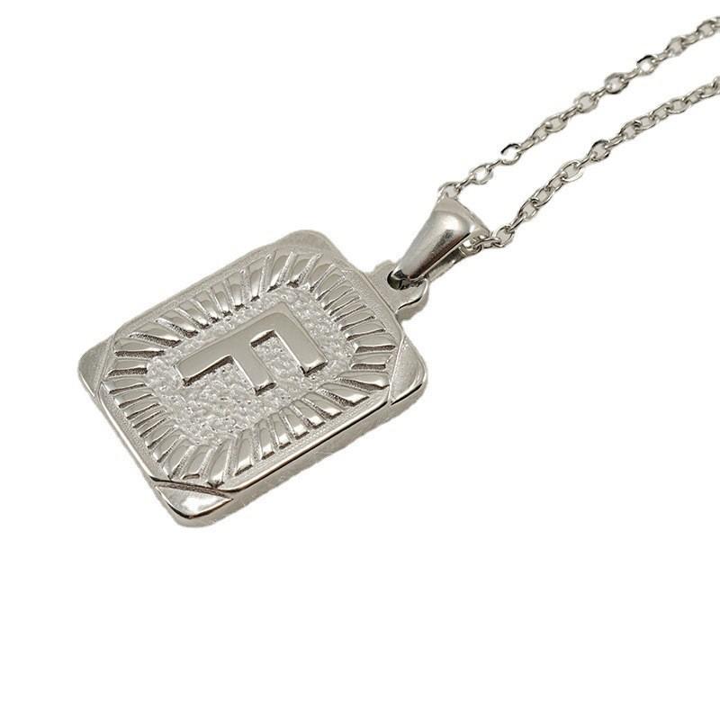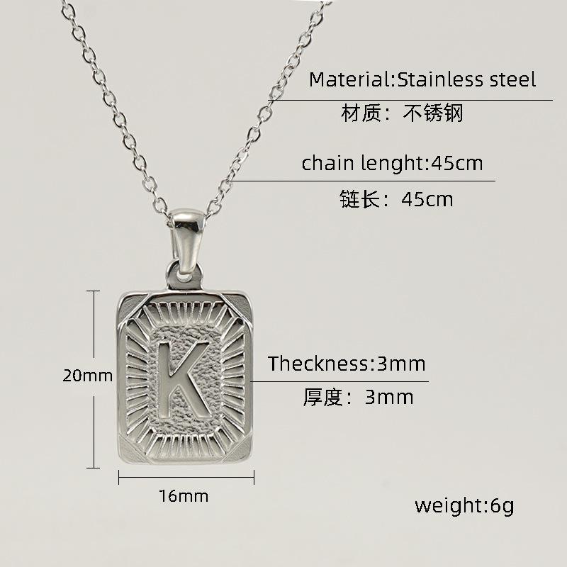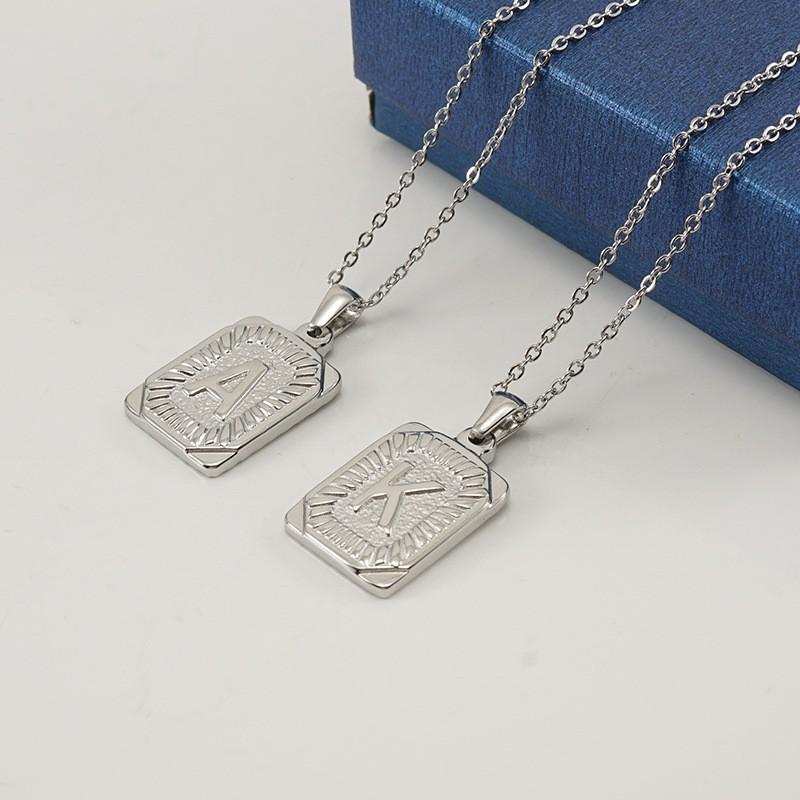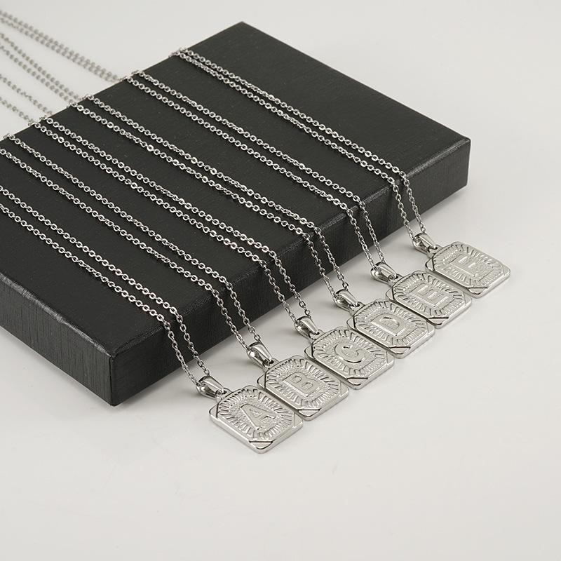 Colgante de letra cuadrada de acero inoxidable versátil de estilo europeo y americano, collar de acero de titanio con 26 letras en inglés y viento frío transfronterizo para hombres y mujeres
