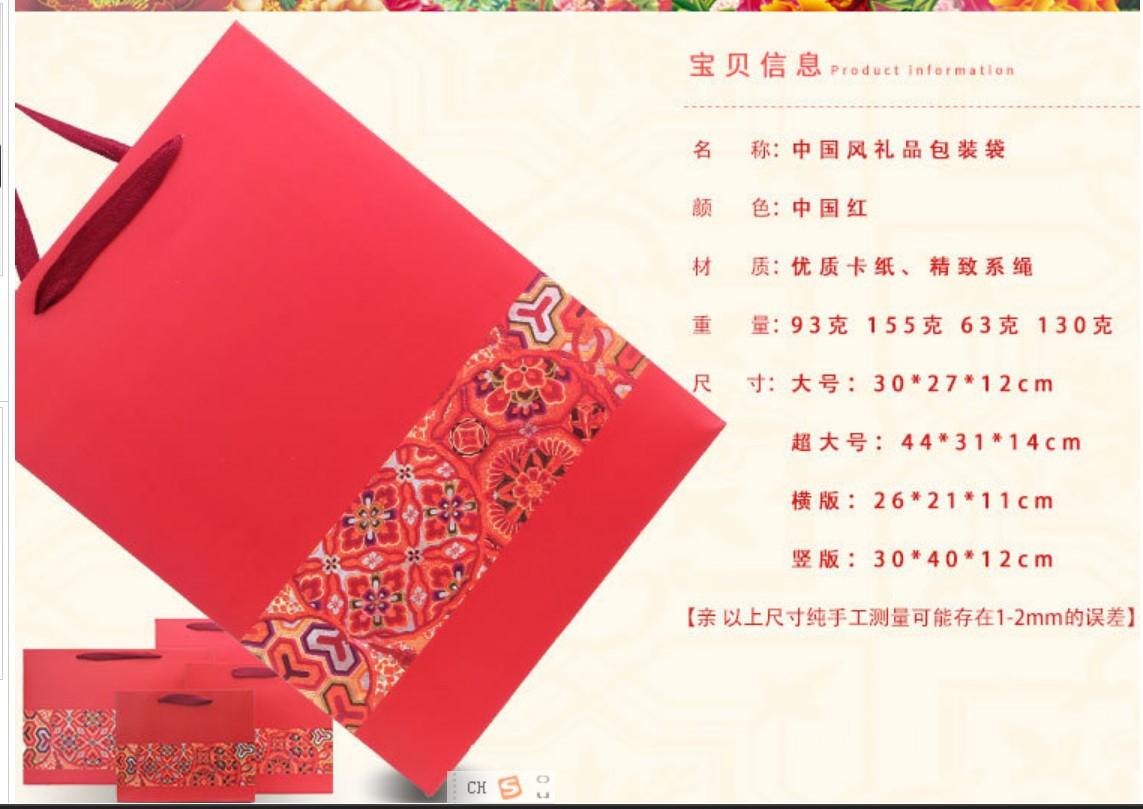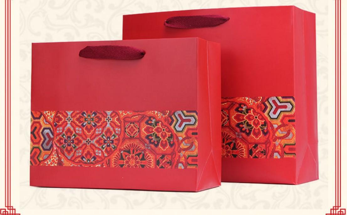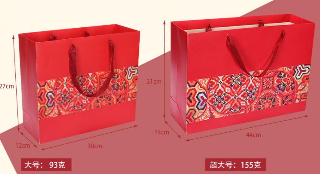 Bolsa de regalo festiva roja, bolsa de papel, bolsa de regalo china con parte trasera roja, bolso de mano para boda, bolsa de dulces de luna llena, bolso de mano