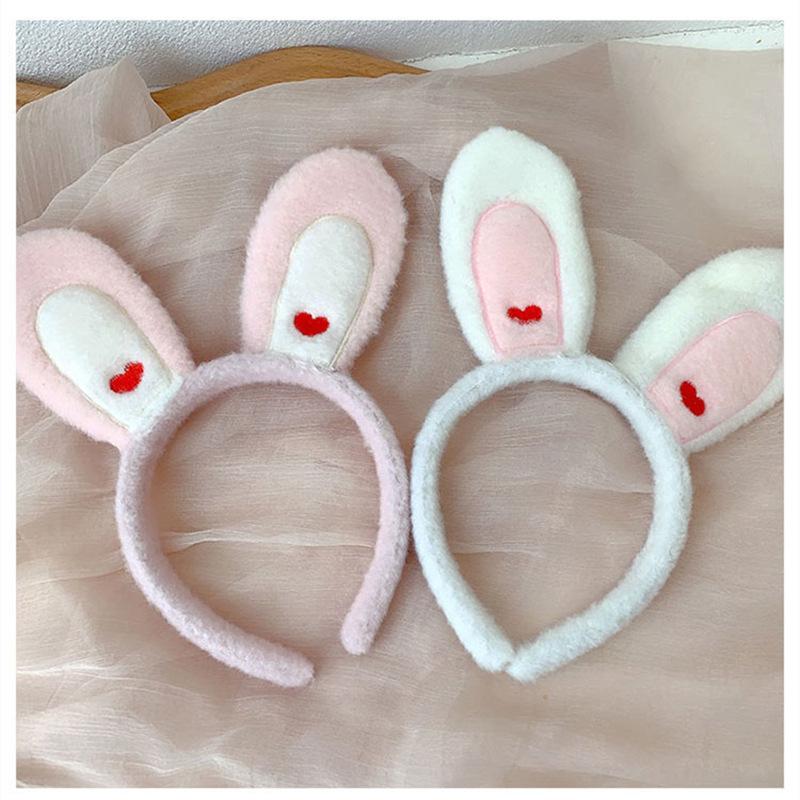 Bonita diadema con orejas de conejo, bonita diadema con forma de corazón para niña, diadema con orejas de peluche de conejo, accesorios para fotos con paisajes, accesorios para el cabello