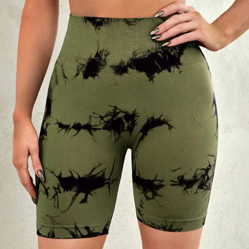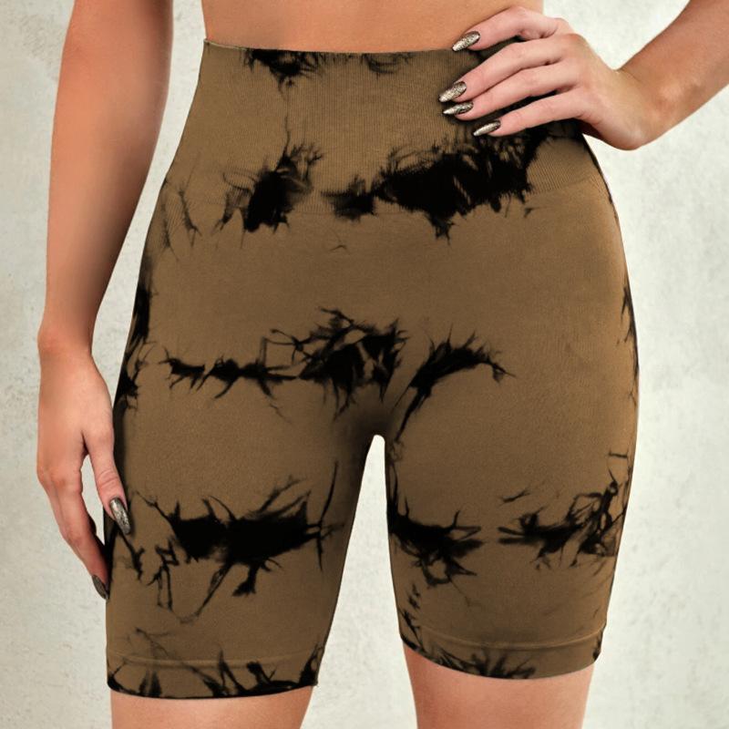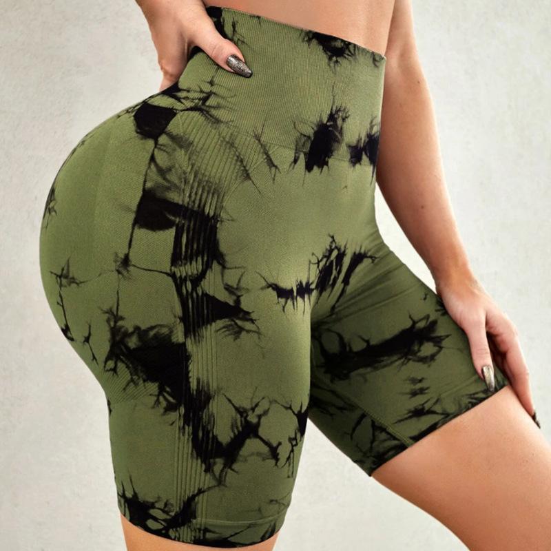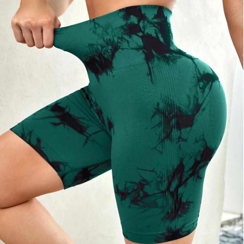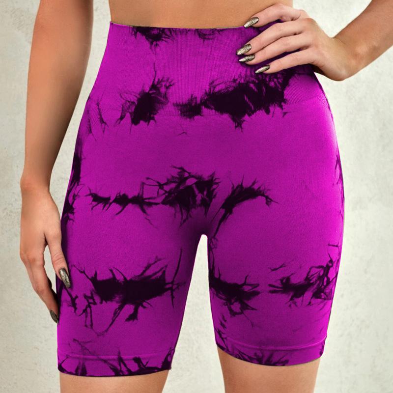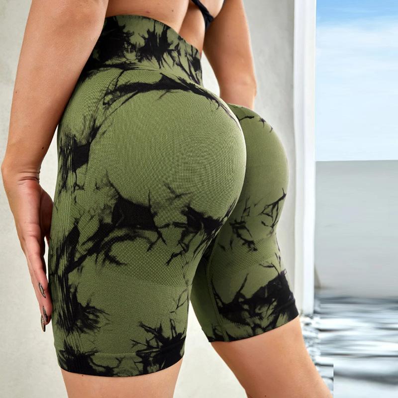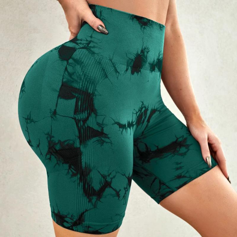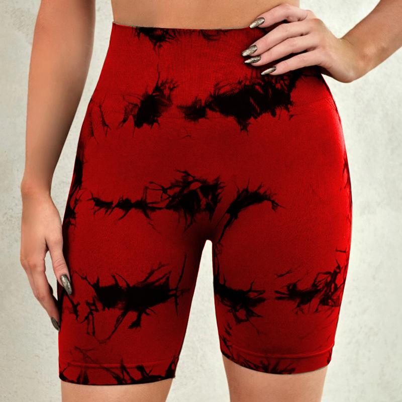 Pantalones cortos de yoga Amazon transfronterizos, teñidos anudados, de talla grande, de cintura alta, deportivos, para exteriores, ajustados, color melocotón, para mujer.