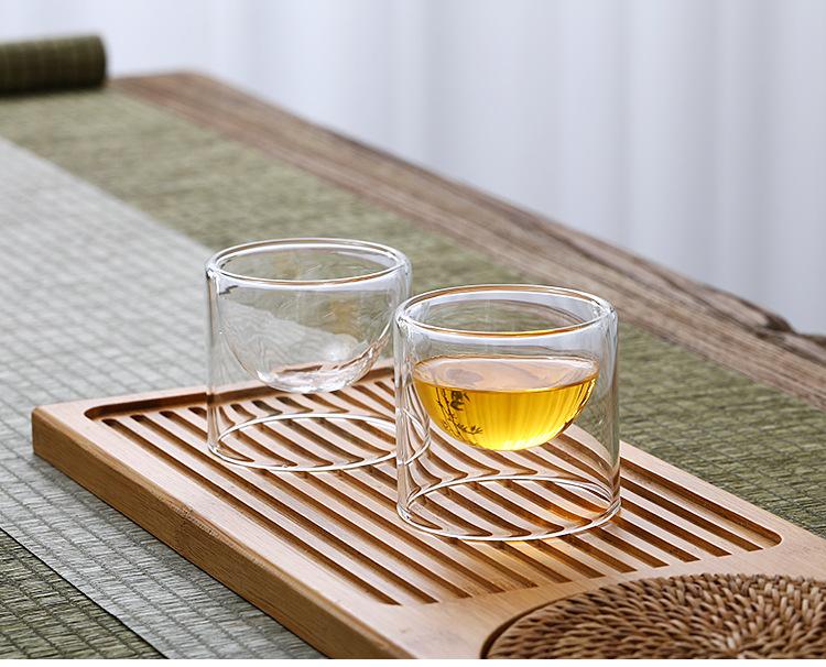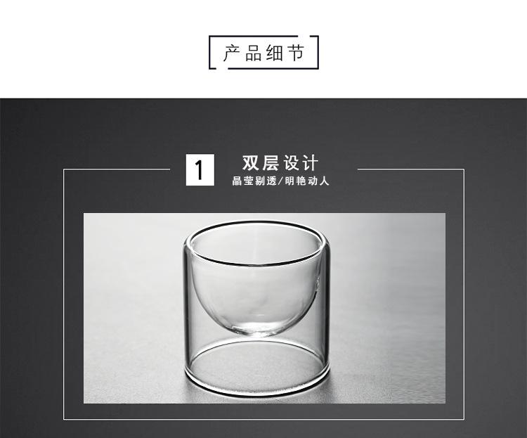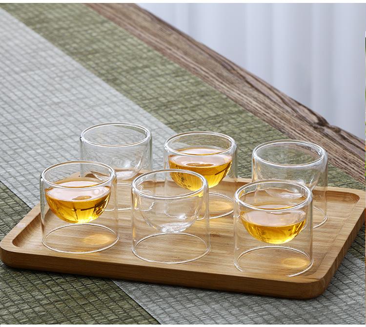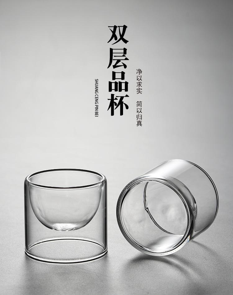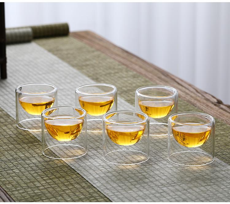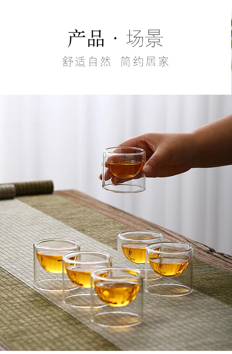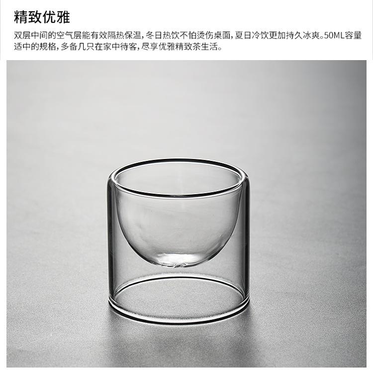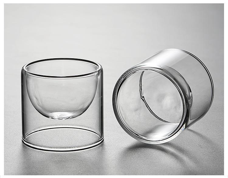 Taza de vidrio transparente de doble capa, pequeña taza de té aislada, mini taza de té creativa sin fondo, suministro de fábrica de estilo japonés