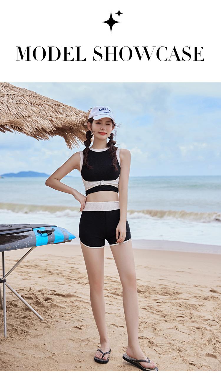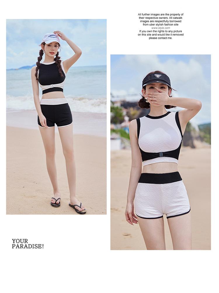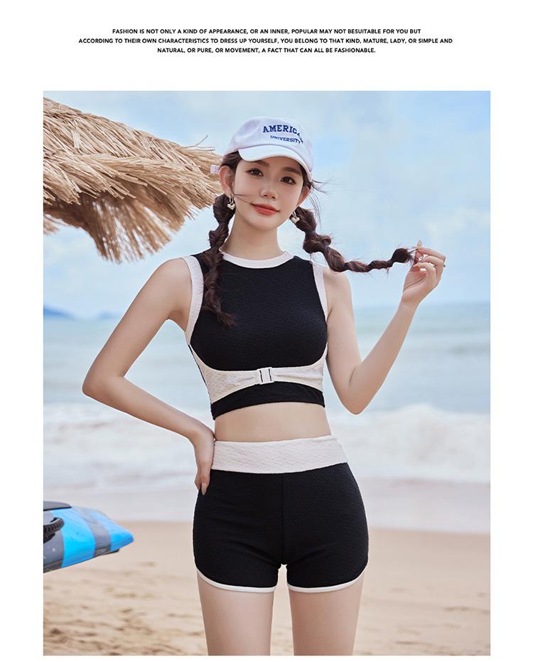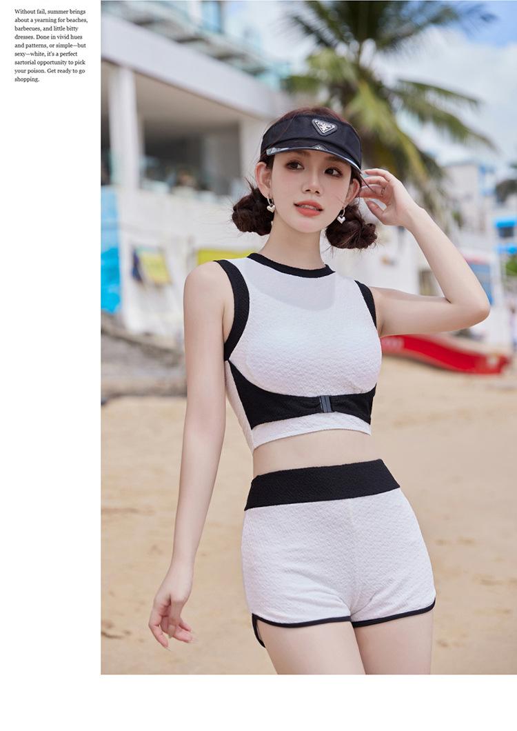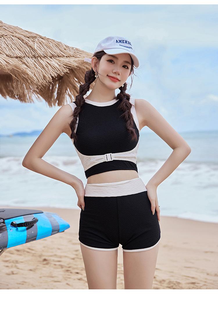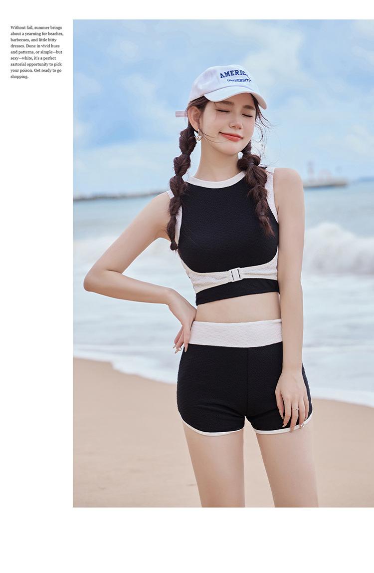Verano nuevo color de contraste hebilla frontal pecho slim-fit espalda bonita top chaleco traje de baño de mujer shorts divididos deseo puro traje de baño