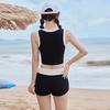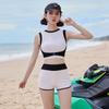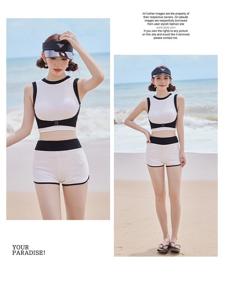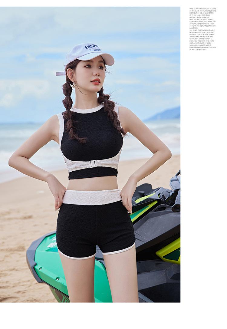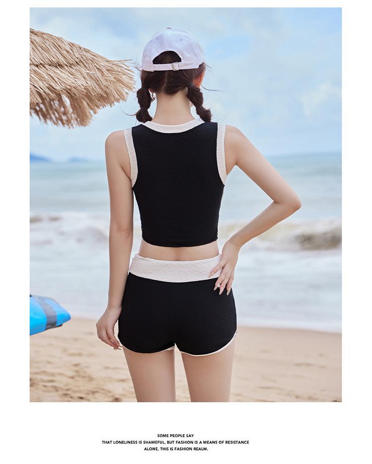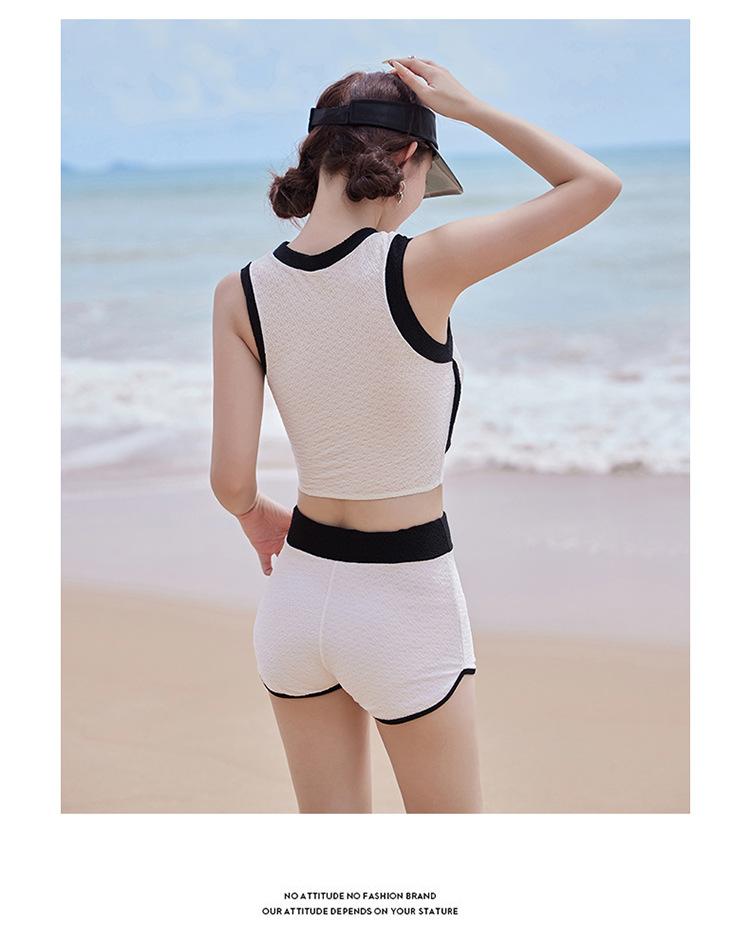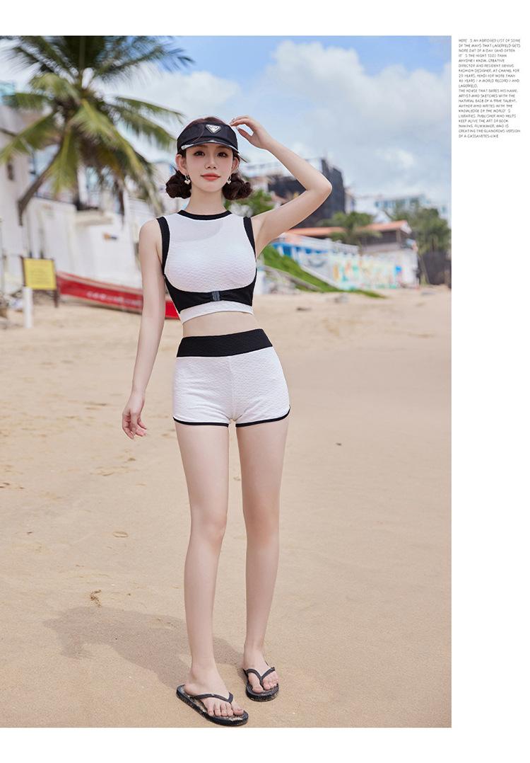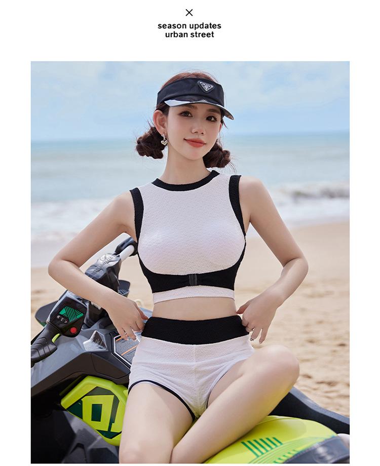 Verano nuevo color de contraste hebilla frontal pecho slim-fit espalda bonita top chaleco traje de baño de mujer shorts divididos deseo puro traje de baño