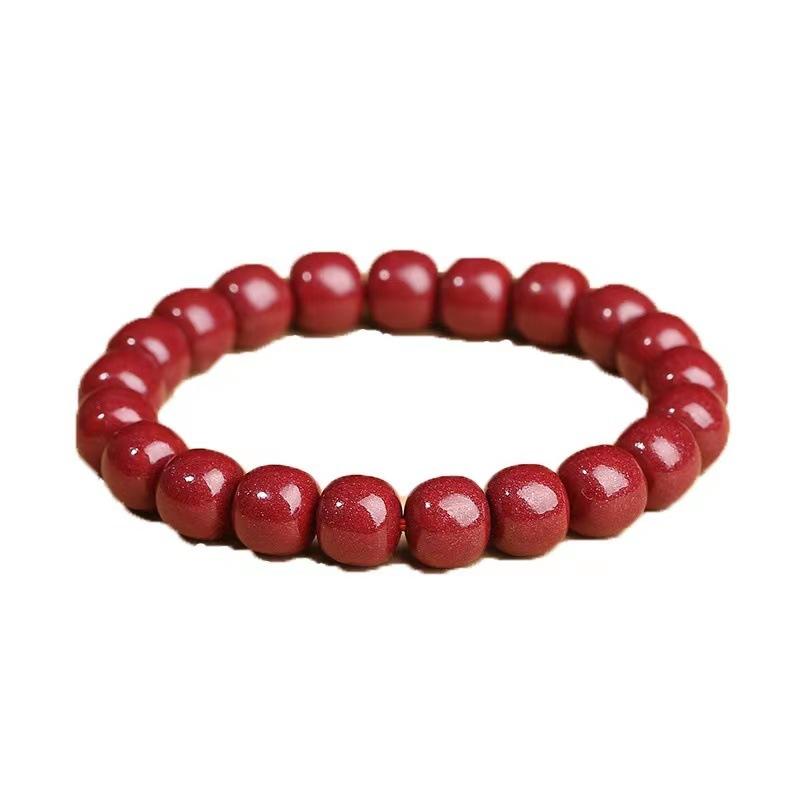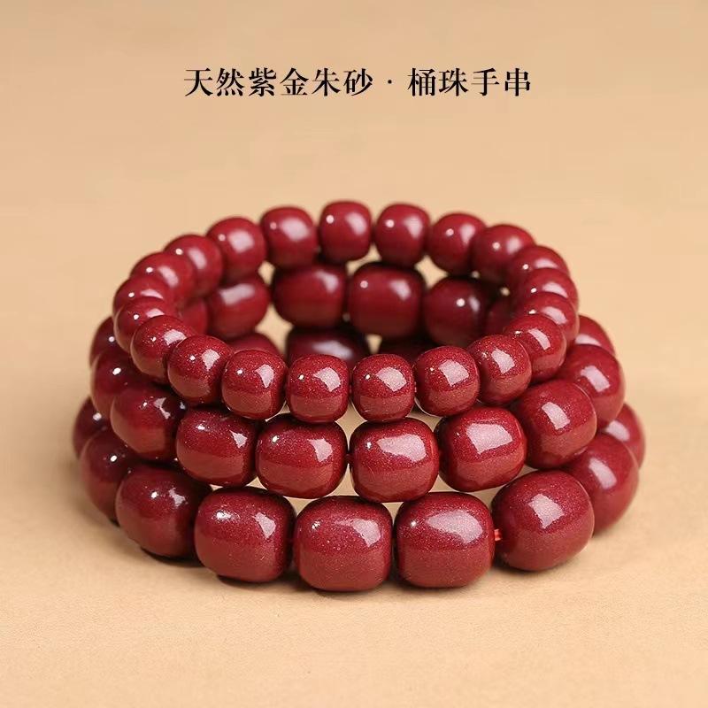 Pulsera de cuentas de barril de arena de oro púrpura y cinabrio de mineral crudo natural, cuentas antiguas, pulsera para hombre y mujer, regalo de año de nacimiento de pareja, conejo