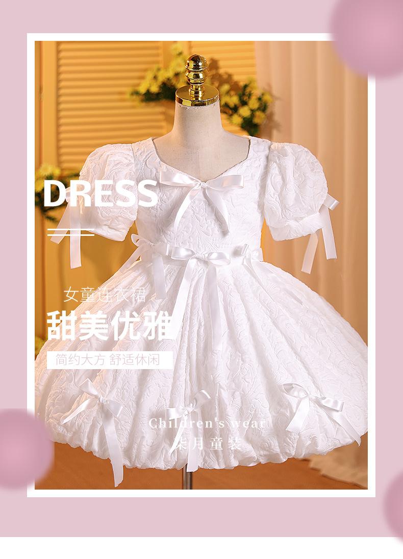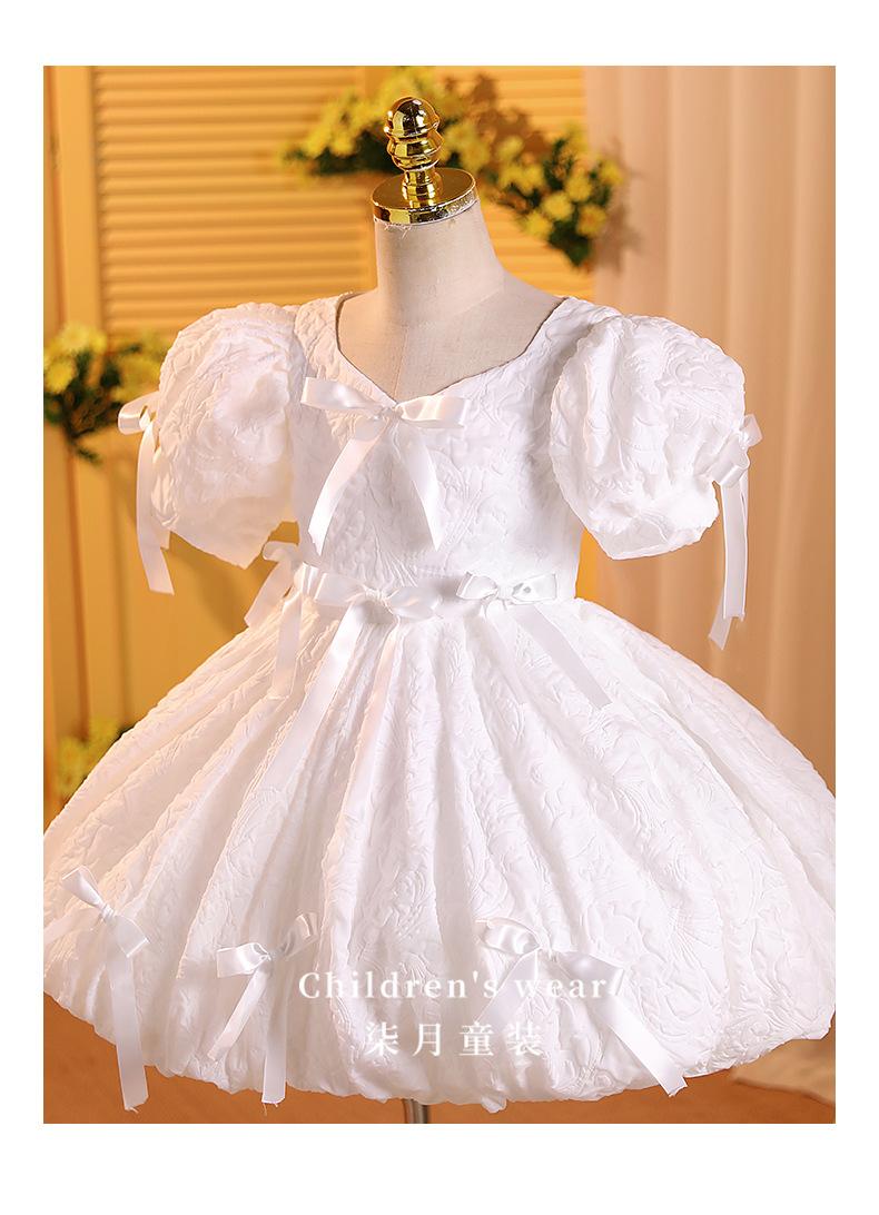 Vestido de un año para niña, vestido de princesa blanco de alta gama para niña, vestido de anfitriona de cumpleaños de niña pequeña, verano