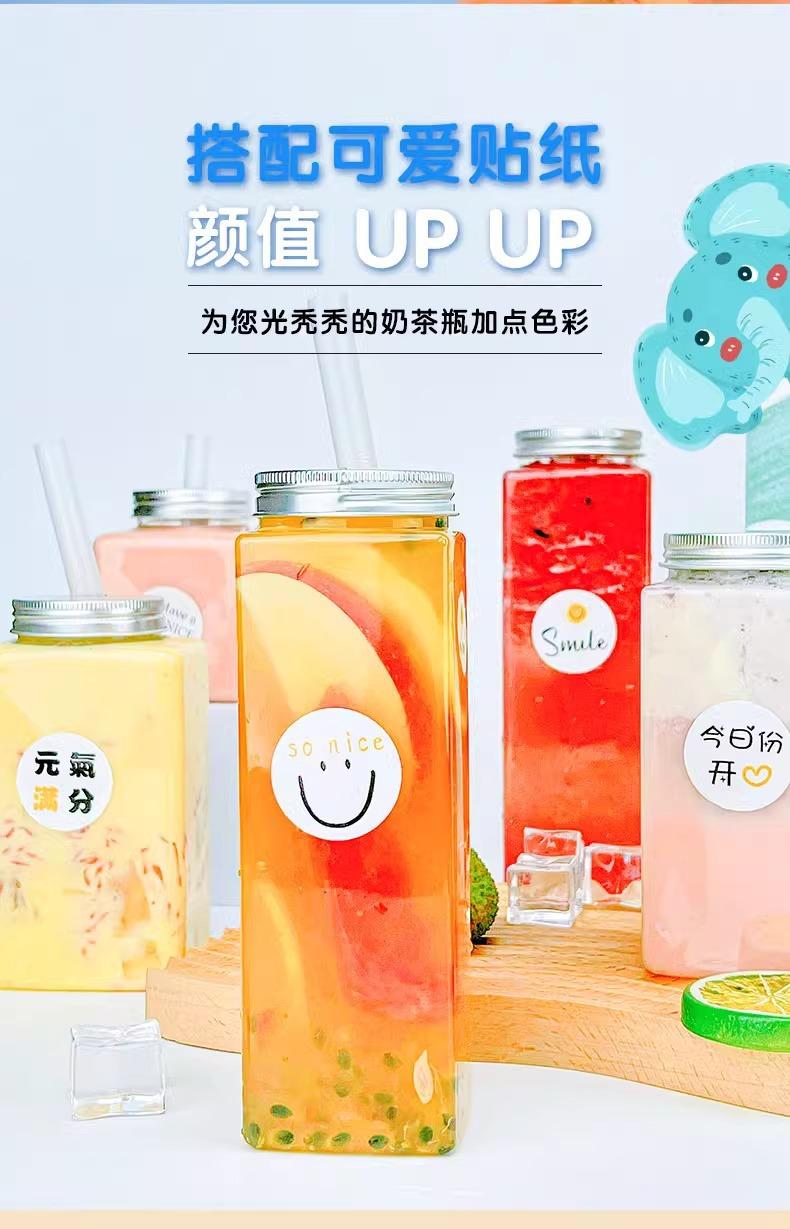 380 rectangular bottle bottle with hole cap smiley face stick straw