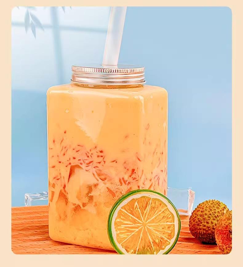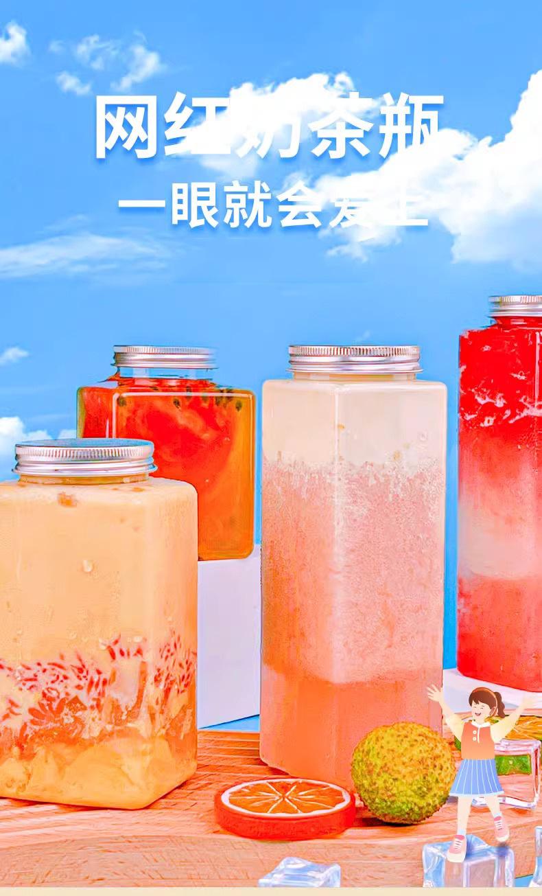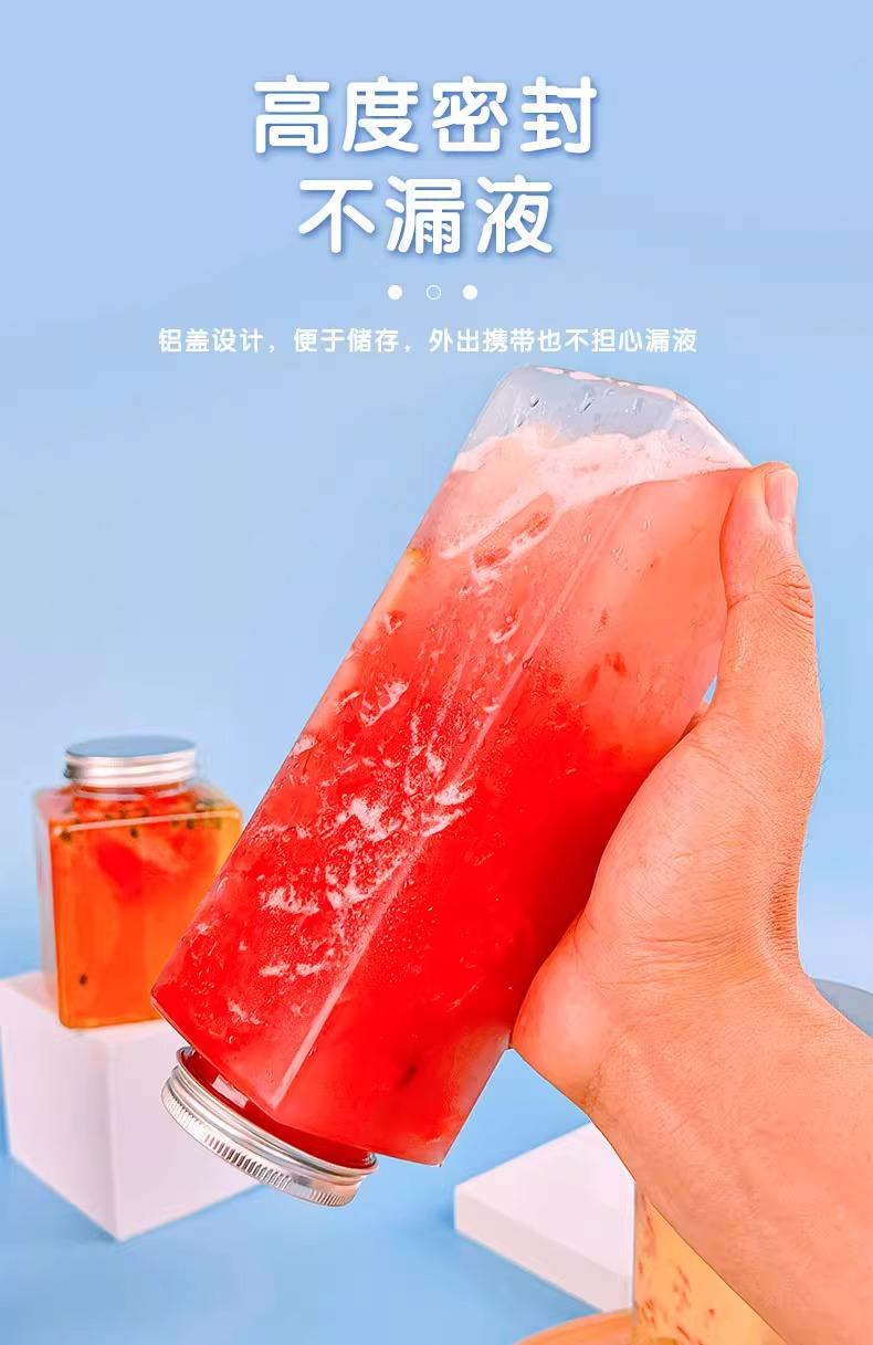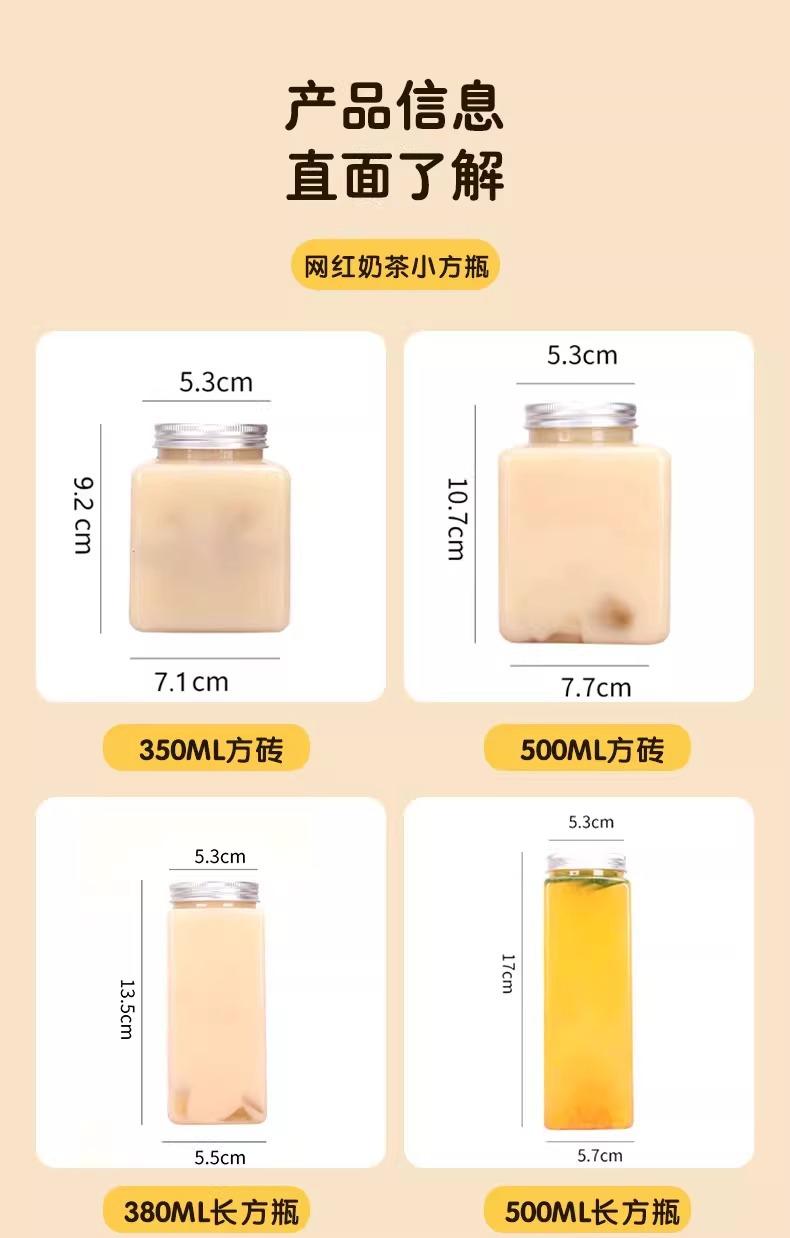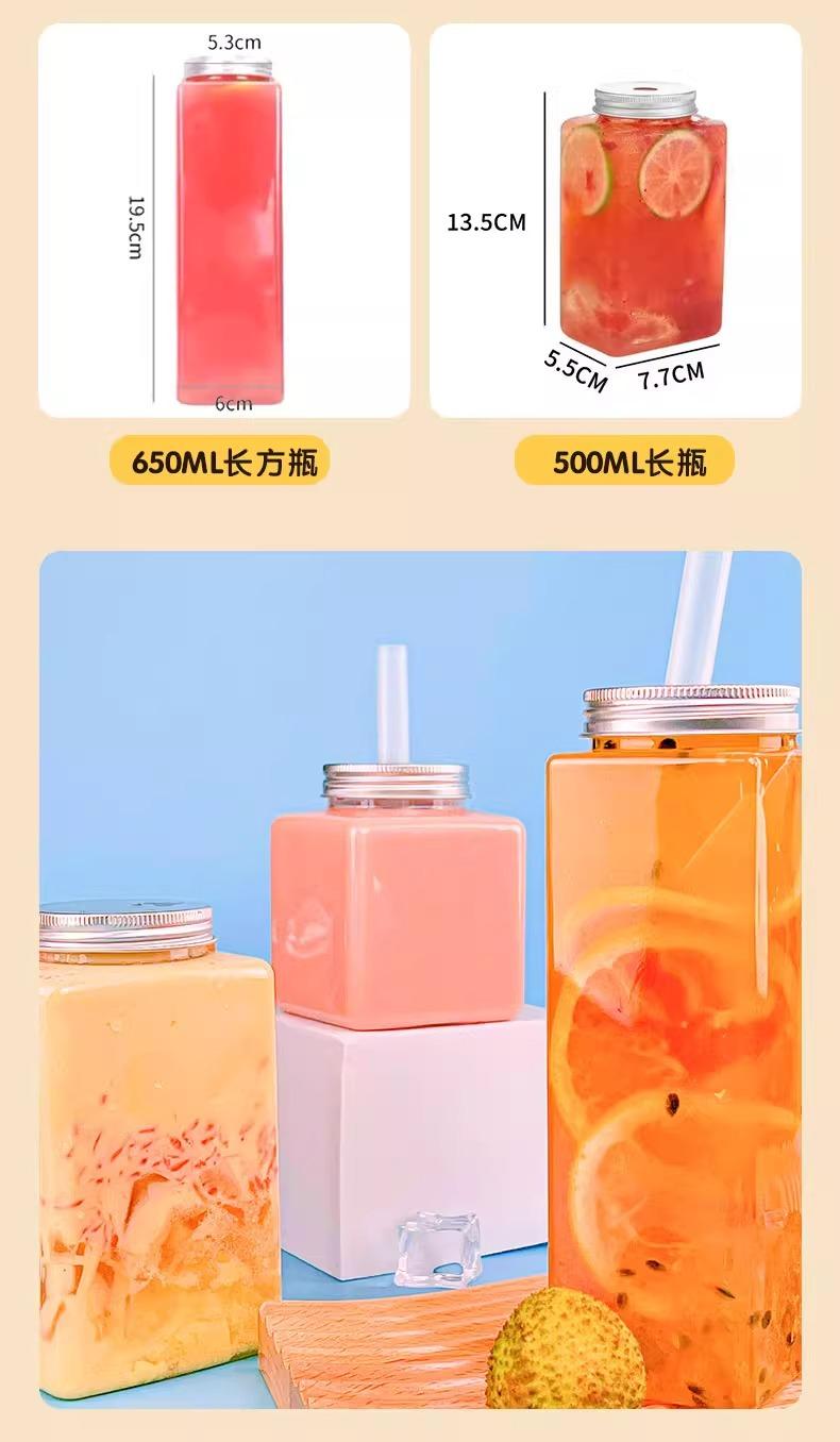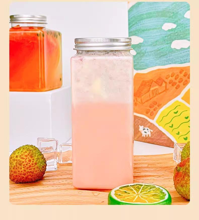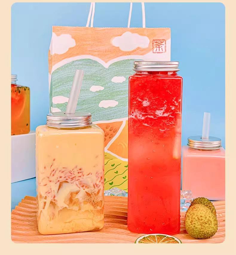 Botella de té con leche rectangular desechable, botella de plástico transparente para mascotas, creativa, de gran capacidad, botella de jugo portátil de 500 ml