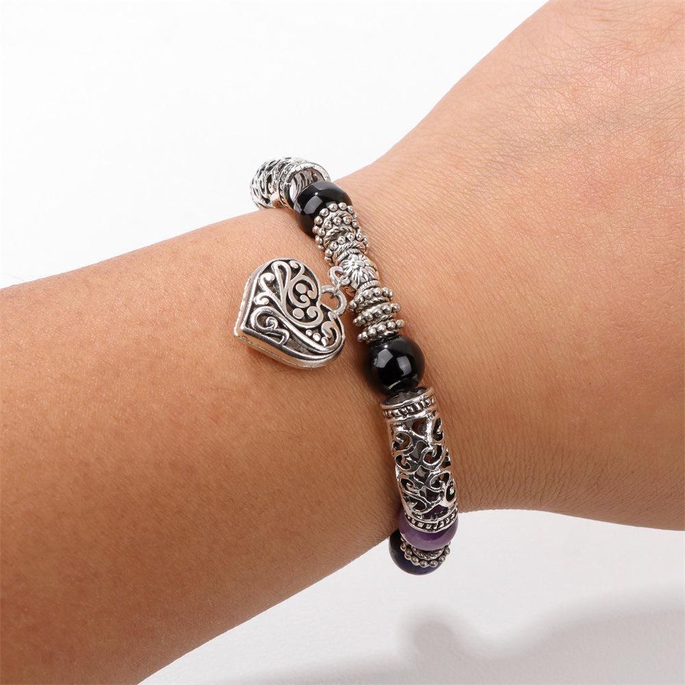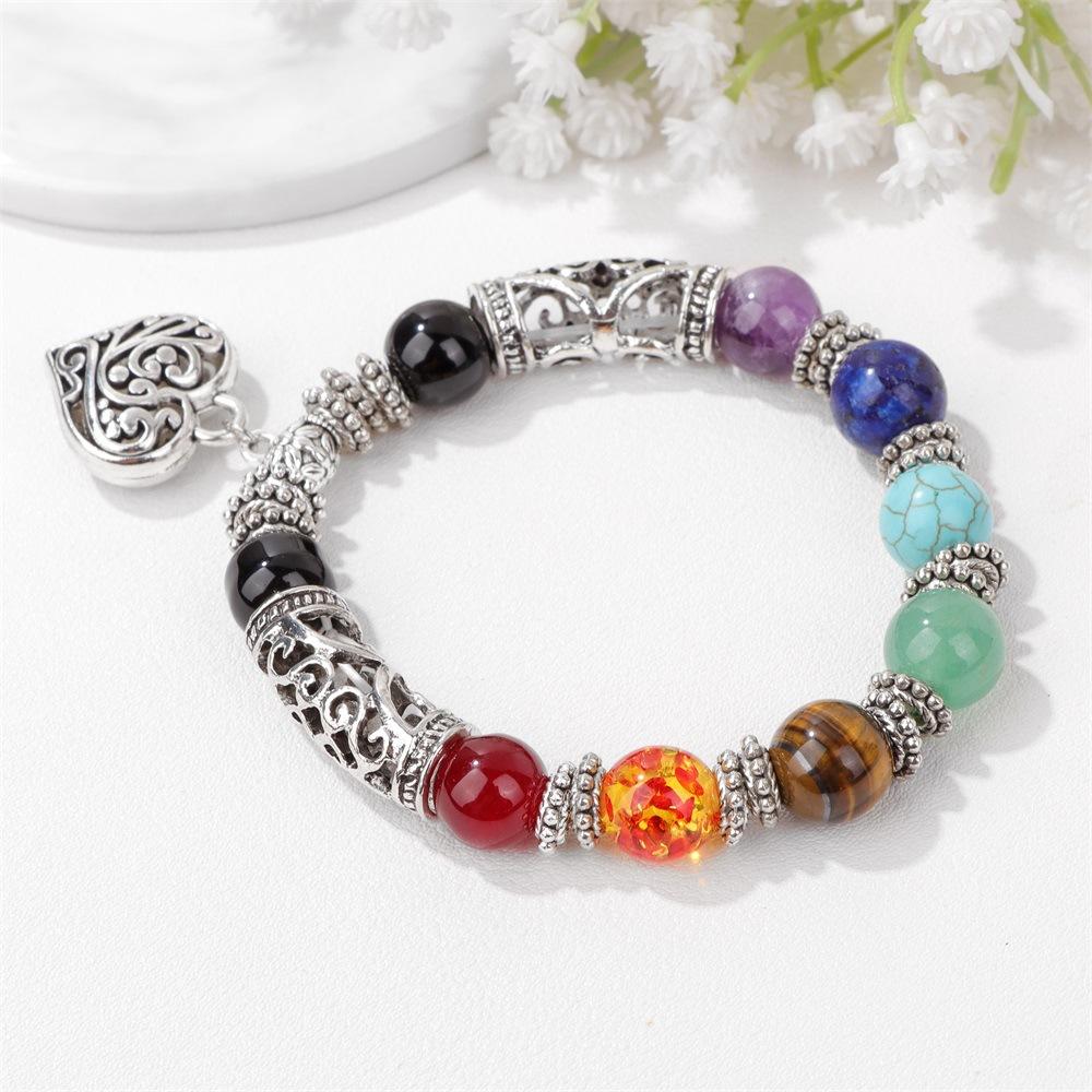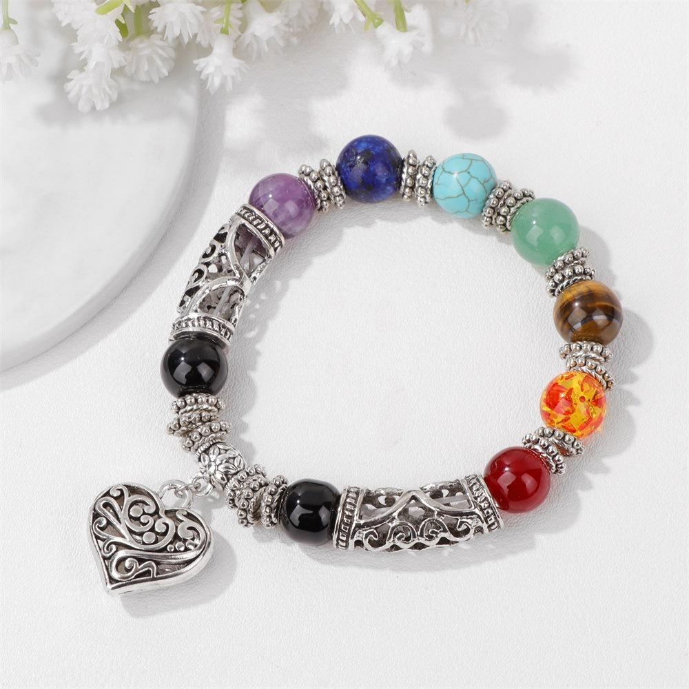 Nombre del producto: Pulsera de cuentas de piedra de 10 mm con colgante de amor hueco