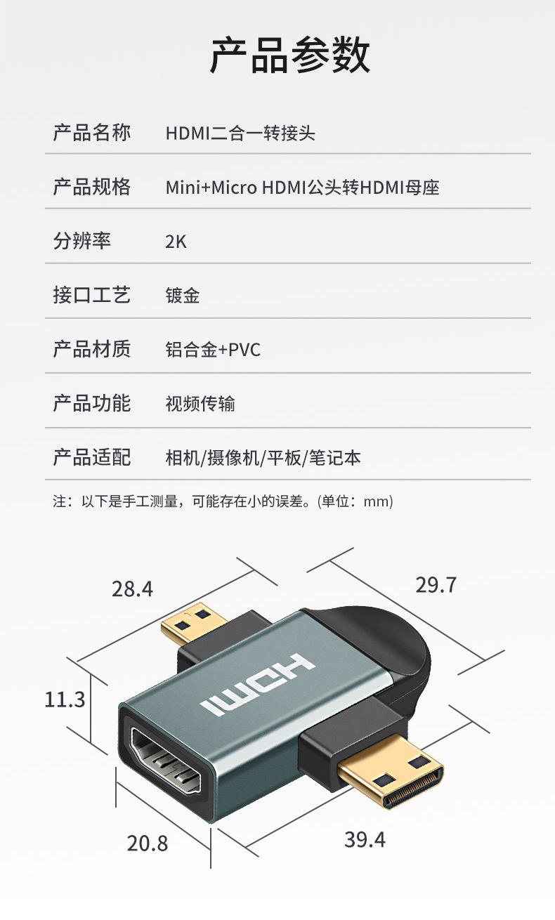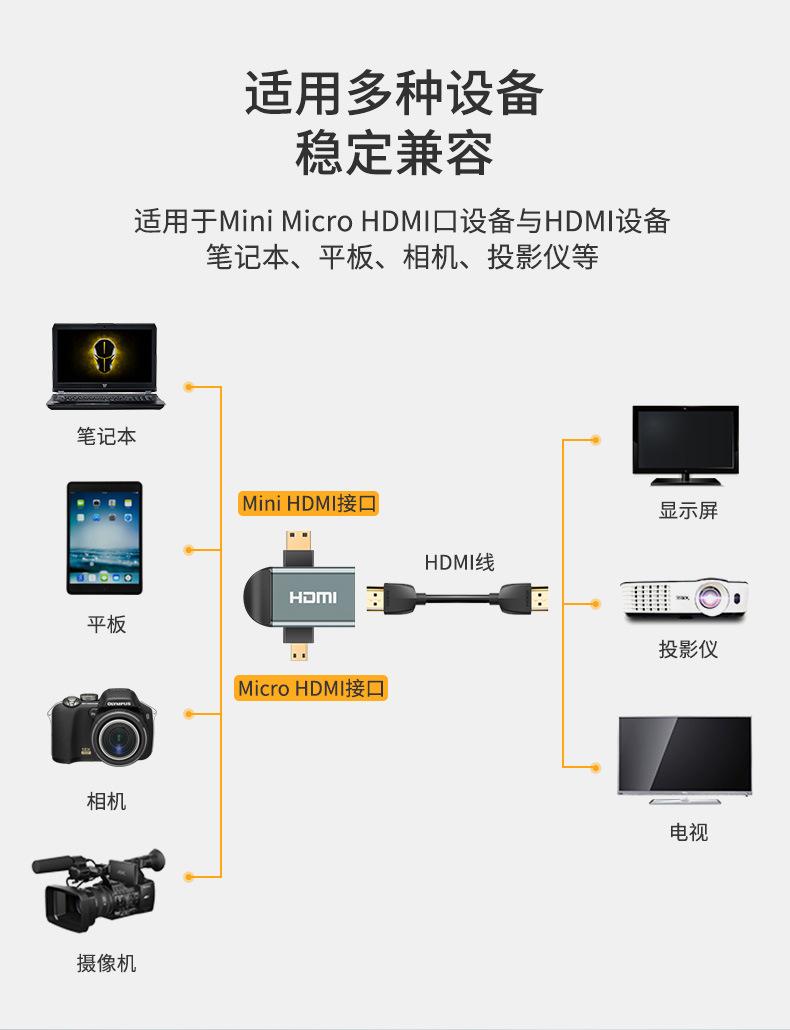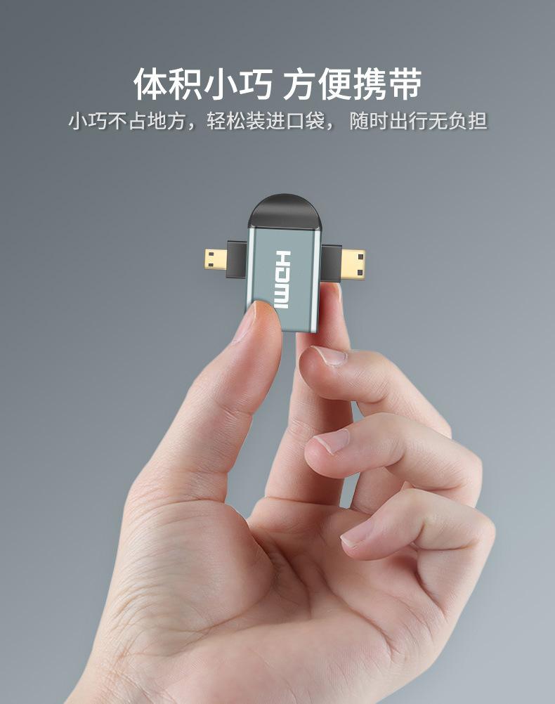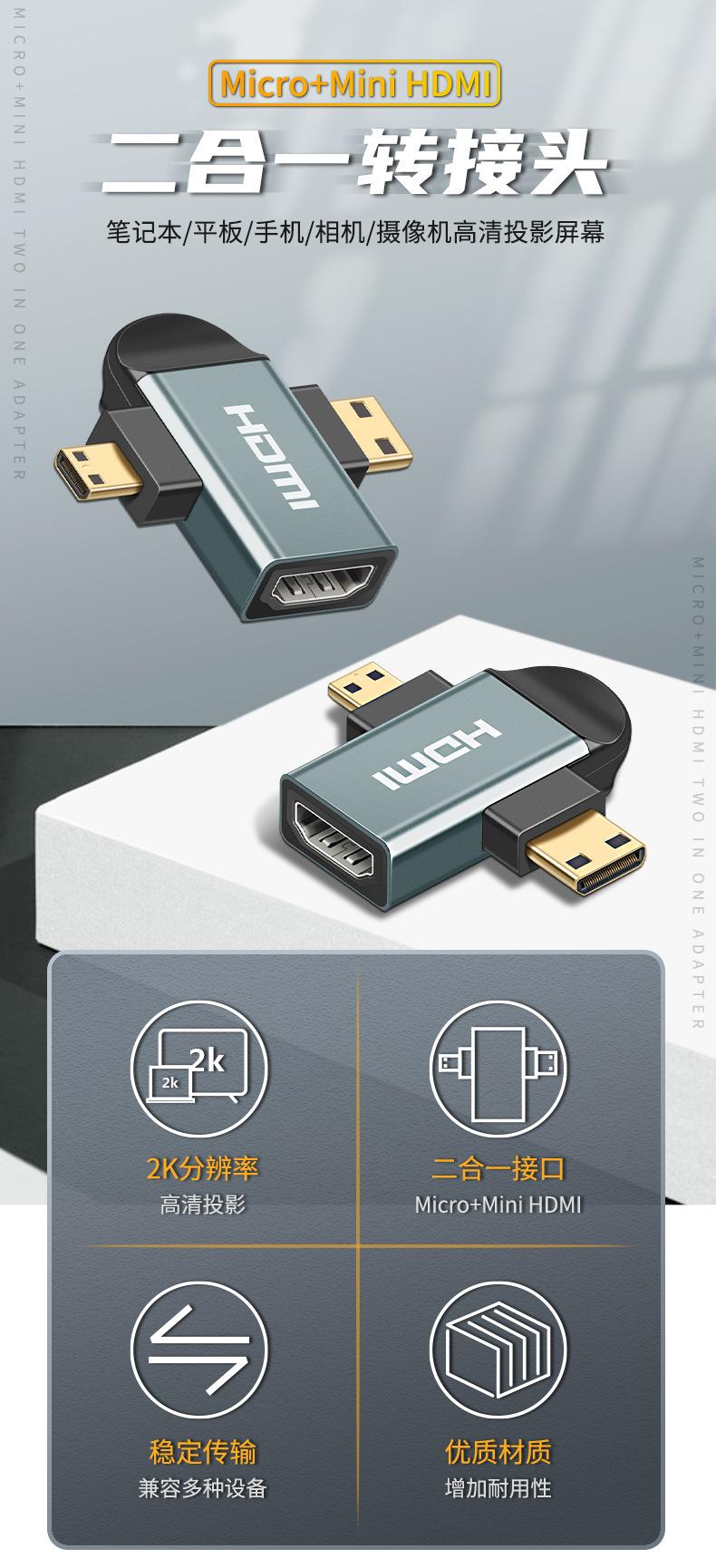 Base hembra HDMI a mini HDMI macho micro adaptador carcasa de aleación de aluminio adaptador HDMI dos en uno
