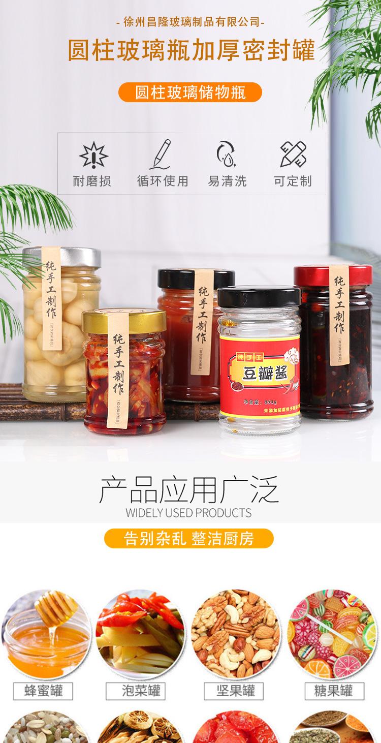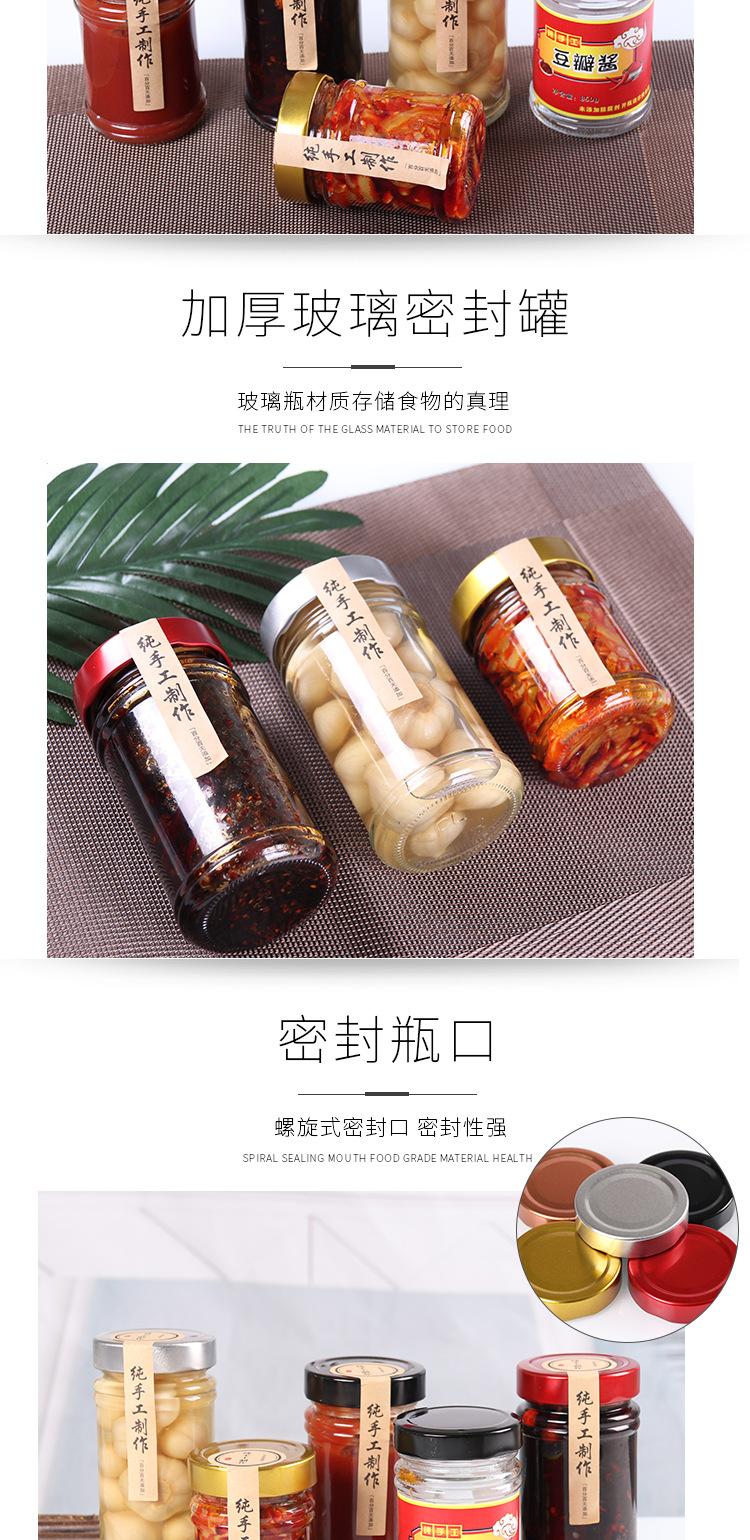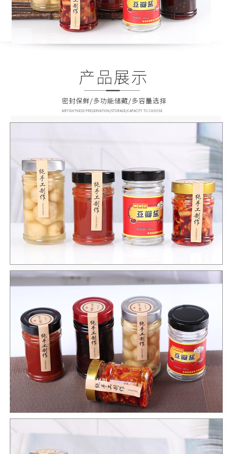 Frasco de mermelada de nido de pájaro de miel de alta tapa, frasco para salsa de chile, envase para alimentos, encurtidos, botella de vidrio, botella enlatada sellada