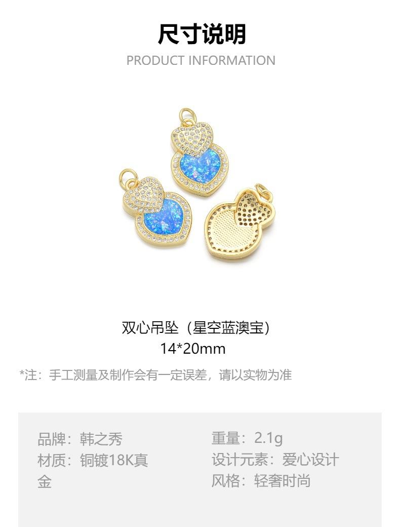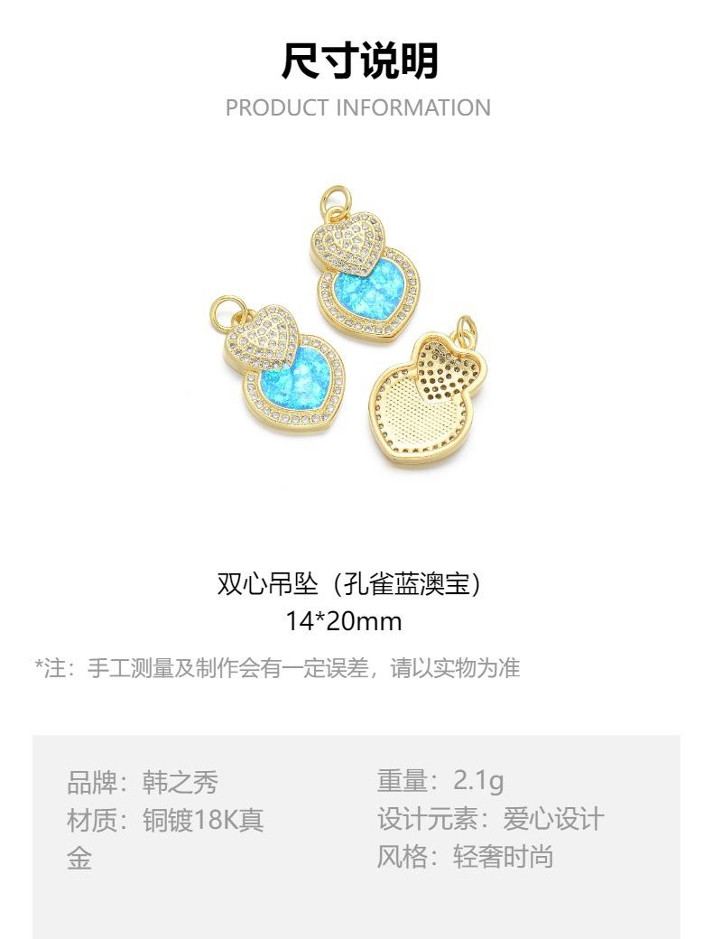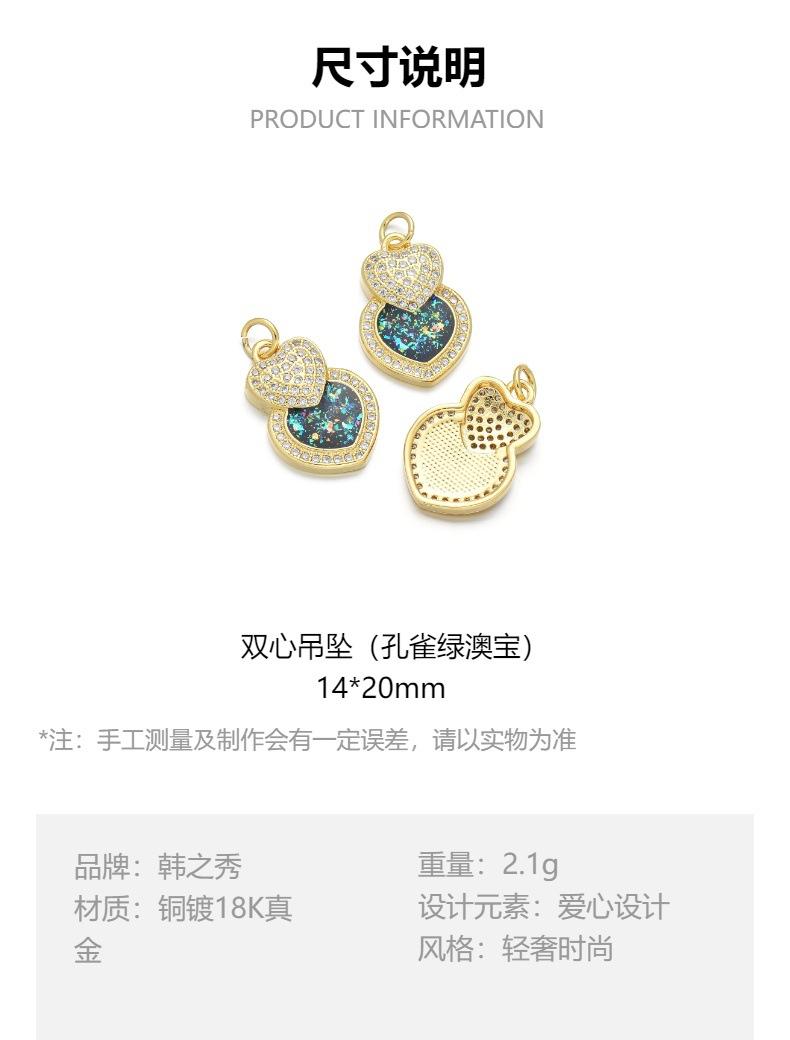 Double heart pendant (peacock green opal), Double heart pendant (peacock blue opal), Double heart pendant (sta...