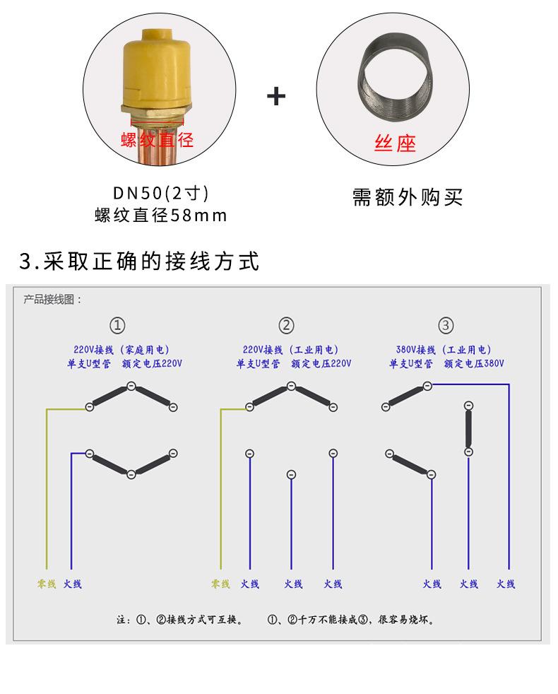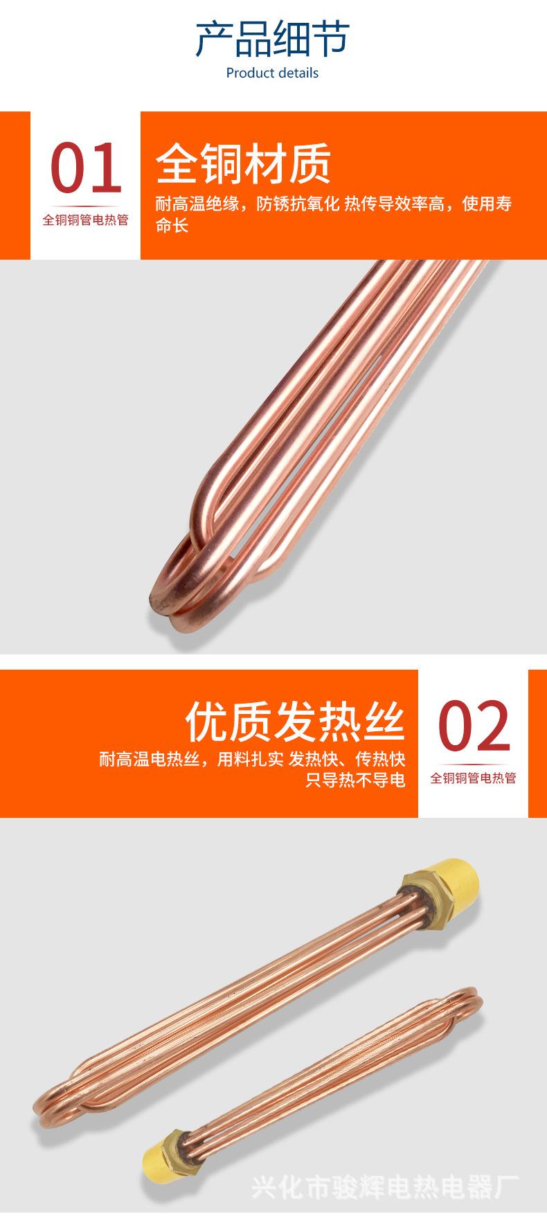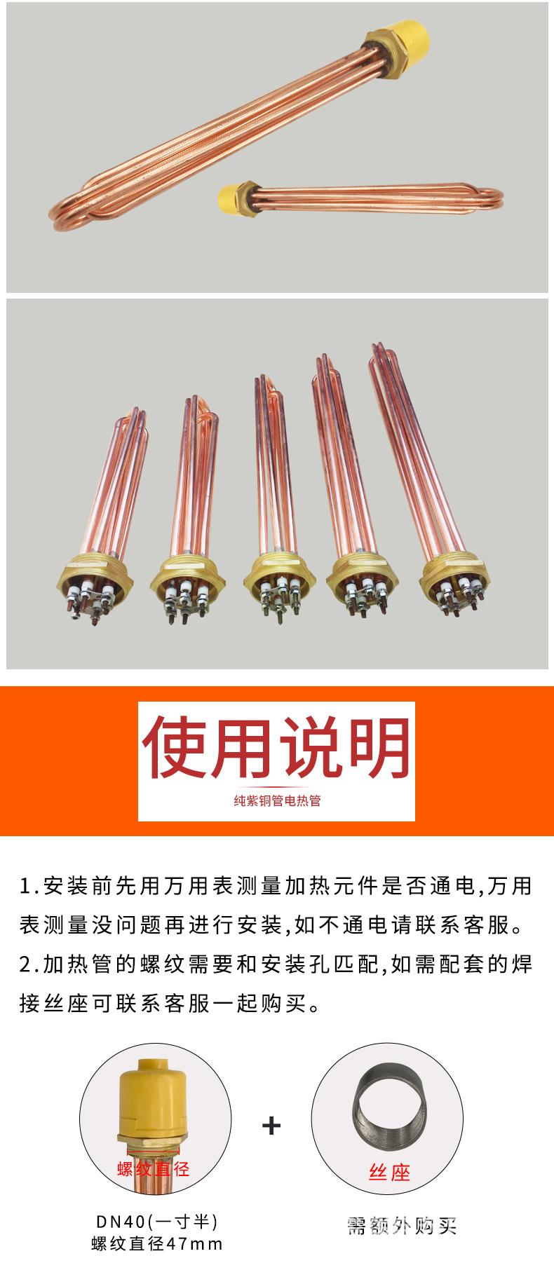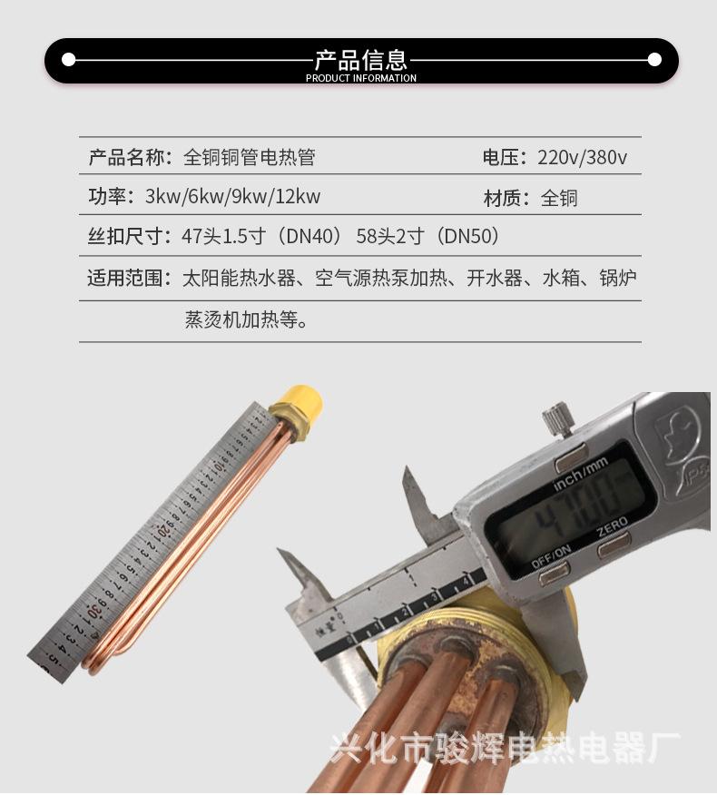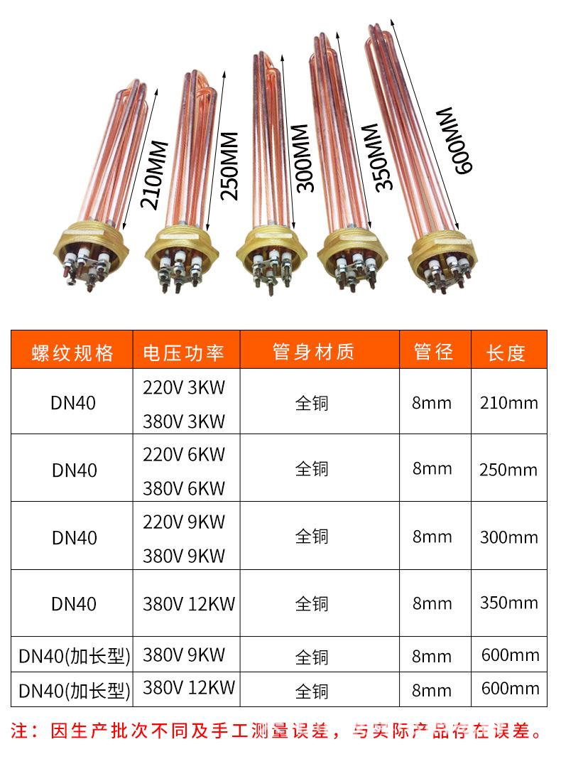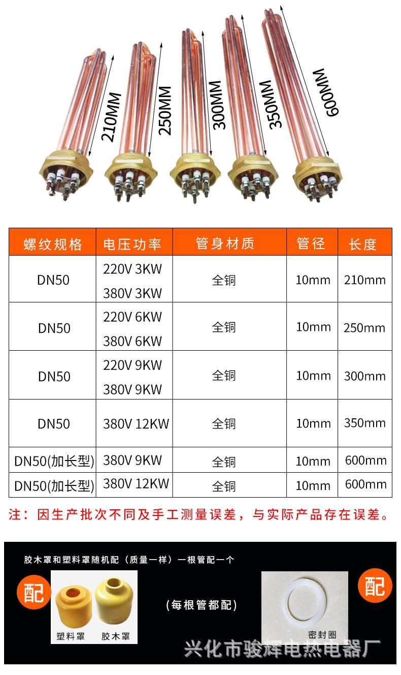 Nombre del producto: Tubo de calentamiento eléctrico de alta potencia con cabezal hexagonal de cobre para tanque de agua de ingeniería/Tubo de calentamiento con rosca 58 varilla calefactora 3KW6KW9KW12KW