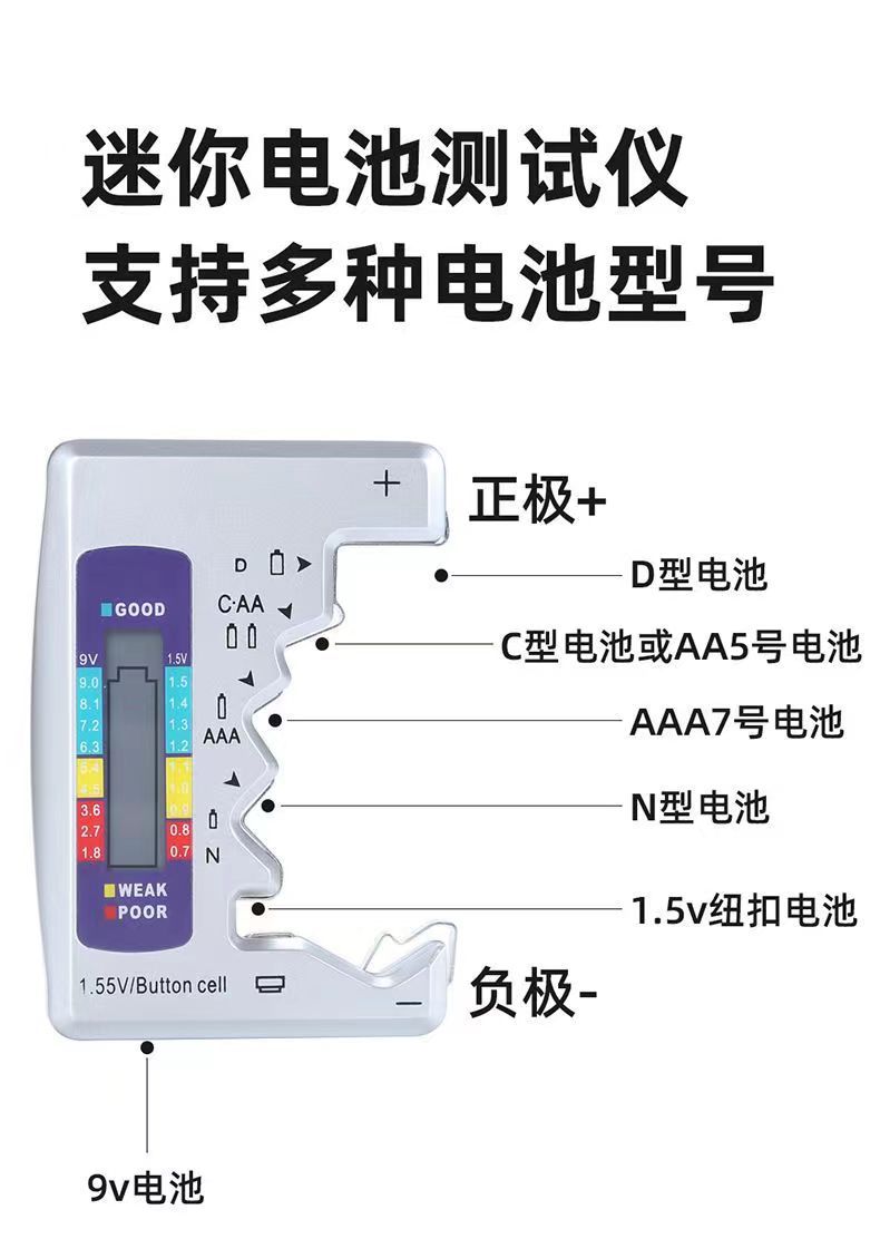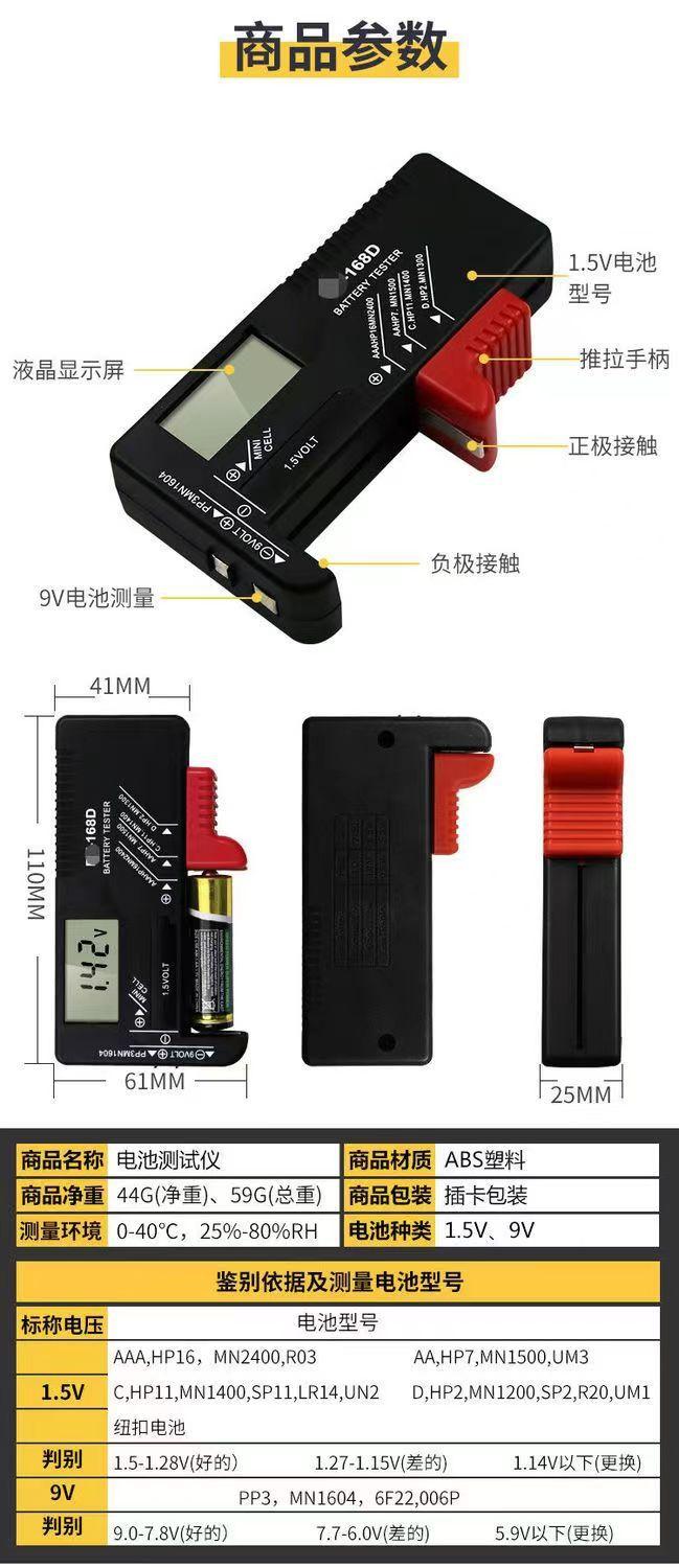 Comprobador de potencia BT168 con pantalla LED y pantalla digital, comprobador de batería 18650 (Mingqi a granel)