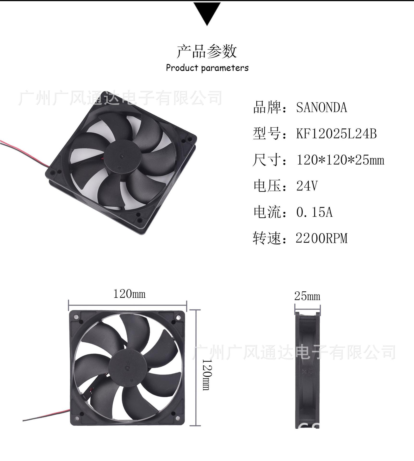 Venta al por Mayor de Fábrica Kf12025L24B 12025 24V 0.15A Ventilador de Doble Bola de Gran Volumen de Aire