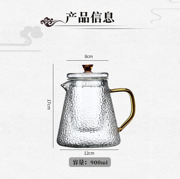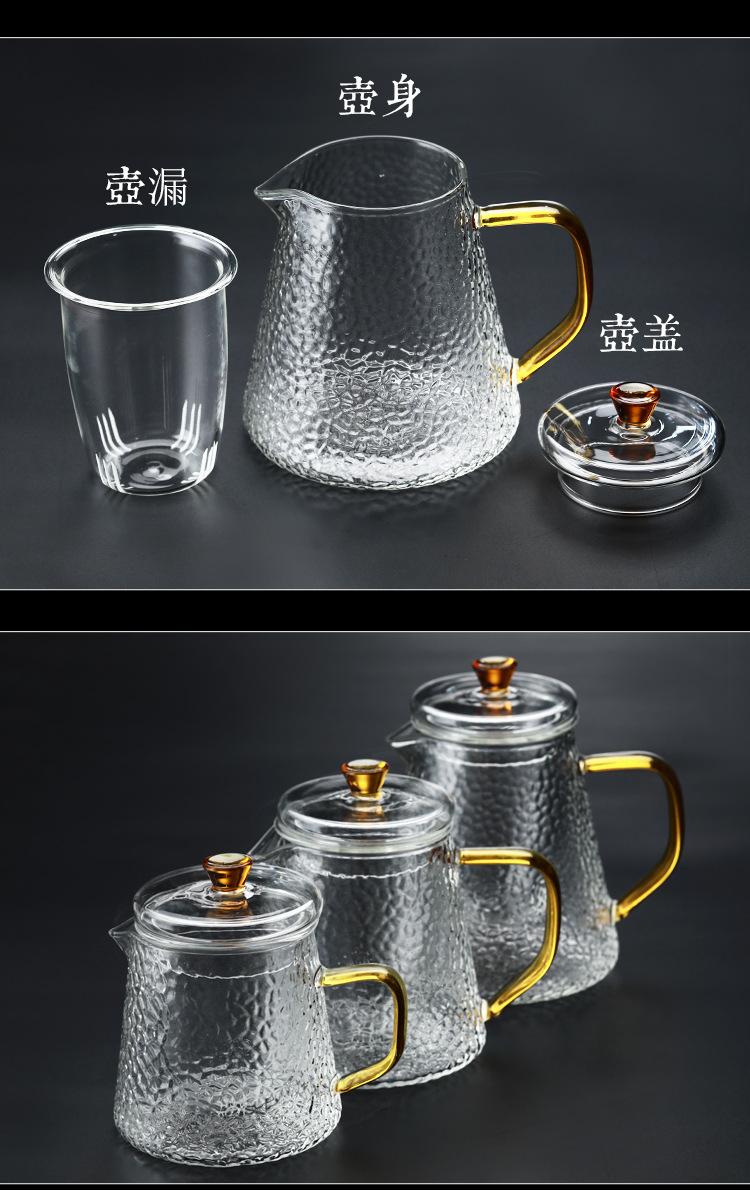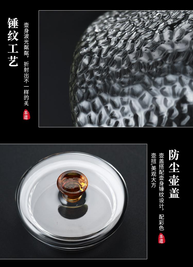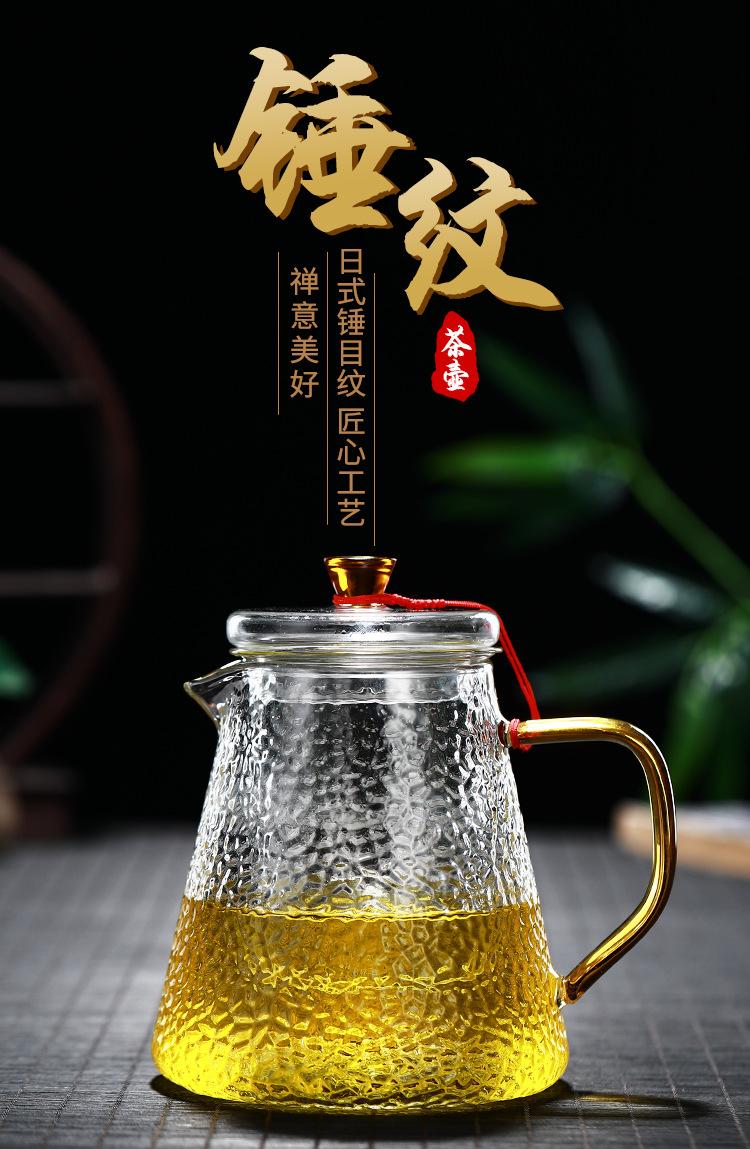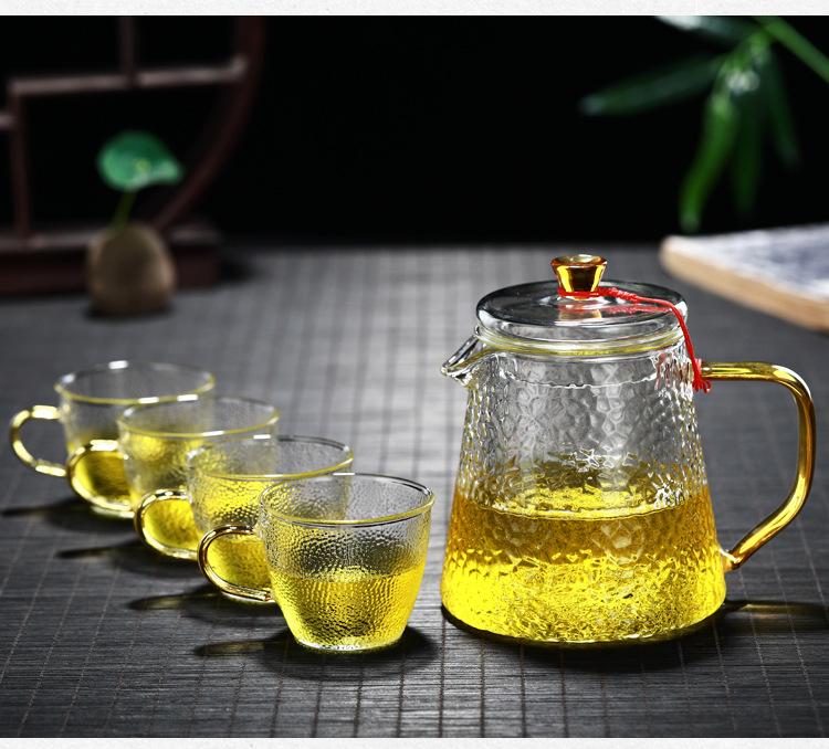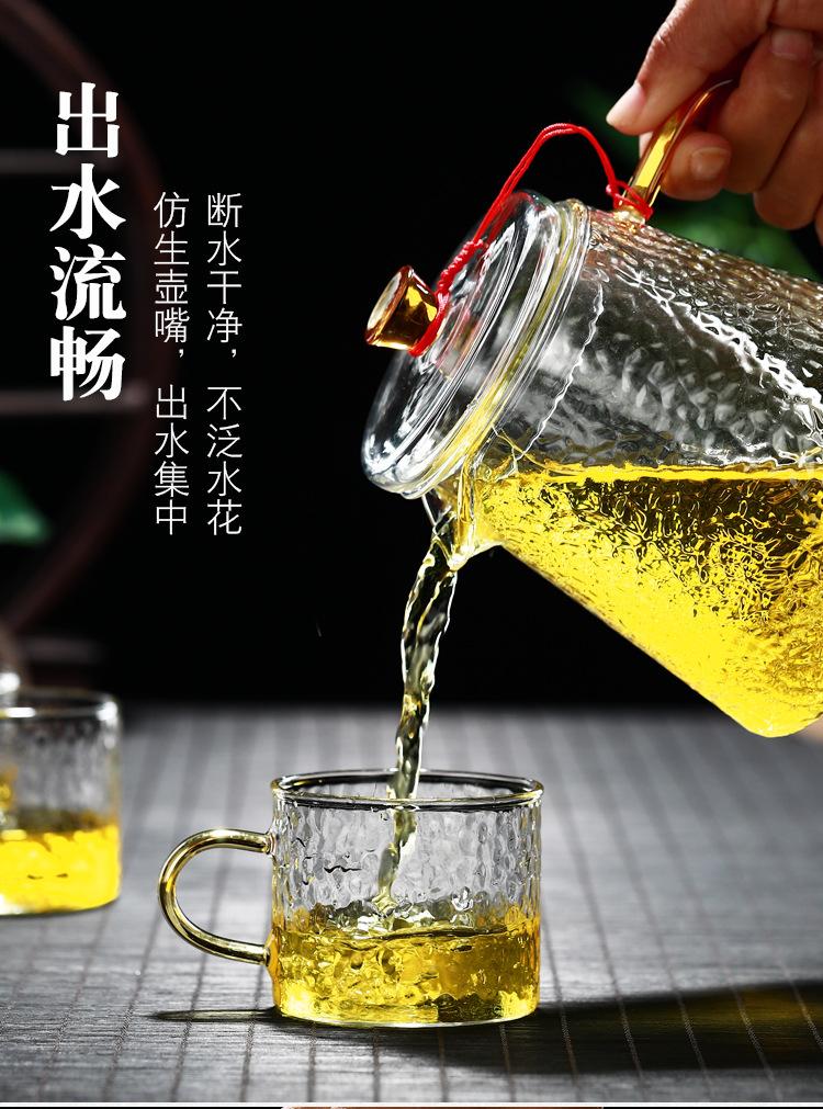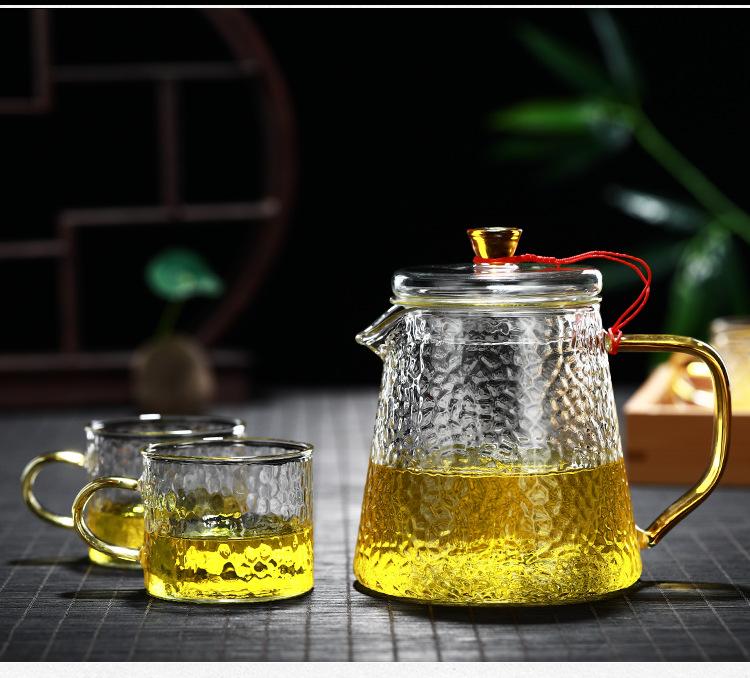 Tetera de vidrio martillado con filtro, resistente a altas temperaturas, engrosada, pequeña tetera individual, té de kung fu, té de flores hirviendo, juego de té rojo adecuado para el hogar