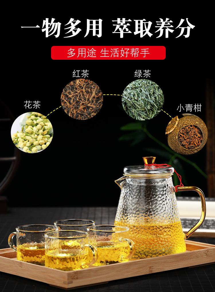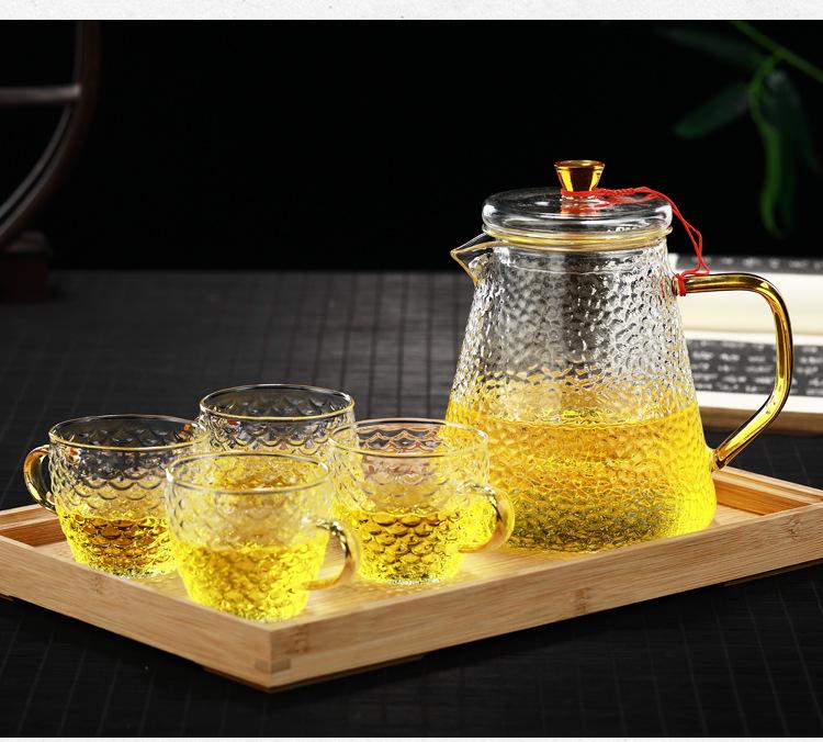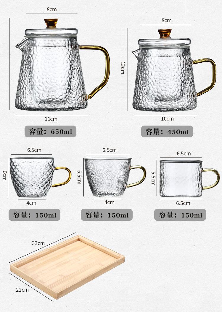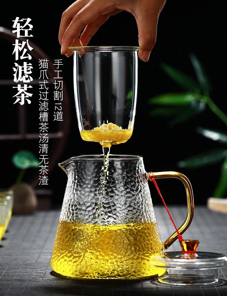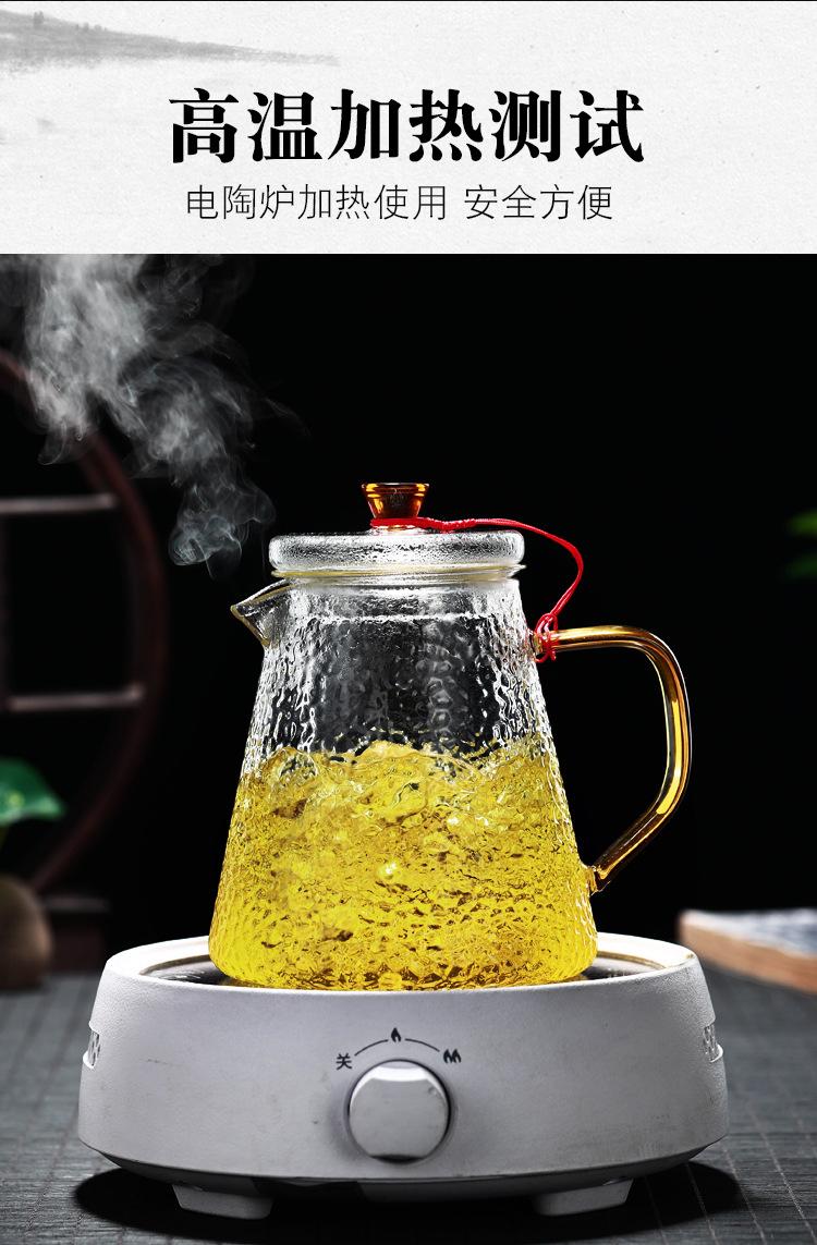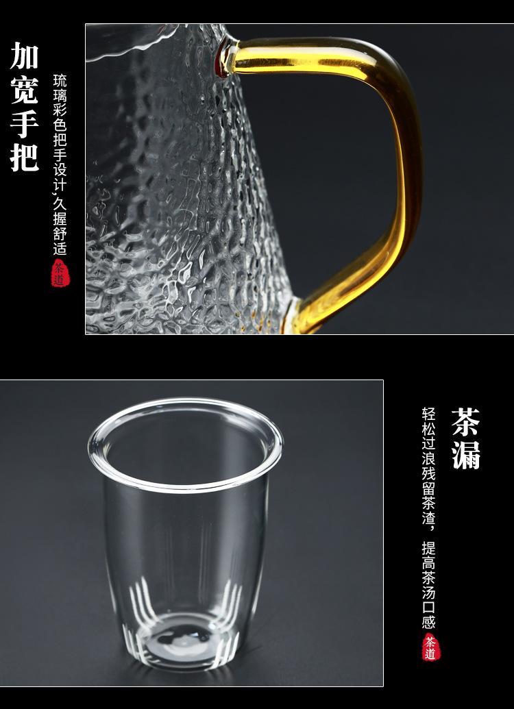 Tetera de vidrio martillado con filtro, resistente a altas temperaturas, engrosada, pequeña tetera individual, té de kung fu, té de flores hirviendo, juego de té rojo adecuado para el hogar