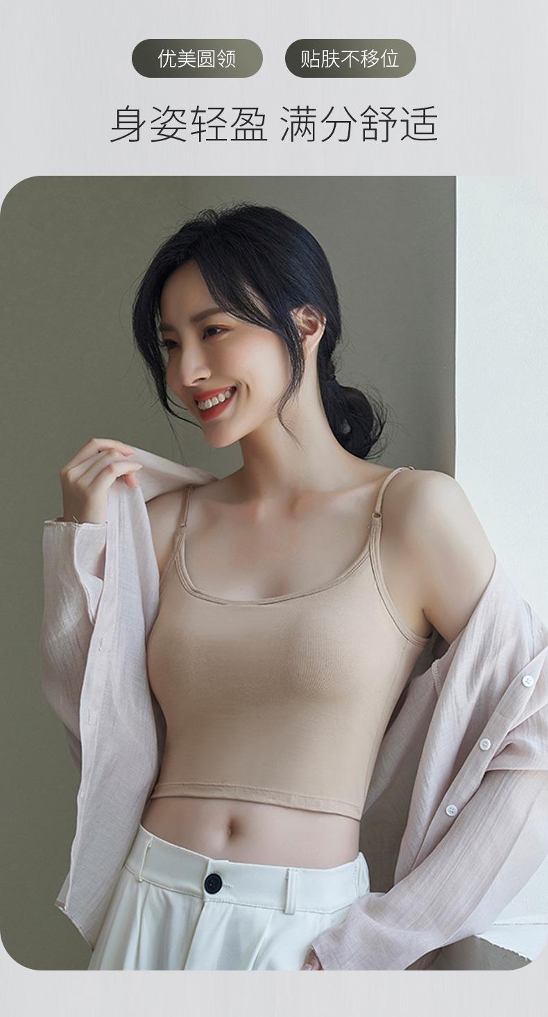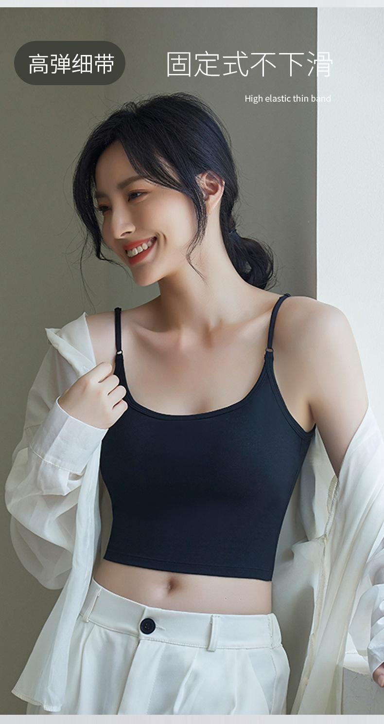 Algodón de fibra larga de Xinjiang tirante fino espalda de belleza Chaleco Camiseta interior de mujer con almohadilla para el pecho sujetador de tirantes top de tubo pecho envuelto