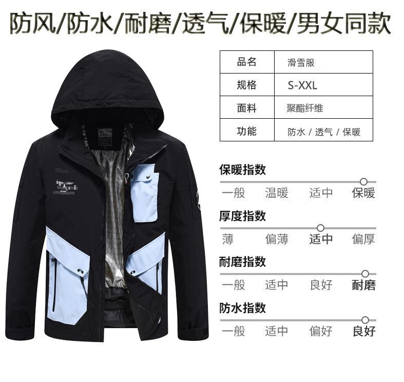 Amantes de la ropa de esquí de comercio electrónico transfronterizo directo de fábrica invierno a prueba de viento Impermeable cálido ropa de nieve soporte una generación de cabello