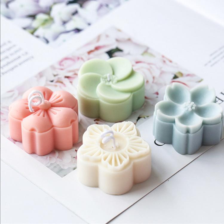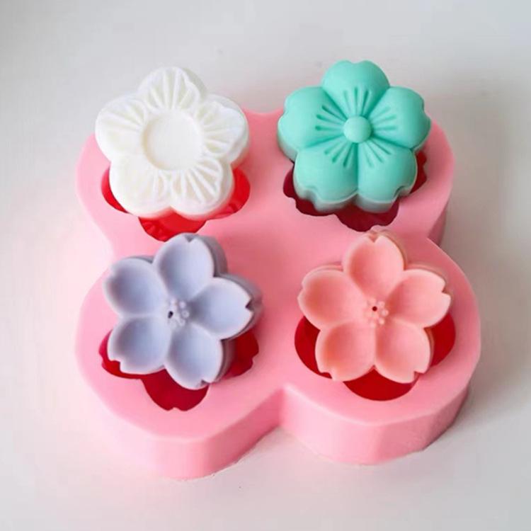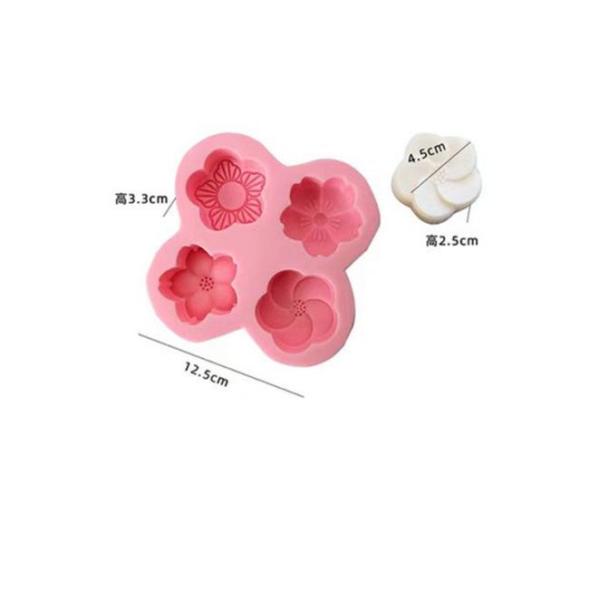 Molde de silicona para hornear pasteles de fondant de 4 flores, molde para hacer patrones de helado, pastel de luna, molde para velas de jabón hecho a mano