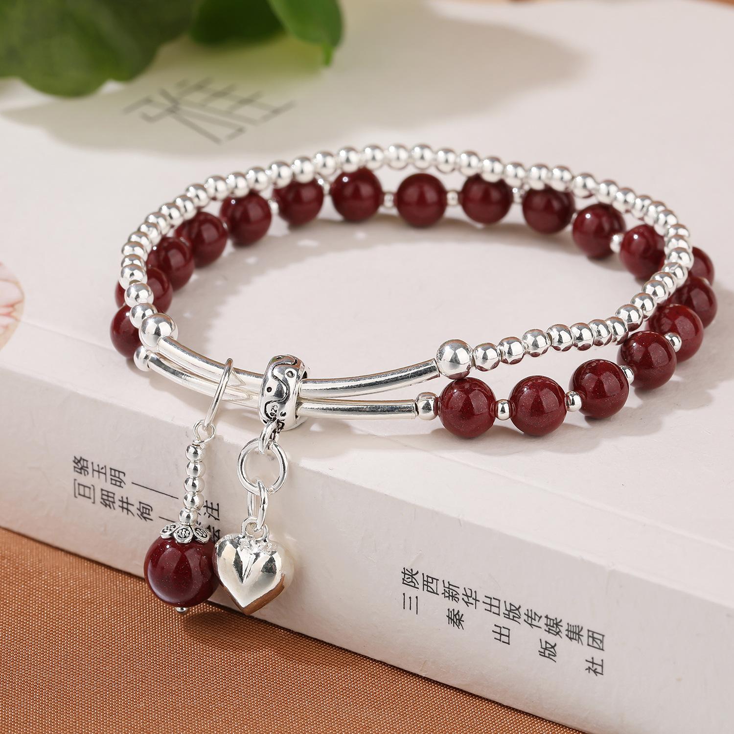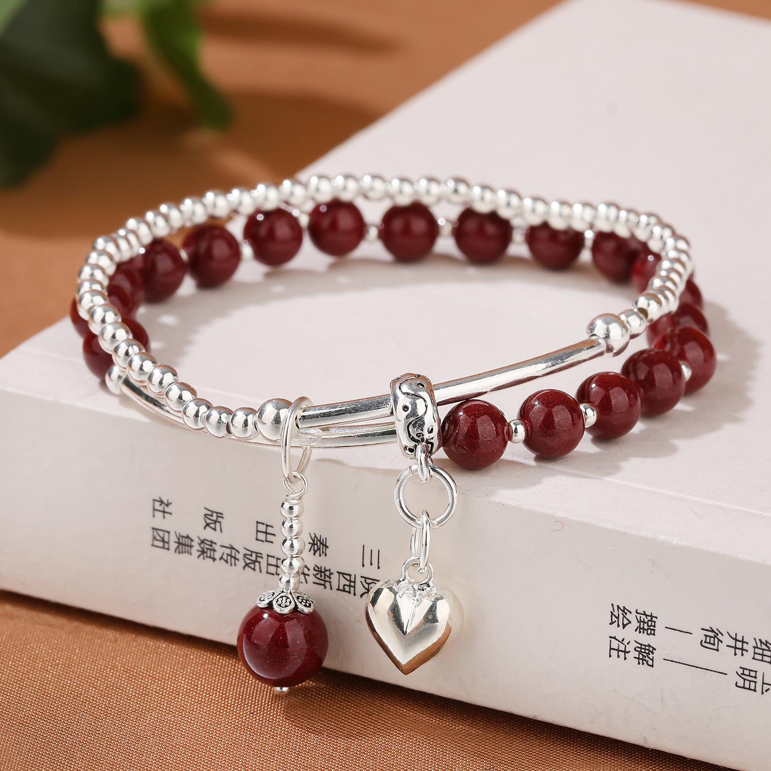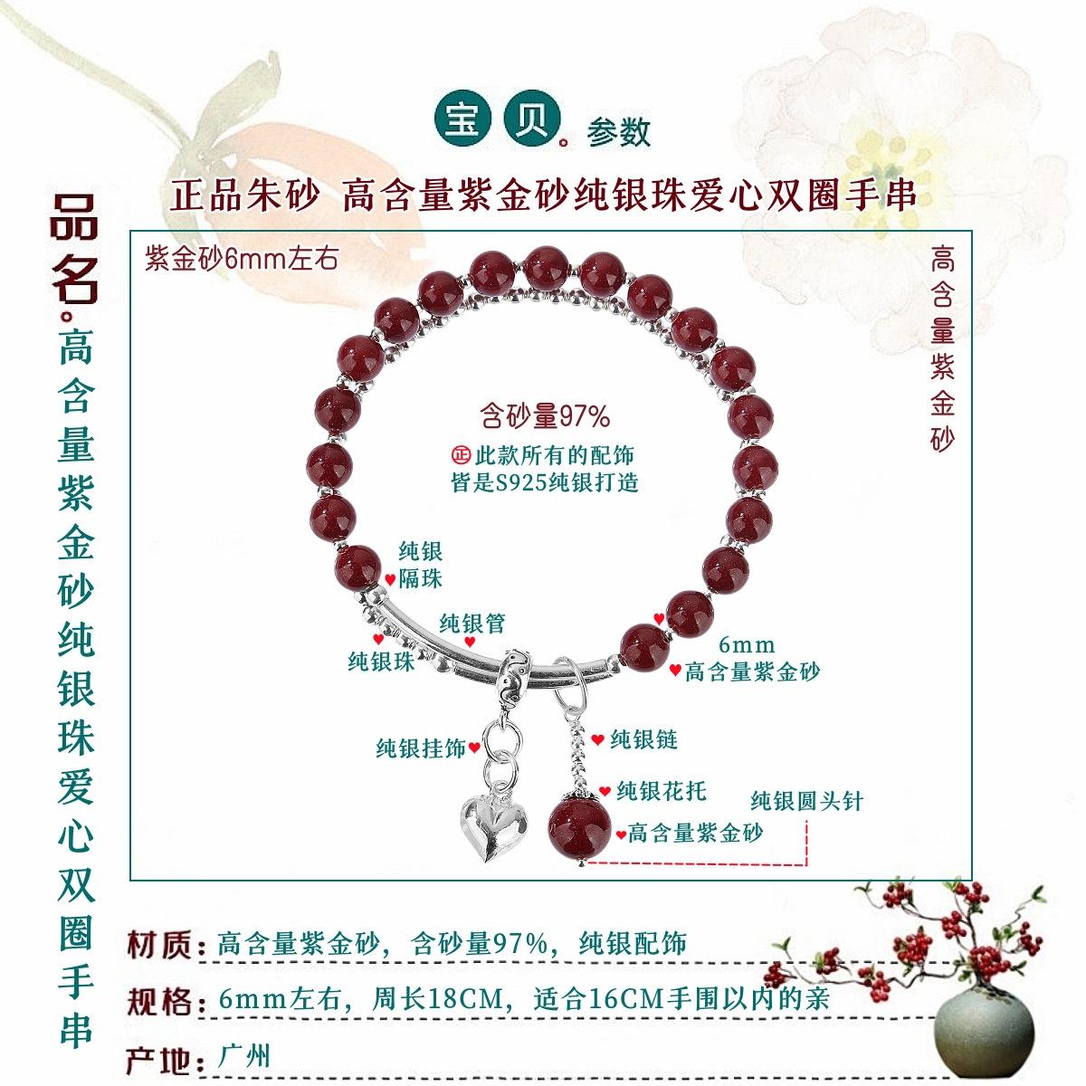 Pulsera de cinabrio con alto contenido de oro púrpura, pulsera de plata s925 con doble círculo de amor, pulsera de cinabrio con alto contenido de oro púrpura, pulsera de cinabrio DIY