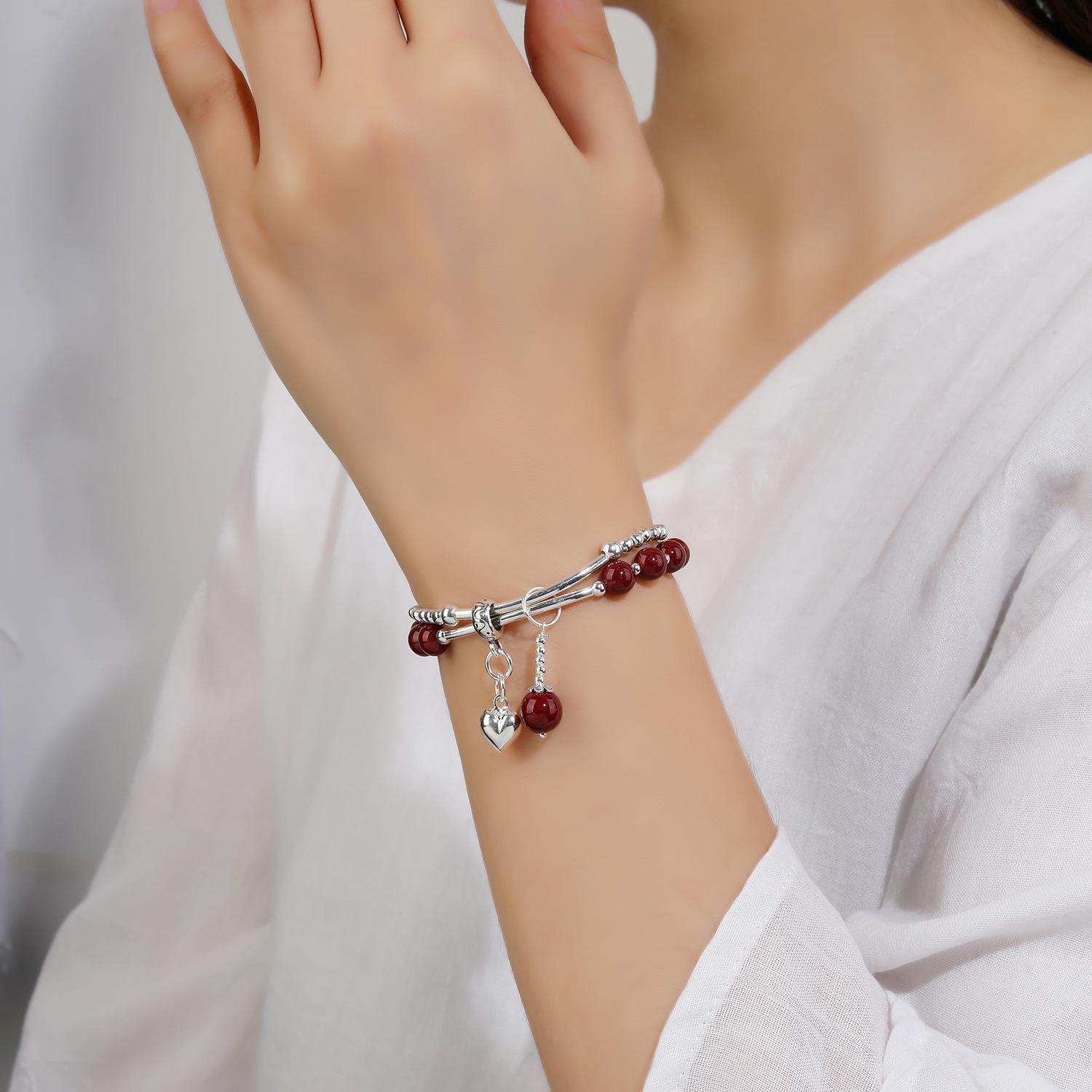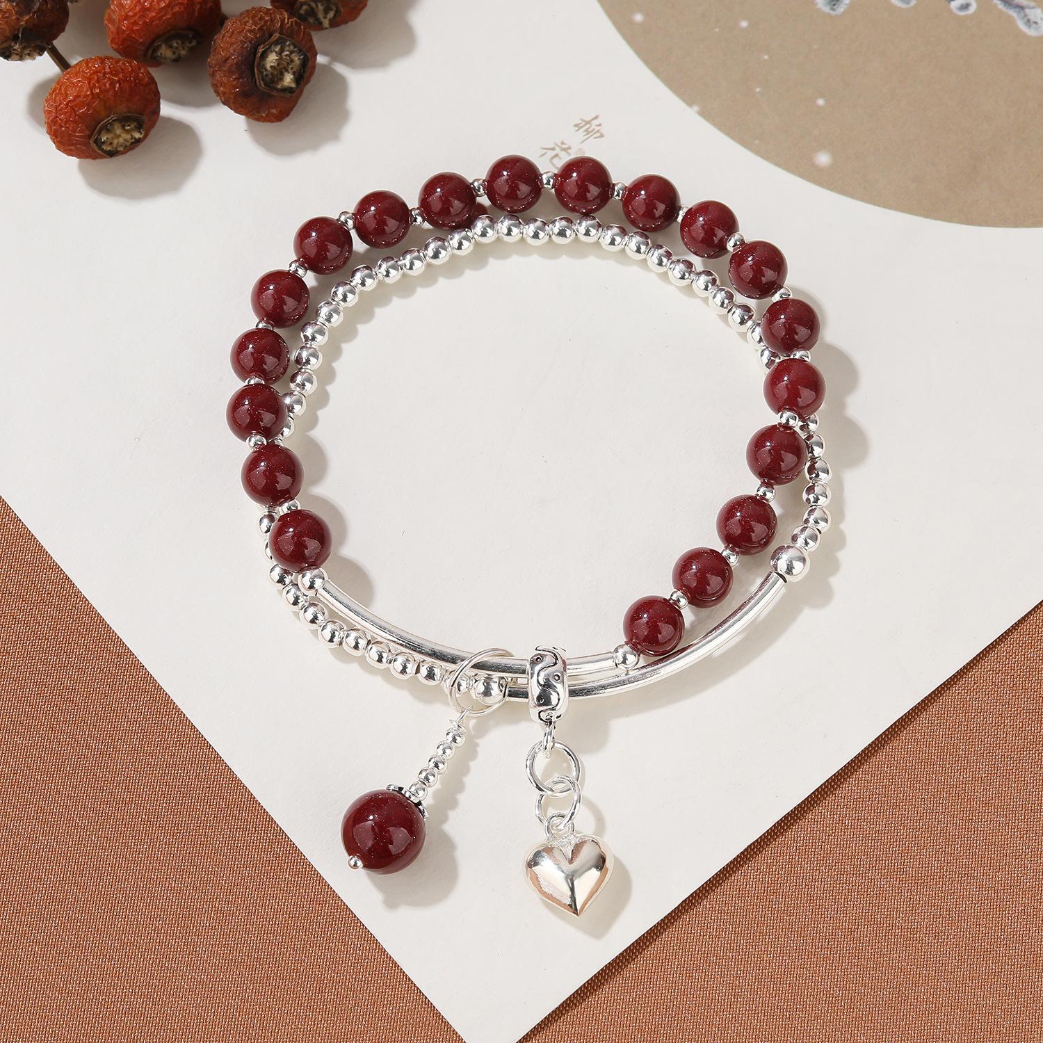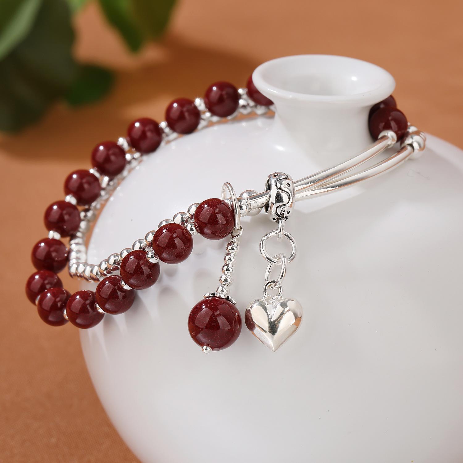 Pulsera de cinabrio con alto contenido de oro púrpura, pulsera de plata s925 con doble círculo de amor, pulsera de cinabrio con alto contenido de oro púrpura, pulsera de cinabrio DIY