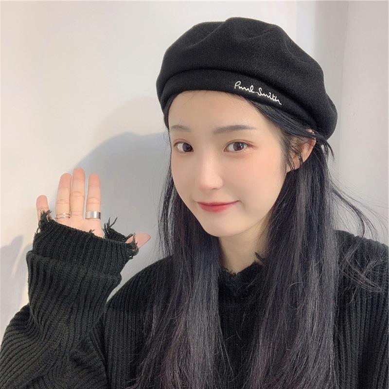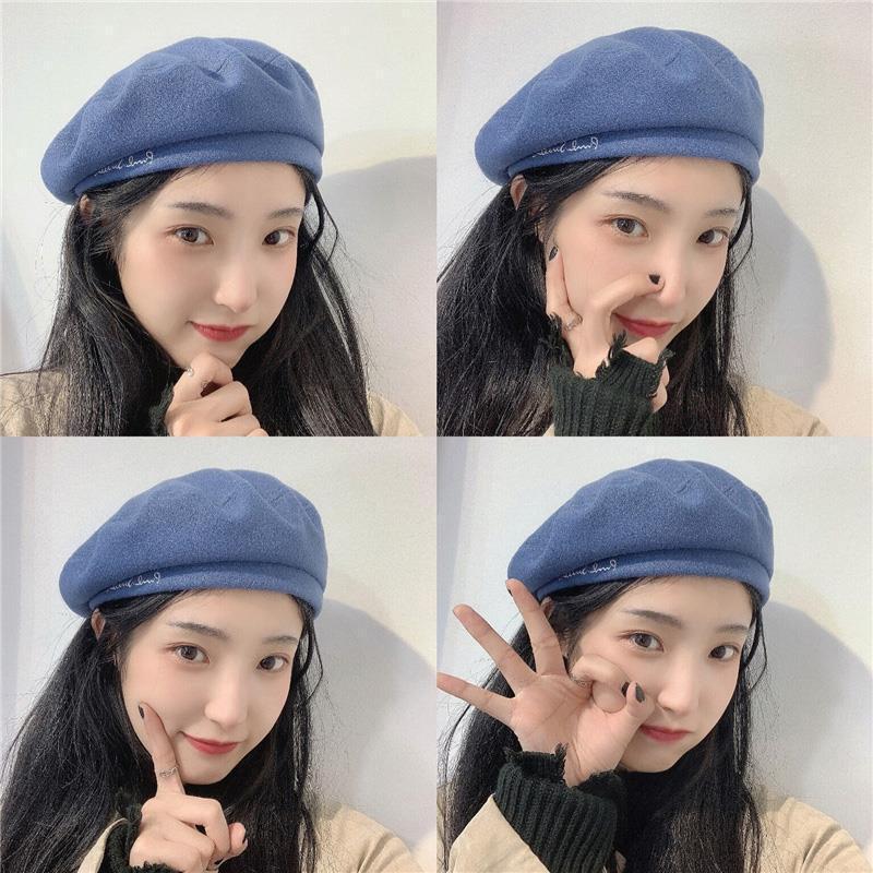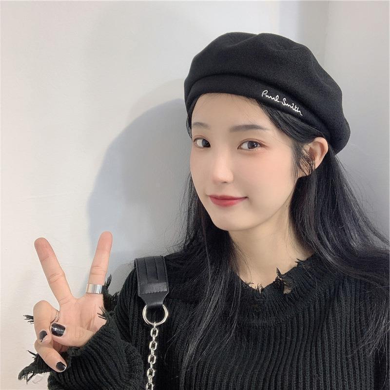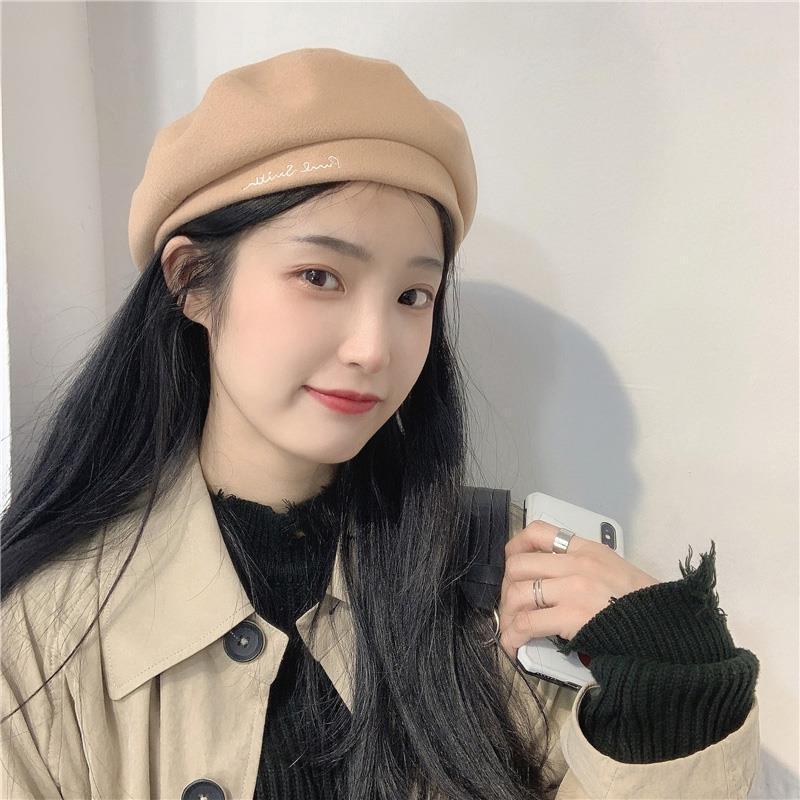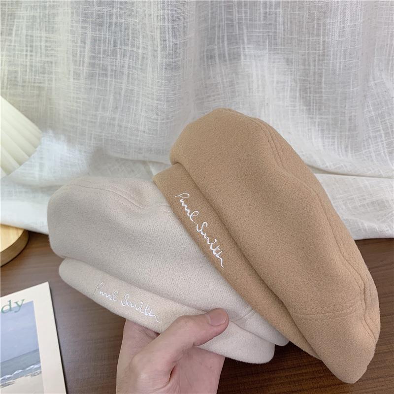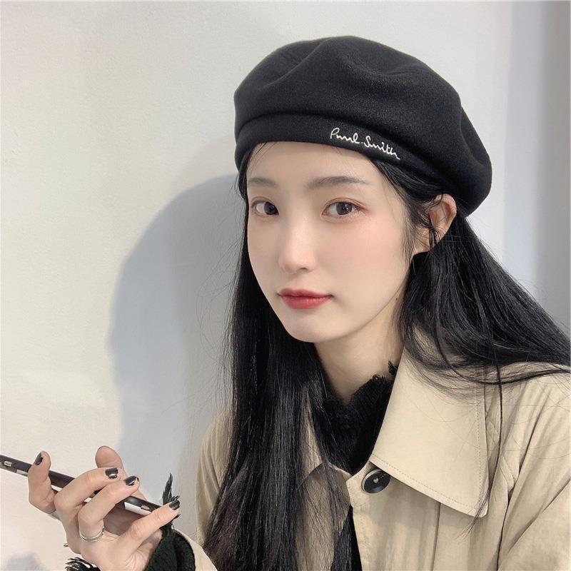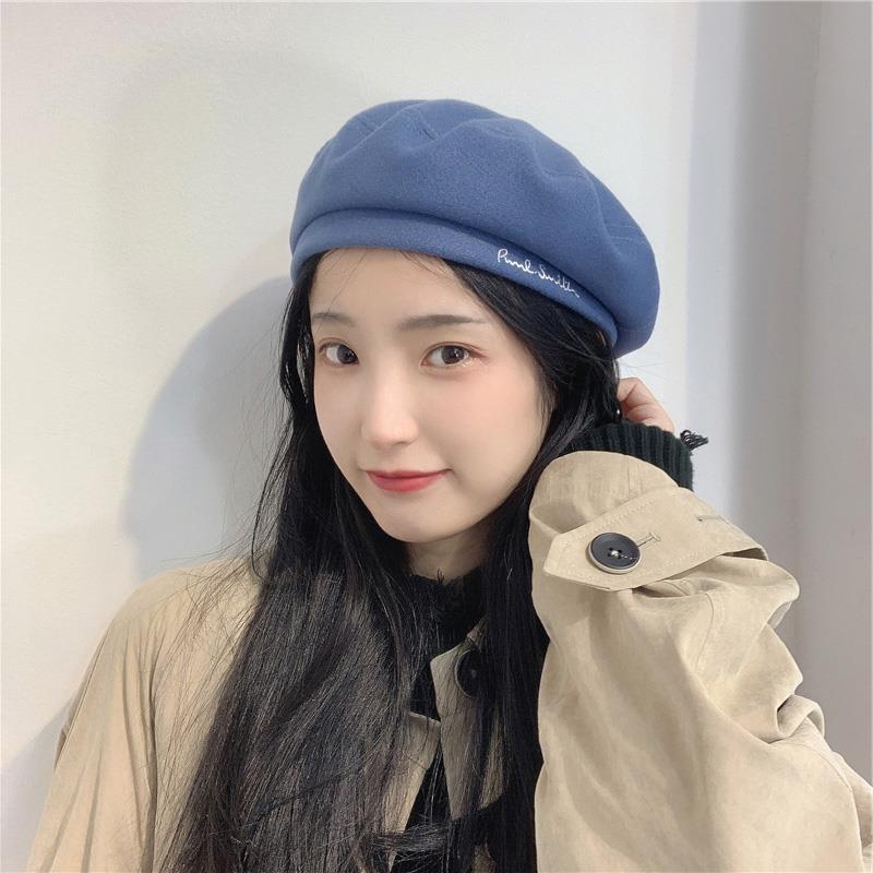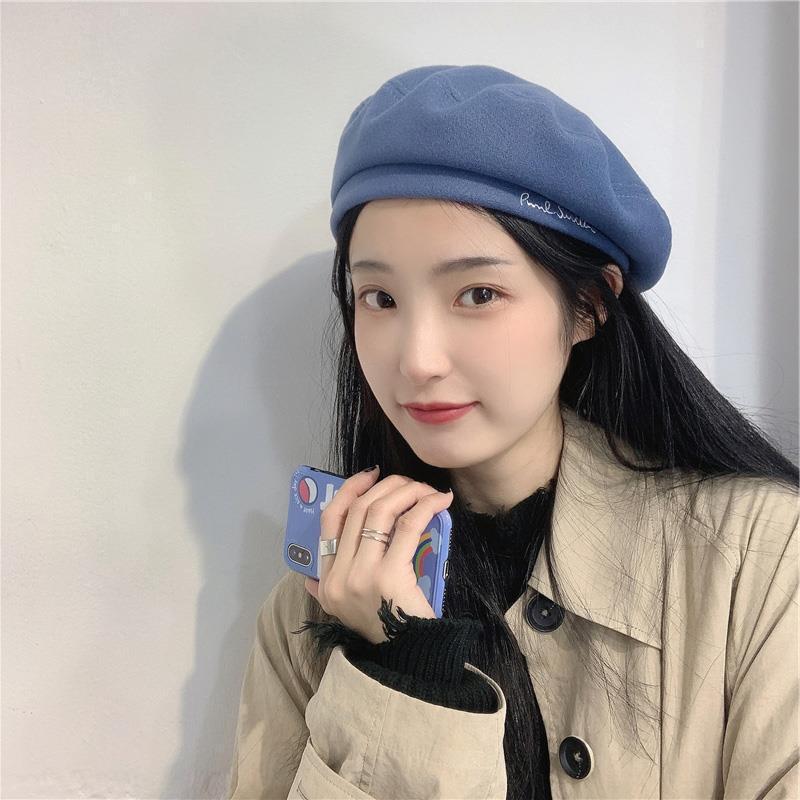 Woolen Black Beret-Embroidered Letters, Woolen Milk Tea Beret-Embroidered Letters, Woolen Blue Beret-Embroider...