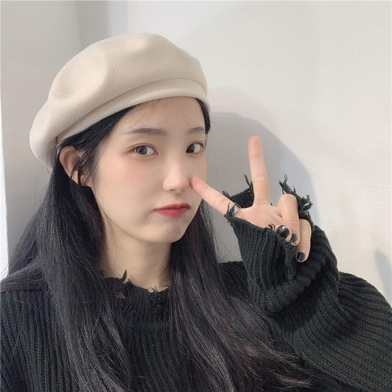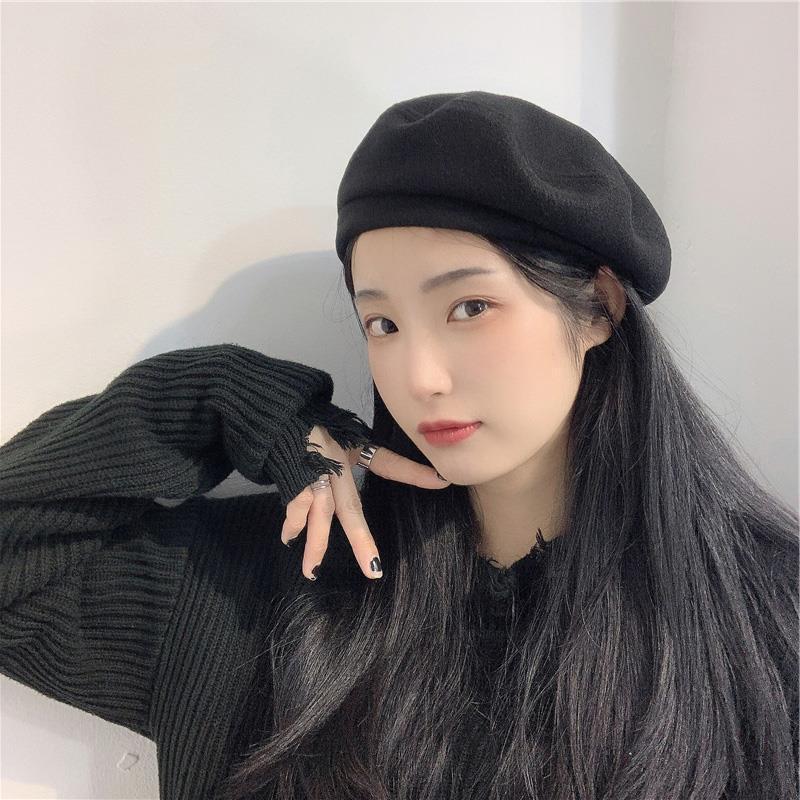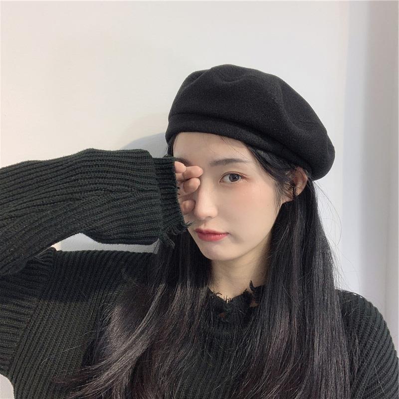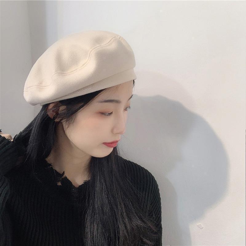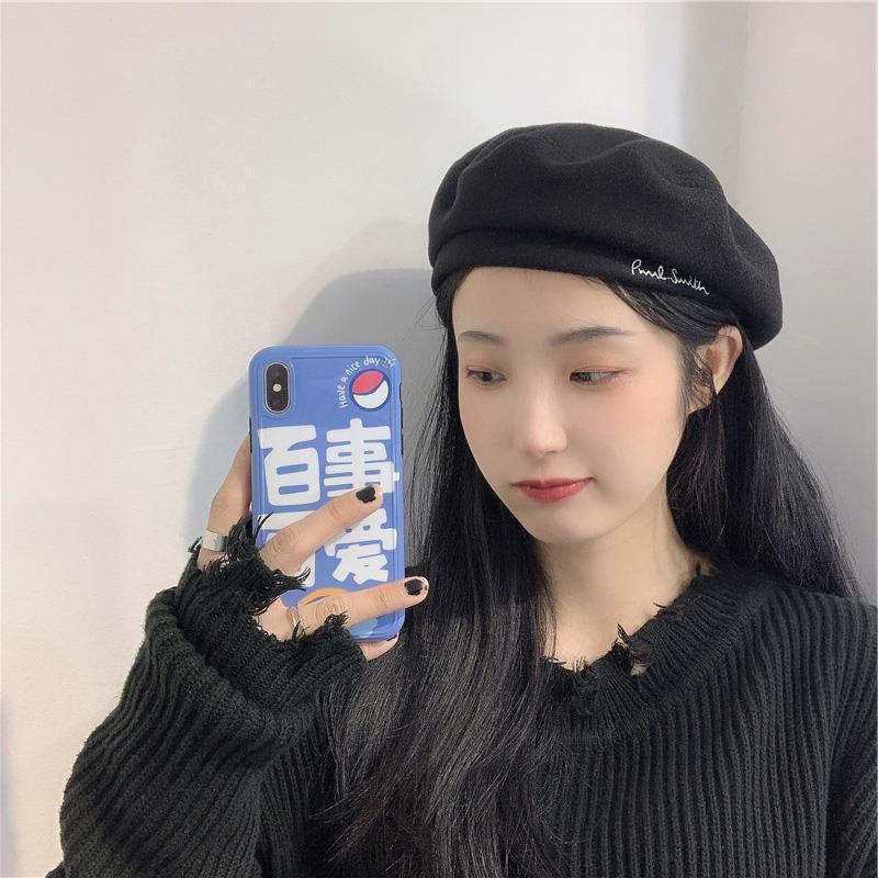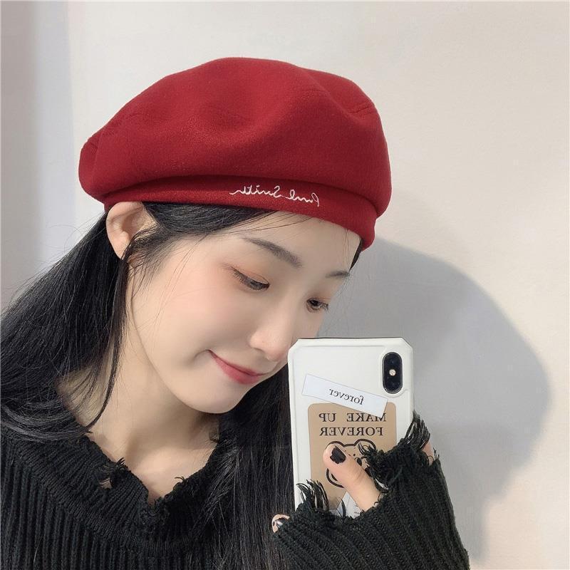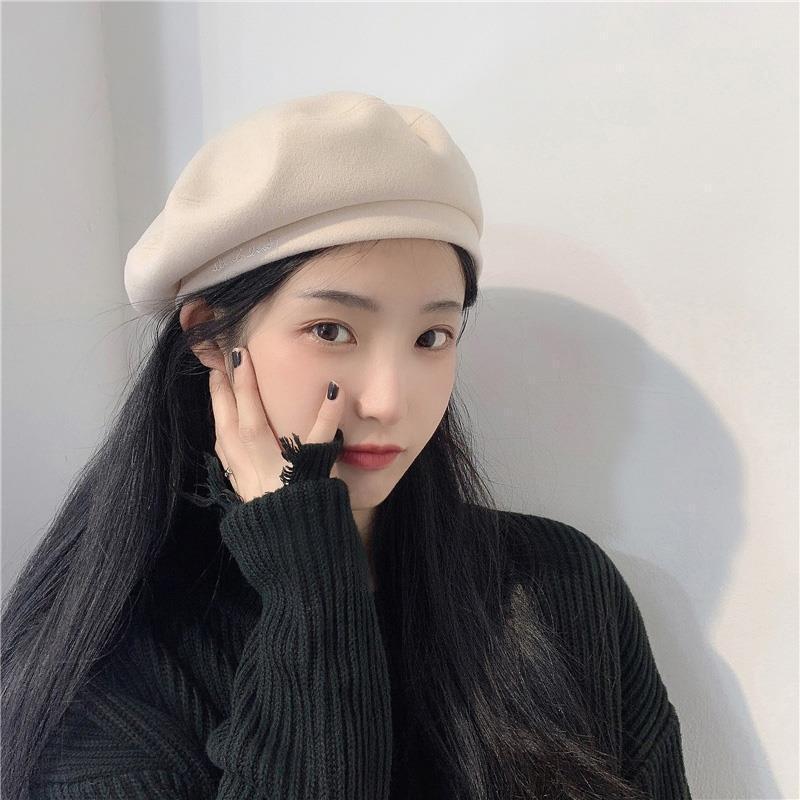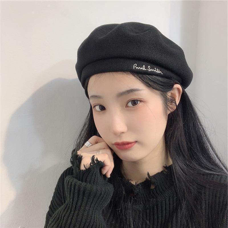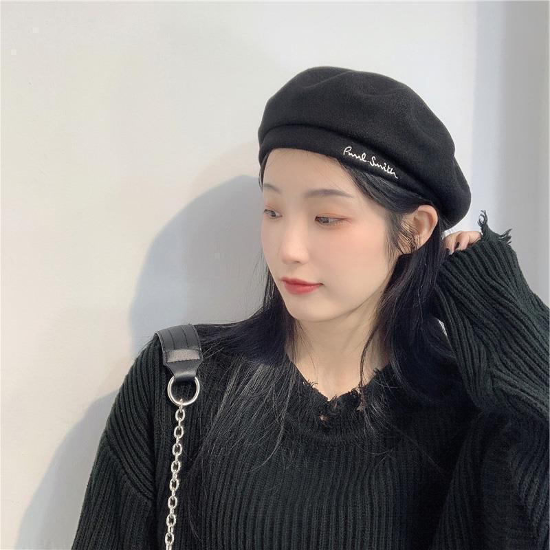 Woolen Black Beret-Embroidered Letters, Woolen Milk Tea Beret-Embroidered Letters, Woolen Blue Beret-Embroider...