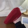 Woolen burgundy beret-embroidered letters