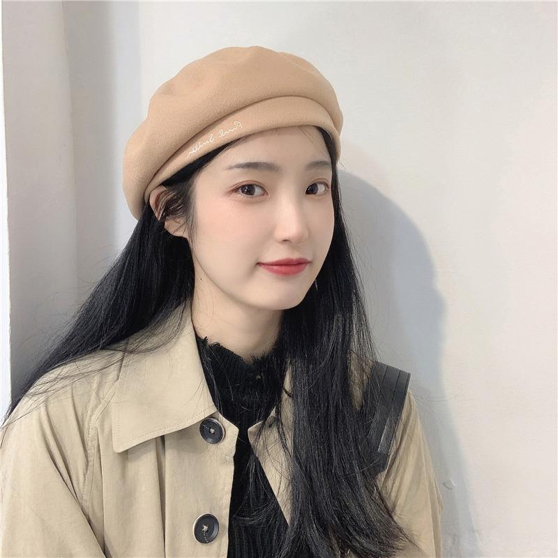 Woolen Milk Tea Beret-Embroidered Letters