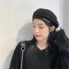 Boina de lana negra para mujer, gorro de pintor retro británico japonés bordado para primavera y otoño, gorro octogonal de verano.